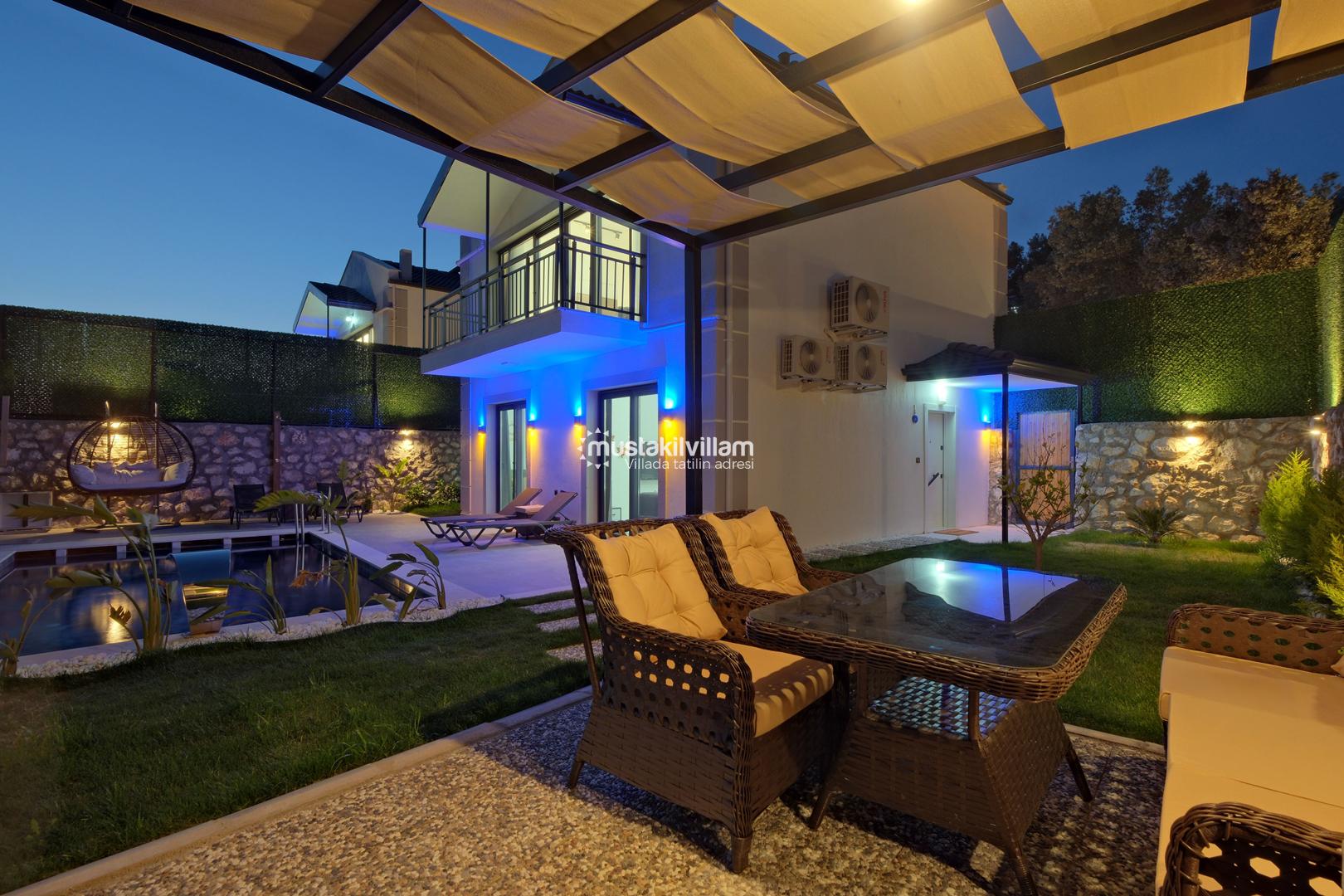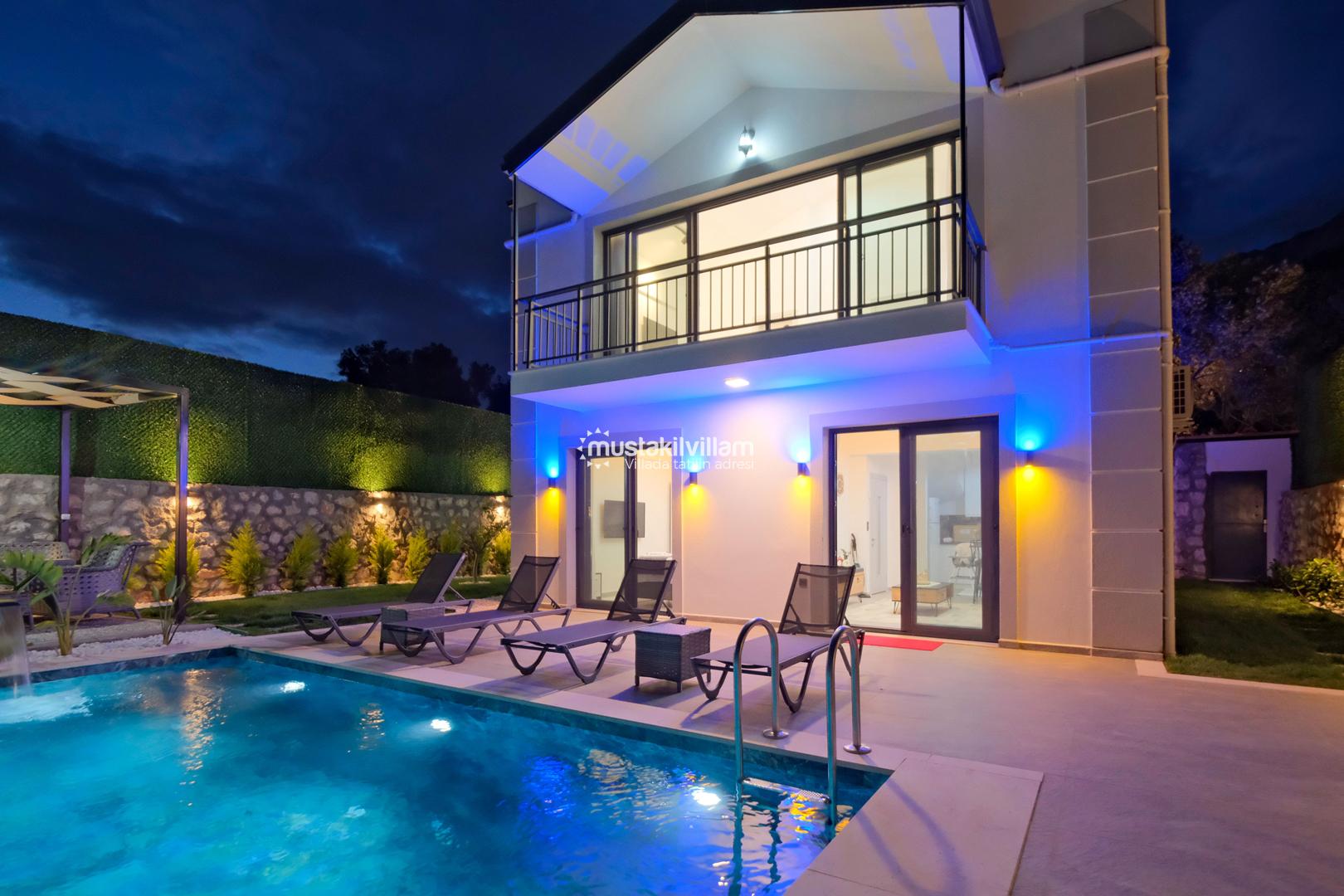 Panoramik manzarası, jakuzili yatak odası, modern yaşam alanları ve korunaklı özel havuzu ile Montana Kirme Villaları 2, Kirme – Ölüdeniz’de unutulmaz bir tatil deneyimi sunuyor.