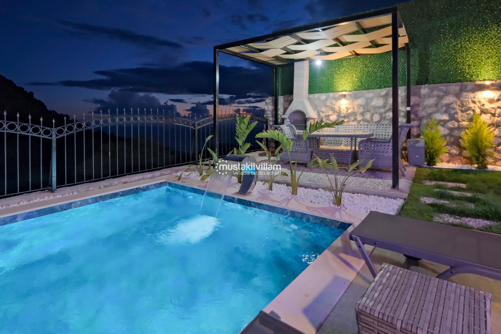 Korunaklı özel havuzlu villa konsepti