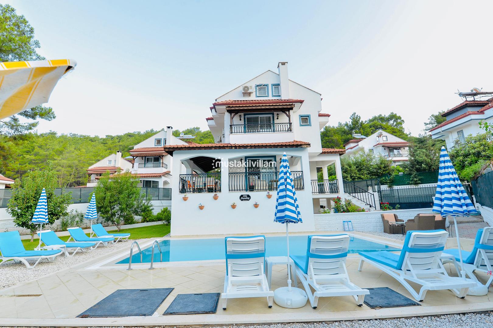 Fethiye Hisarönü mevkiinde bulunan 3 yatak odalı 6 kişi kapasiteli müstakil havuzlu kiralık tatil villasıdır. Bahçesi ve özel yüzme havuzu sayesinde eğlenceli ve keyifli bir tatil geçirebilirsiniz.