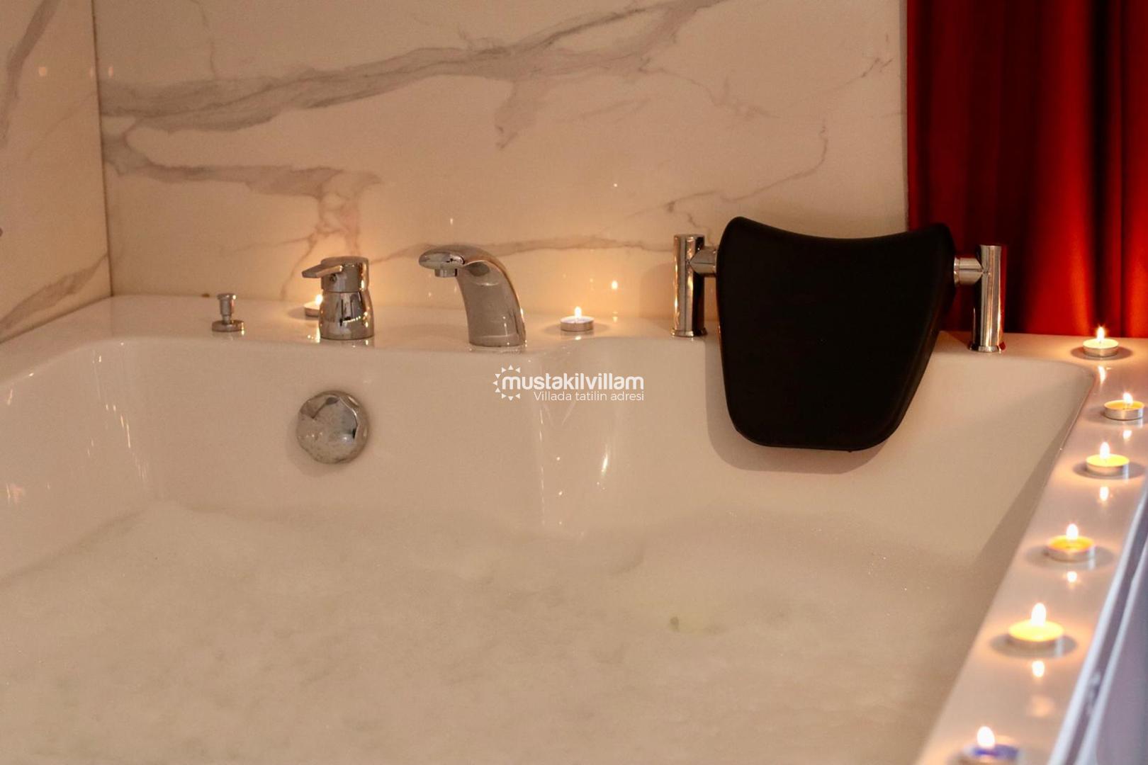 Toplamda 4 yatak odası ve 4 banyoya sahip olan villa, 8 kişiye kadar konaklama kapasitesi sunmaktadır. Her odası modern ve konforlu şekilde dekore edilmiş olan Villa İstefani, ferah yaşam alanlarıyla misafirlerine ev rahatlığında bir tatil imkânı sağlamaktadır. Özellikle iki yatak odasında bulunan jakuziler, villanın en dikkat çekici ve ayrıcalıklı özelliklerinden biridir. Günün yorgunluğunu atmak, dinlenmek ve tatilin tadını çıkarmak isteyen misafirler için bu detay, konforu bir üst seviyeye taşımaktadır.