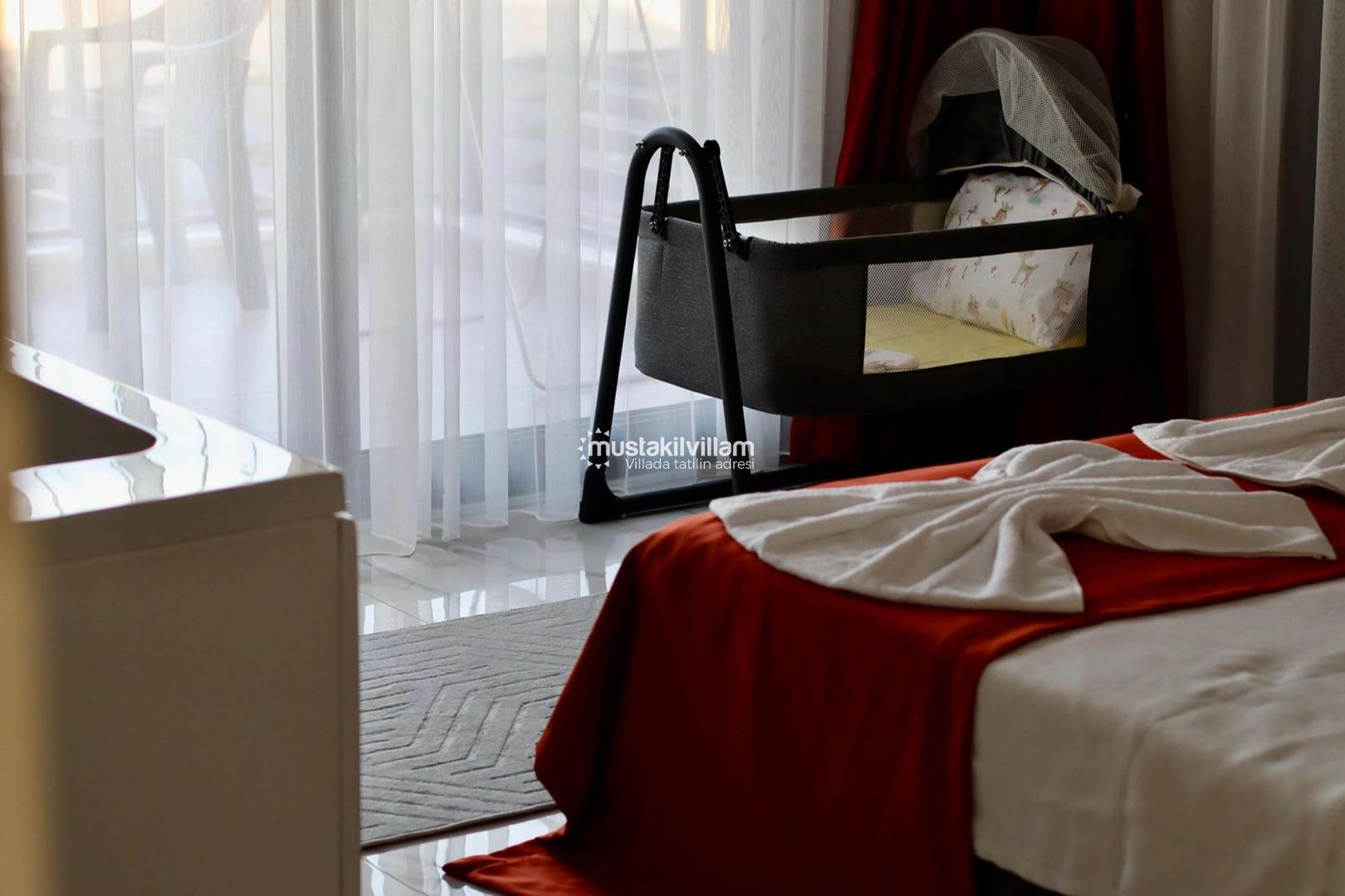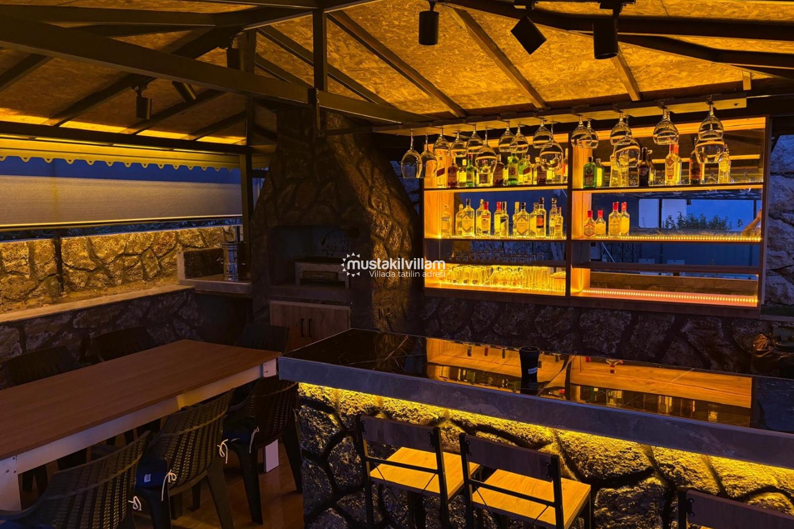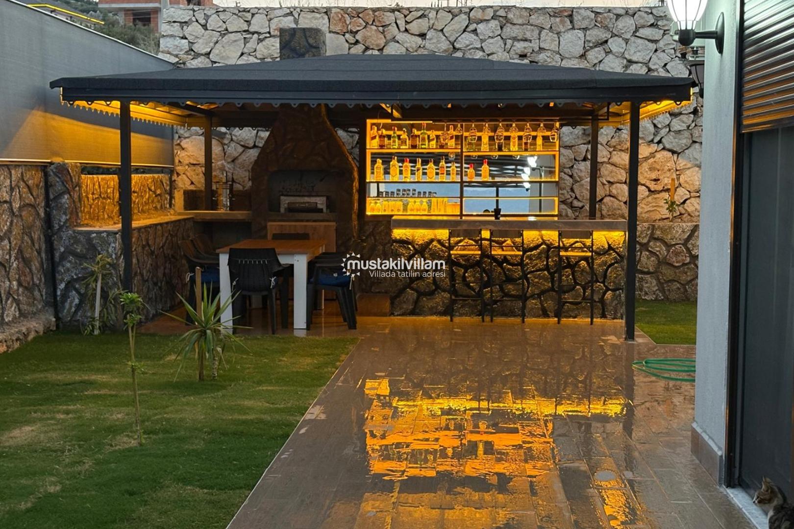 Villanın geniş bahçe alanı, doğayla iç içe vakit geçirmek isteyen misafirler için özel olarak tasarlanmıştır. Bahçede yer alan şezlonglar sayesinde güneşin tadını çıkarabilir, gün boyunca dinlenebilirsiniz. Aynı zamanda barbekü alanı ve minibar bölümü, açık havada keyifli yemek organizasyonları yapmanıza olanak tanır. Akşam saatlerinde sevdiklerinizle birlikte barbekü keyfi yaparak tatilinizi daha da unutulmaz hale getirebilirsiniz. Bahçede bulunan salıncak ise huzurlu anlar yaşamak isteyen misafirler için keyifli bir dinlenme alanı sunmaktadır.