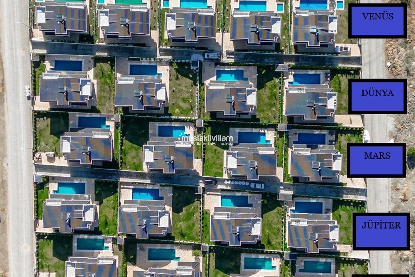 Not: Aynı bölgede yan yana konumlanmış Villa Galaksi Venüs 1, 2, 3, 4 ve 5’te ortak görseller kullanılmıştır. Villalarımızın tüm özellikleri ve eşyaları aynıdır, yalnızca mobilya renkleri farklılık gösterebilir. Yan yana villalarda tatil yapmak isteyen büyük aile veya arkadaş grupları, müsaitlik durumuna göre villaları birlikte kiralayabilir.