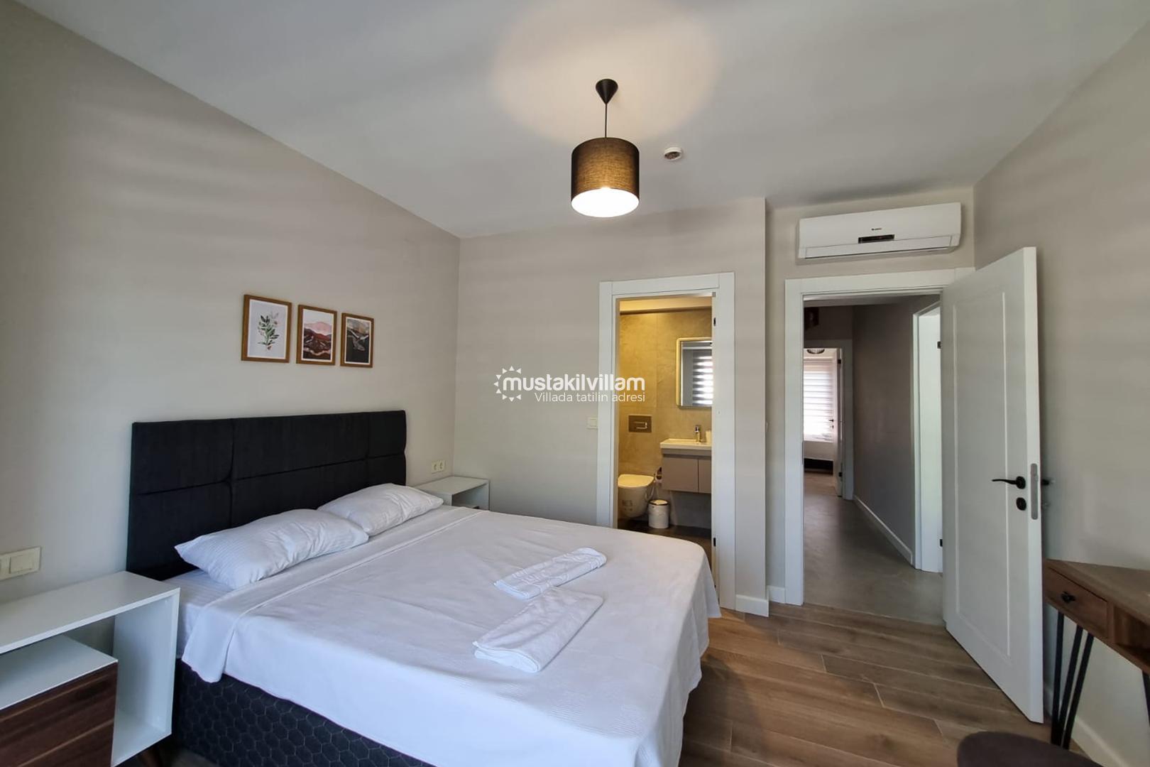 Tüm yatak odalarında ebeveyn banyosu ve klima yer almaktadır. Geniş ve ferah bir oturma alanına sahip olan salon bölümünde klima ve TV bulunmaktadır.