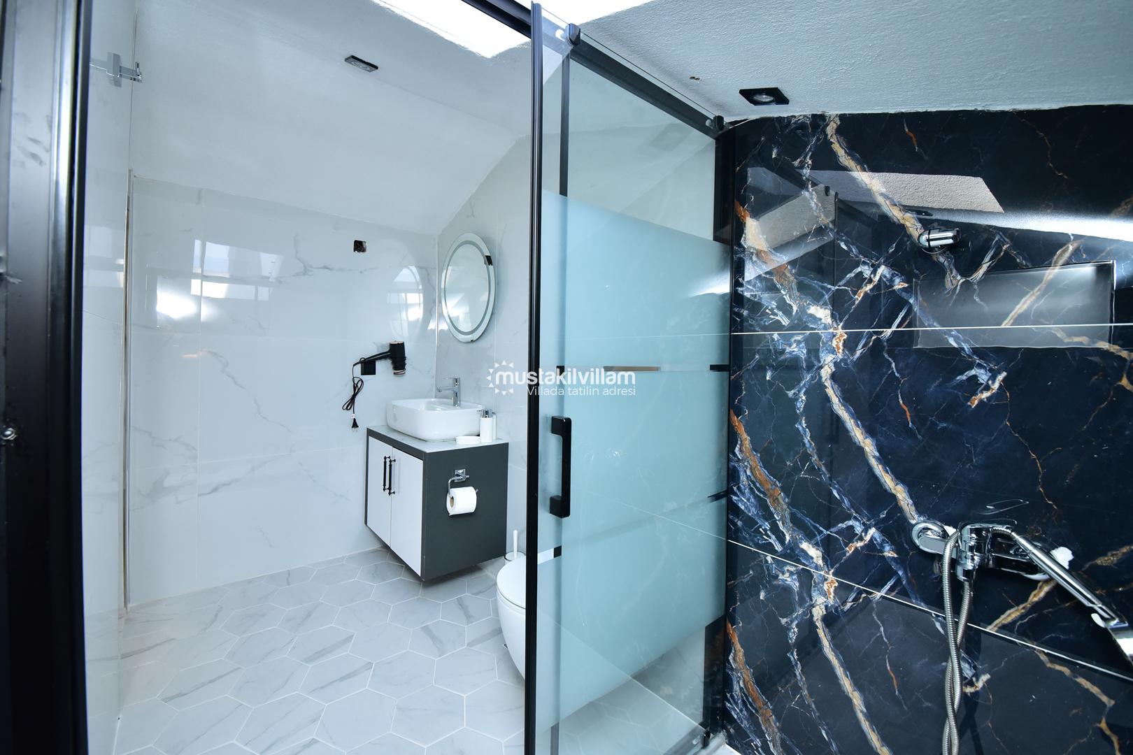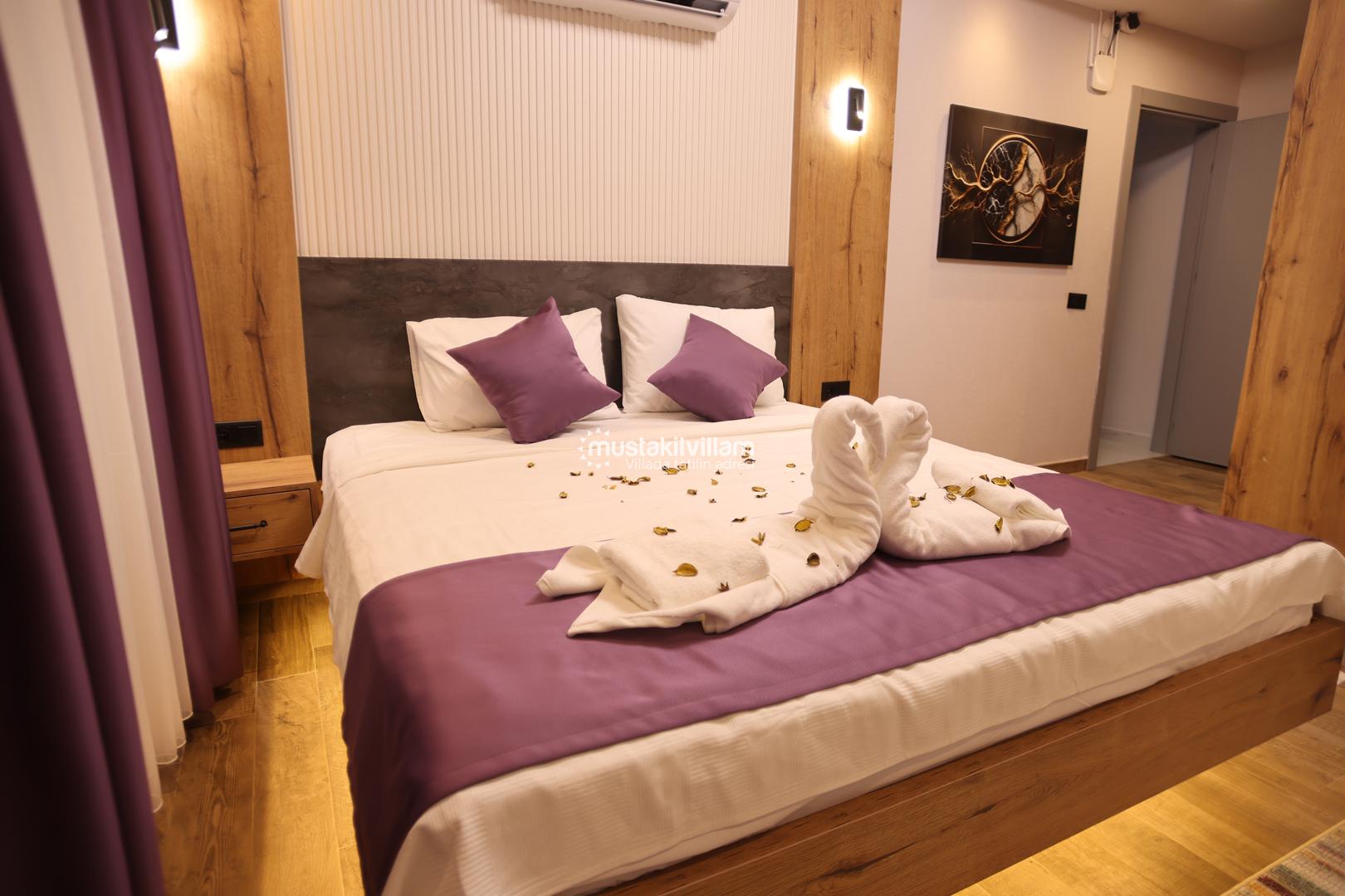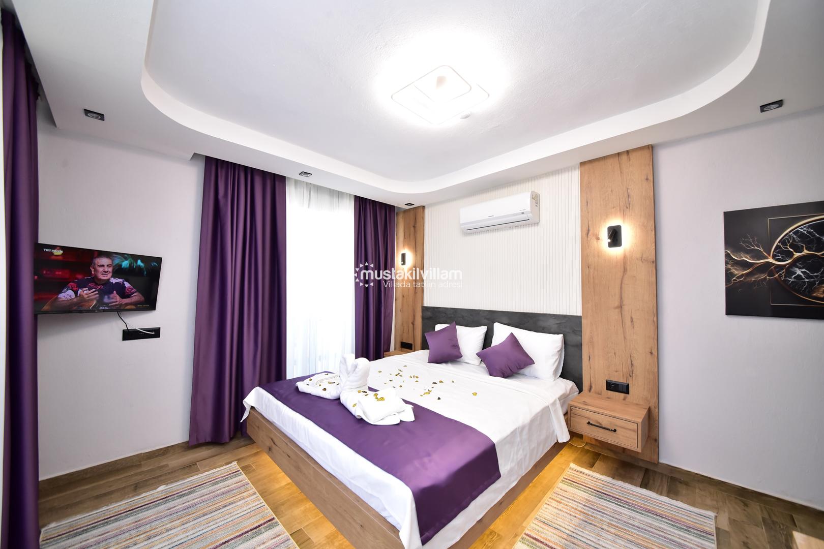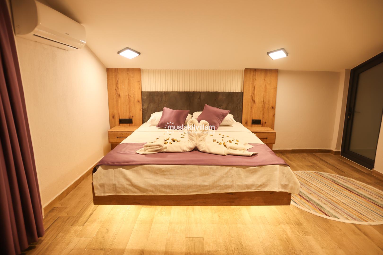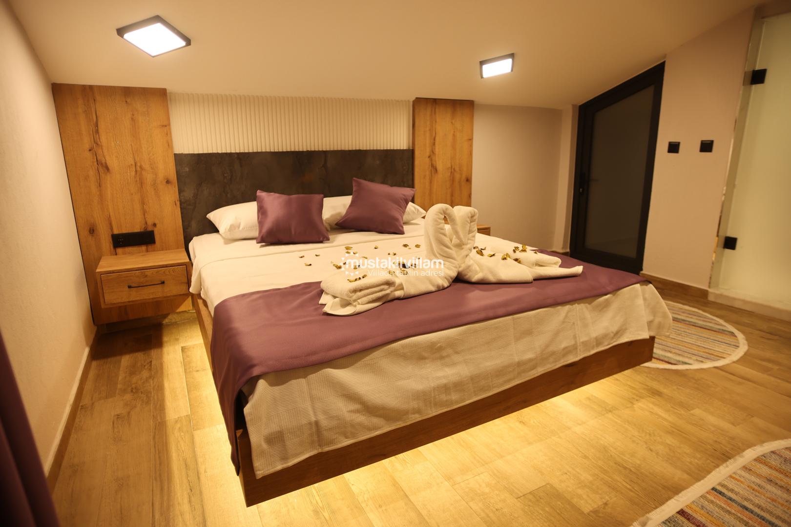 Bu yerleşim, misafirlerin mahremiyetini korur ve her bireye konforlu bir alan sunar. Villanın odaları, modern tasarımı ve estetik detaylarıyla tatil boyunca rahat ve keyifli bir ortam sağlar.