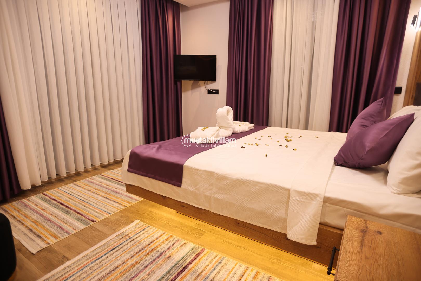 Asgora Villa, toplam 3 yatak odası ile geniş aileler ve arkadaş grupları için uygundur. Tüm odalarda klima, elbise dolabı, komodin ve özel banyo/WC bulunur. Oda düzenleri ve detayları şöyle: