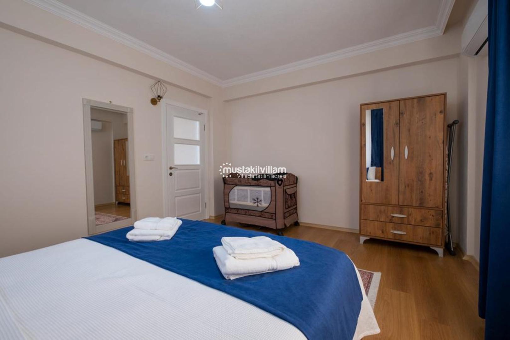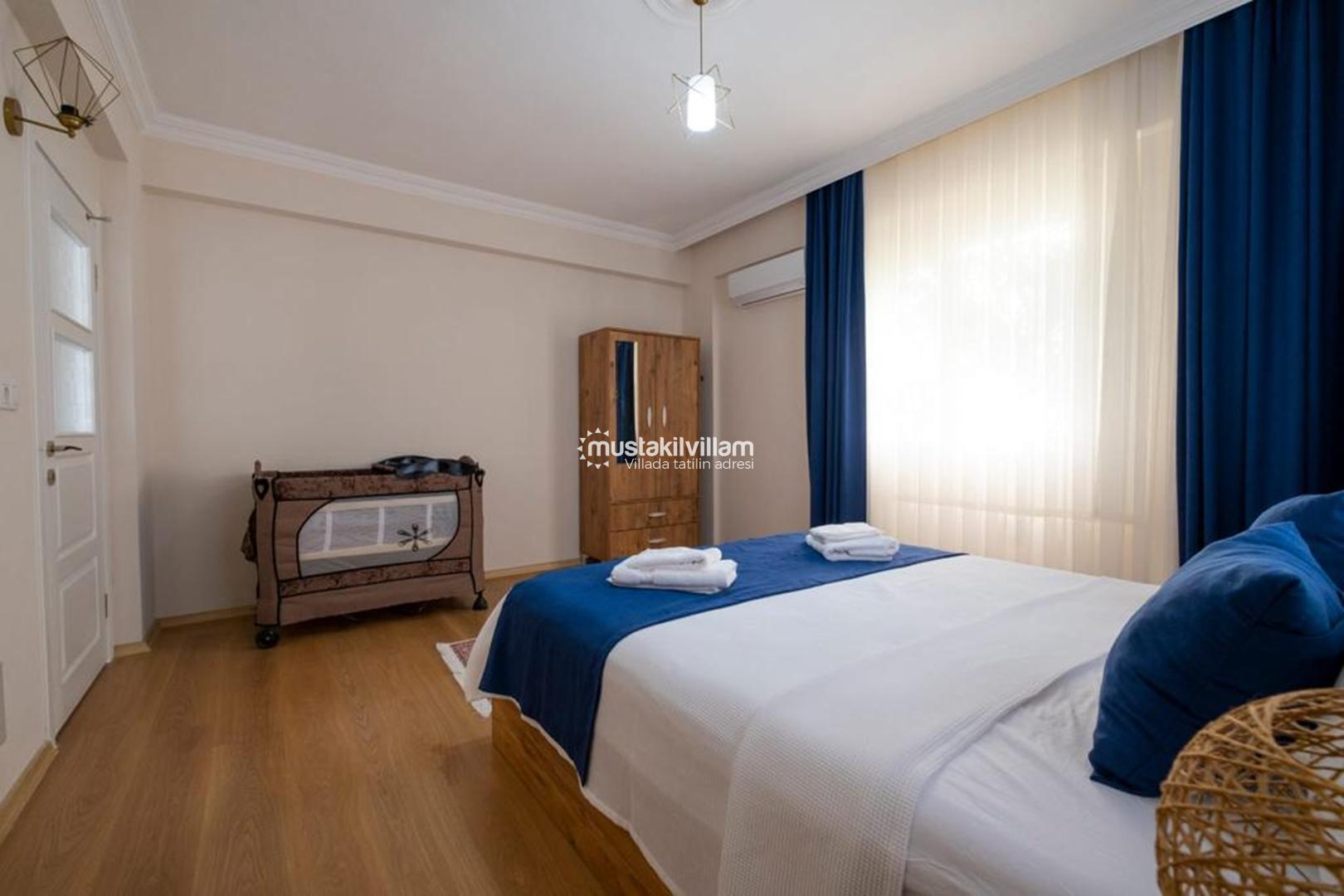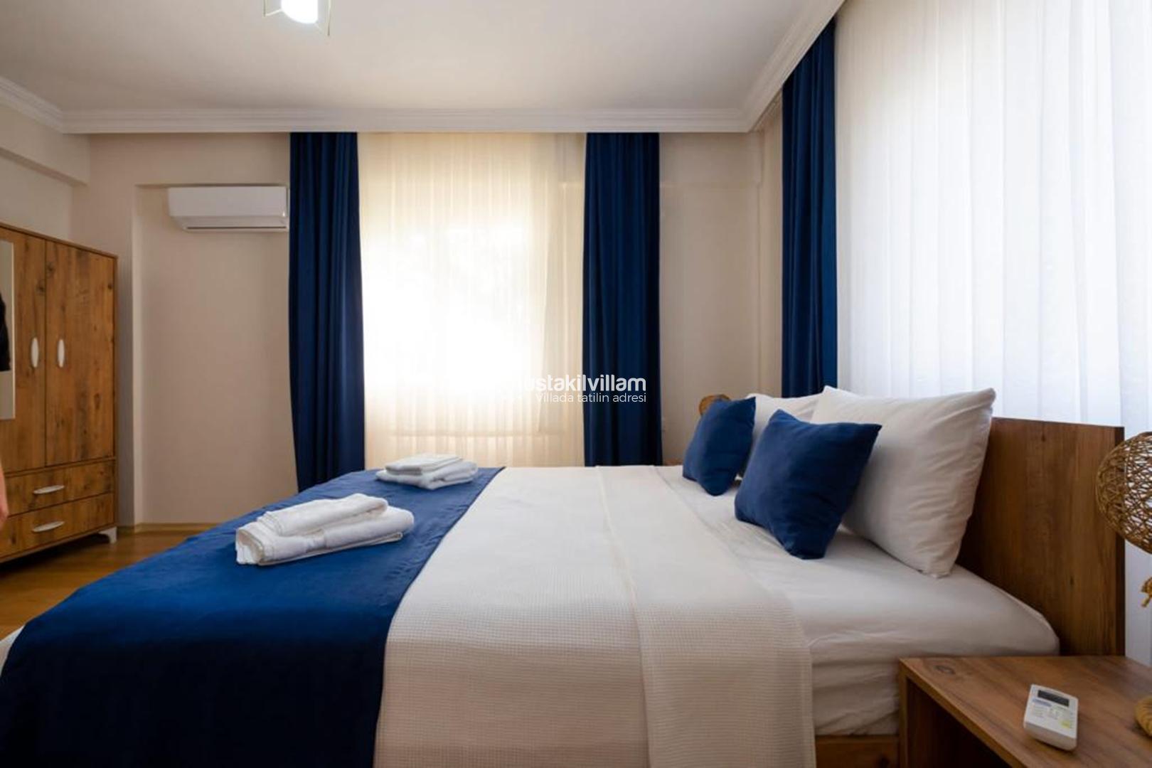 İkinci yatak odasında ise iki adet tek kişilik yatak bulunmaktadır. Bu oda çocuklar veya arkadaş grupları için oldukça kullanışlıdır. Oda içerisinde yine klima, komodin ve elbise dolabı gibi donanımlar bulunmaktadır.