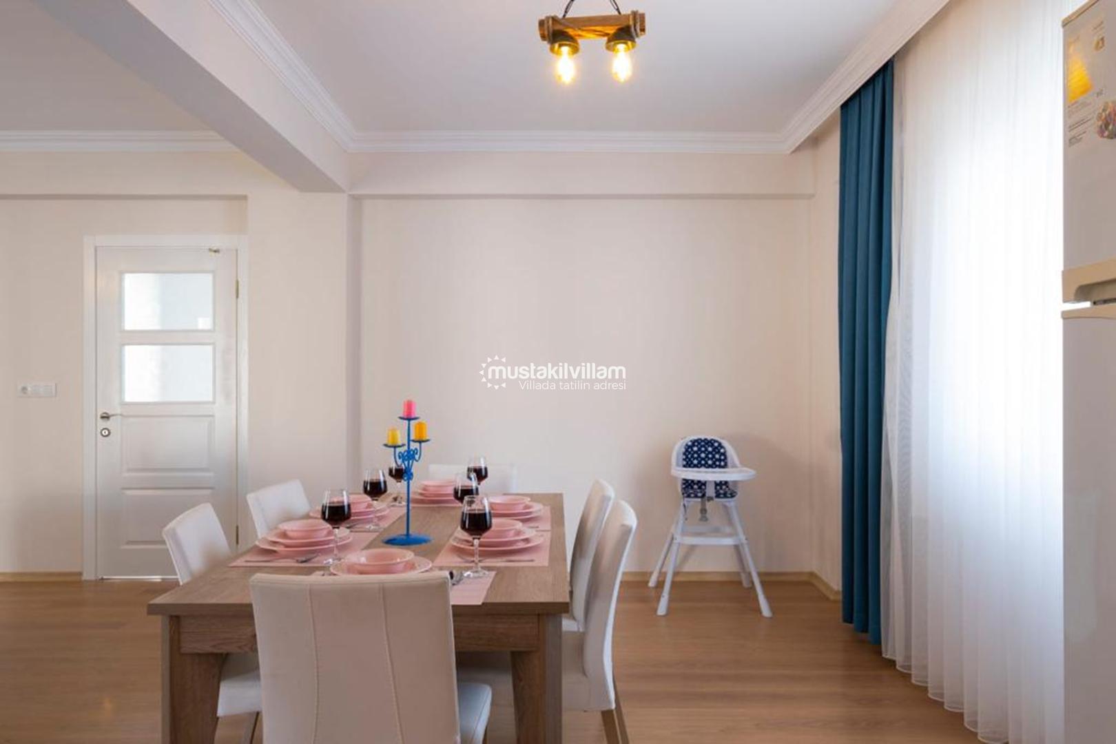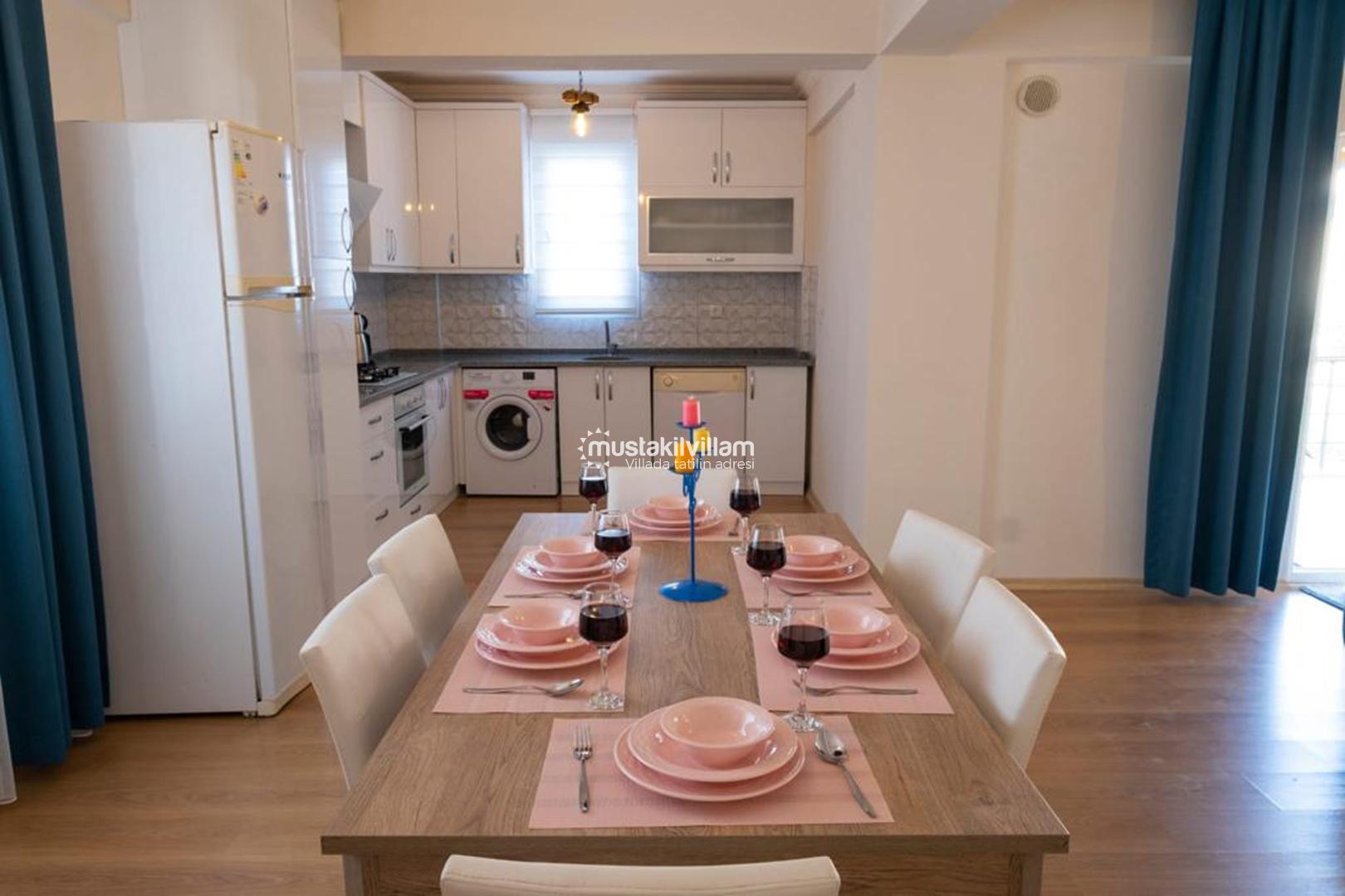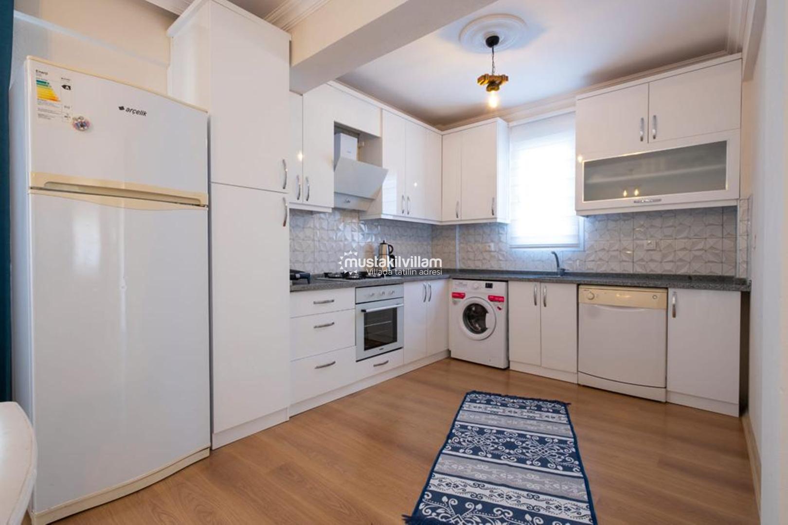 Mutfak bölümü ise tatil boyunca evinizdeki rahatlığı aratmayacak şekilde donatılmıştır. Buzdolabı, ocak, fırın, mutfak araç gereçleri ve yemek hazırlama ekipmanları ile misafirlerin ihtiyaç duyabileceği tüm detaylar düşünülmüştür. Böylece dilediğiniz zaman kendi yemeklerinizi hazırlayabilir ve bahçede keyifli bir akşam yemeği deneyimi yaşayabilirsiniz.