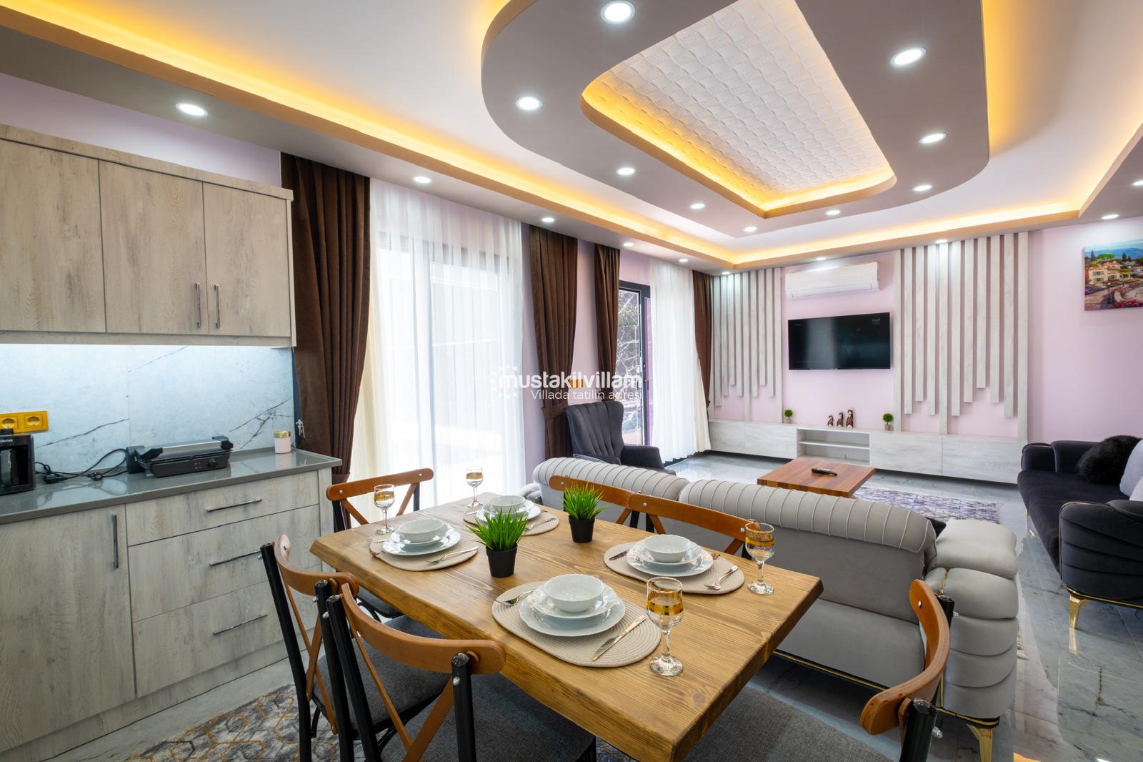 Otel odalarına kıyasla daha geniş yaşam alanları sunar.
