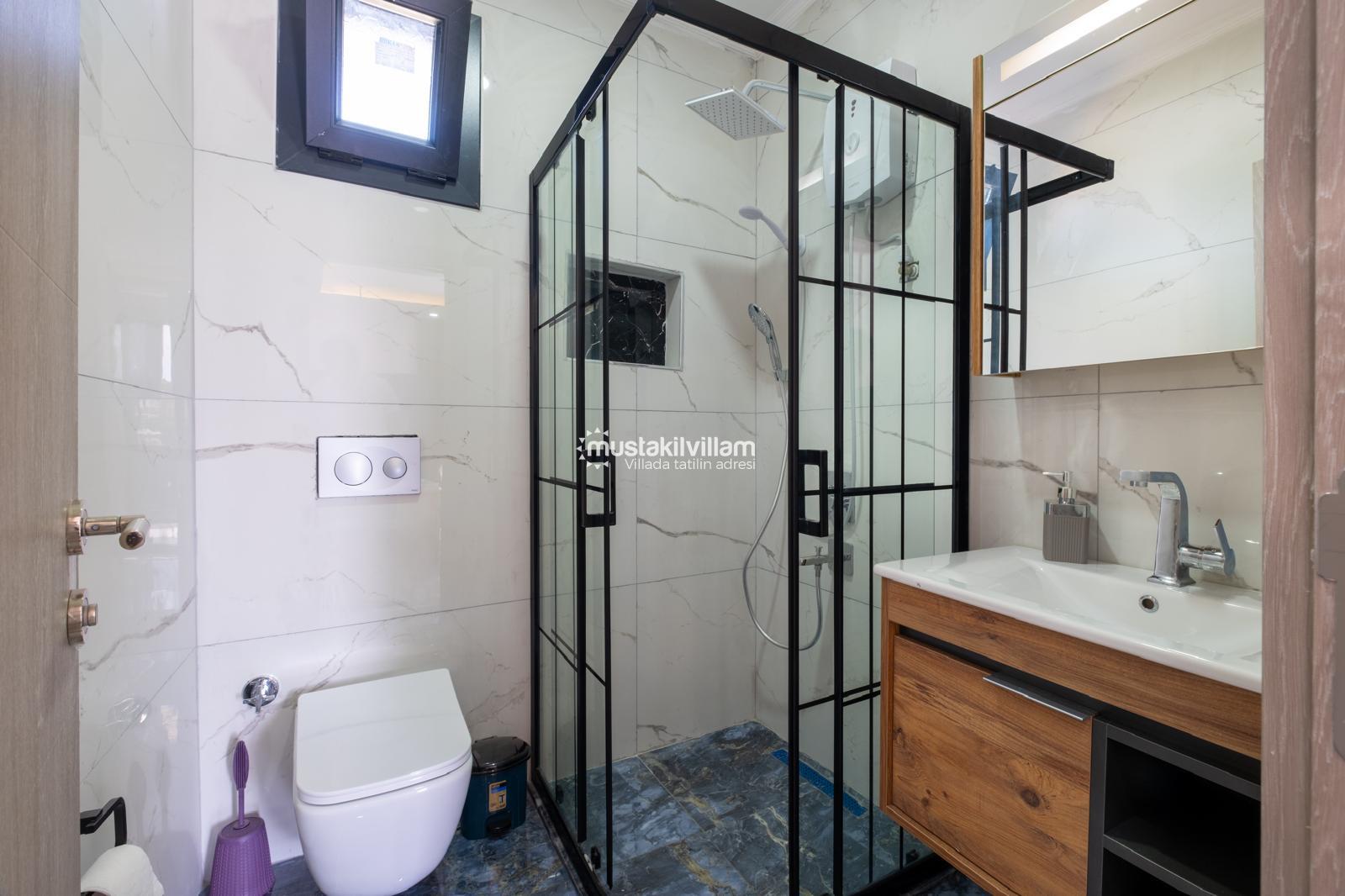 Villa içerisinde toplam 2 adet banyo & WC bulunmaktadır. Modern ve kullanışlı yapıları sayesinde konforlu bir kullanım sunar.
