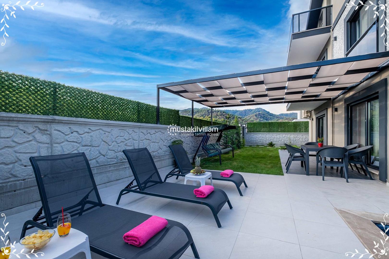 Villa geniş bir bahçe alanına sahiptir ve açık hava keyfi için ideal şekilde tasarlanmıştır.