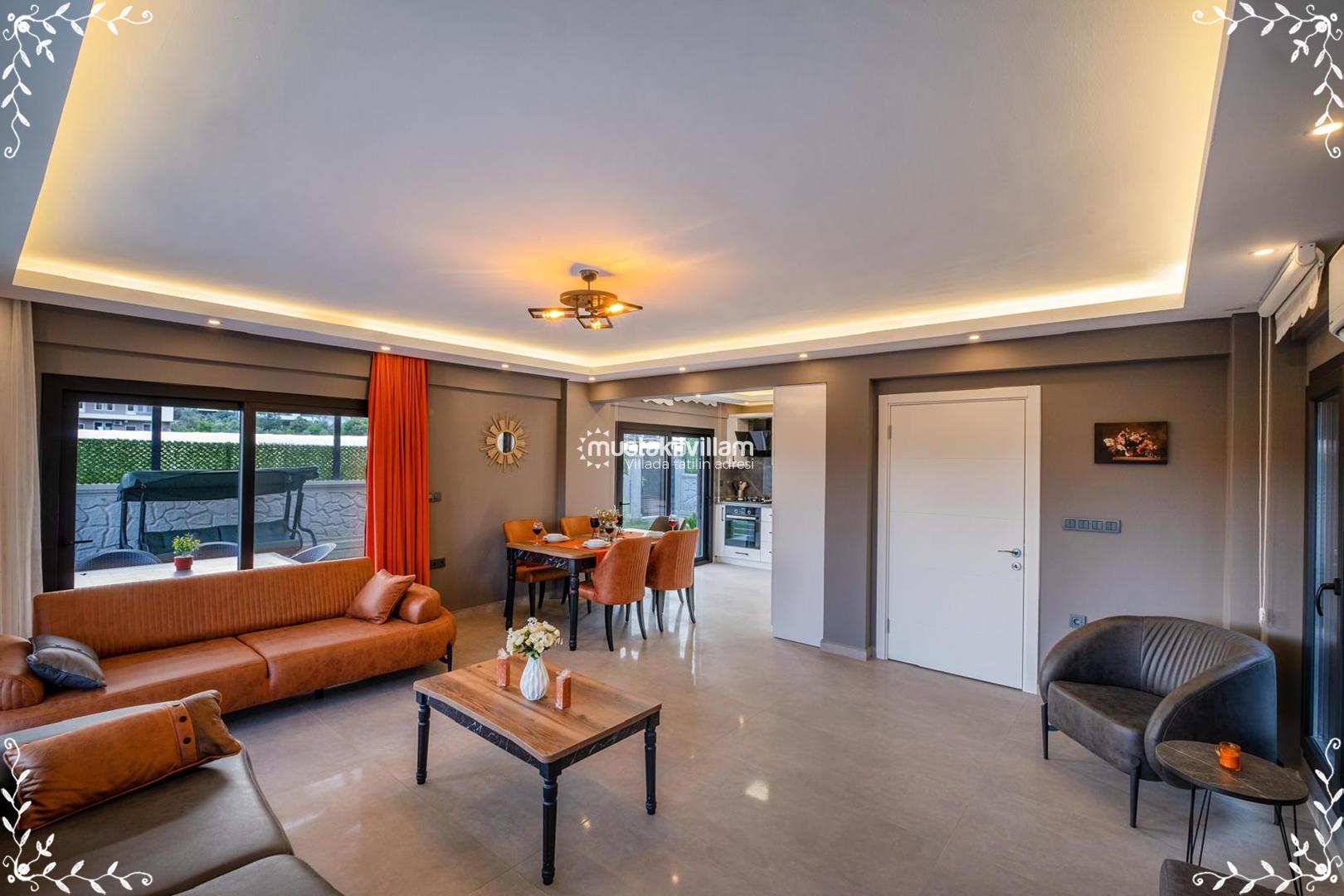 Villa içerisinde açık plan salon ve mutfak alanı yer almaktadır.