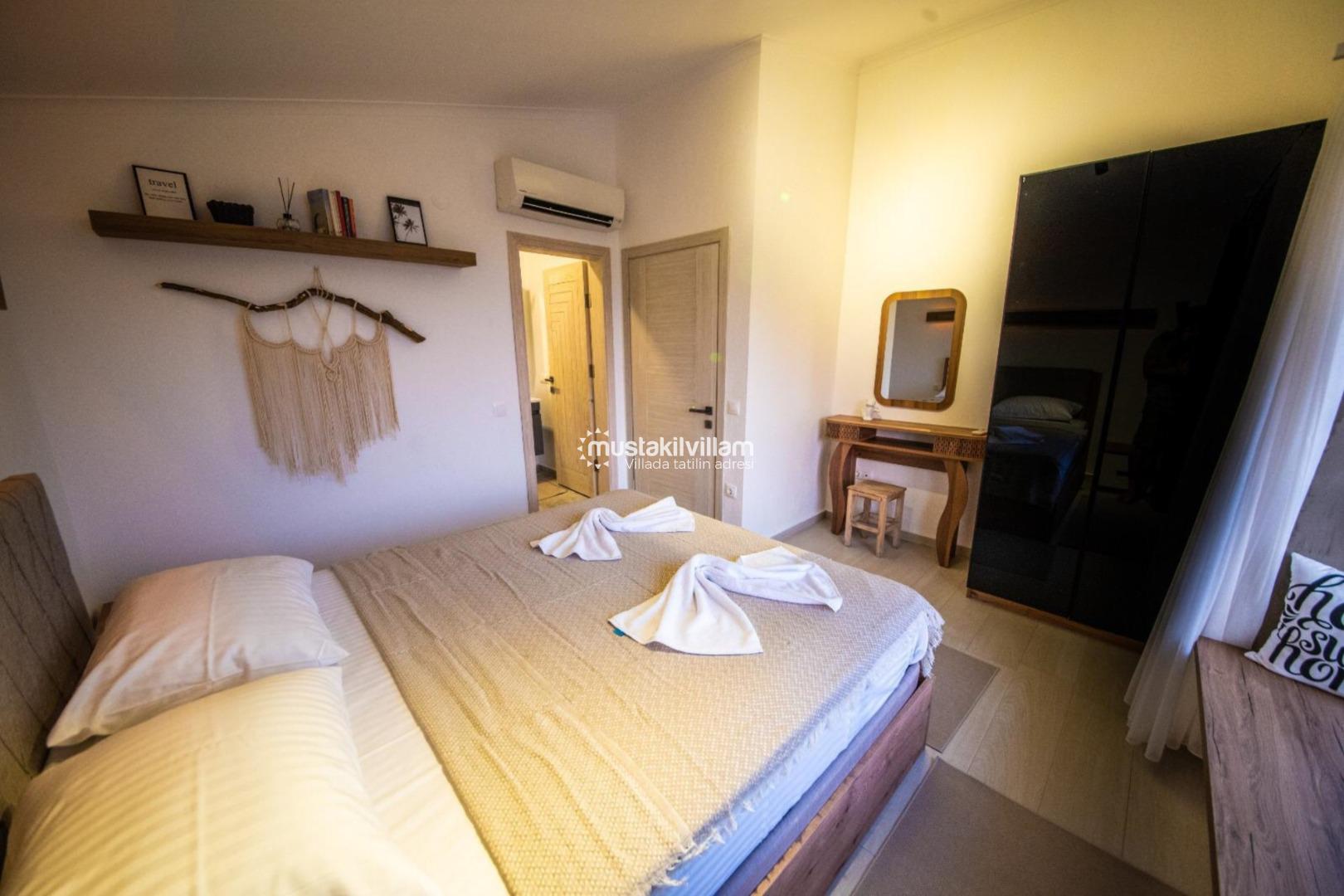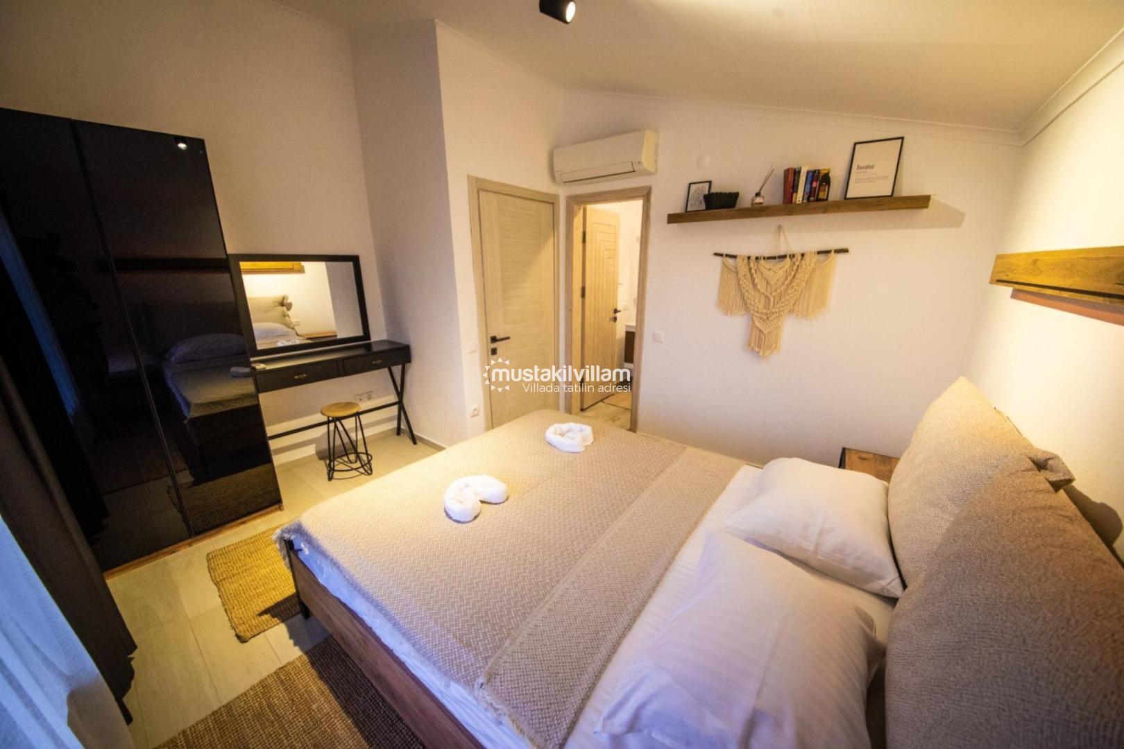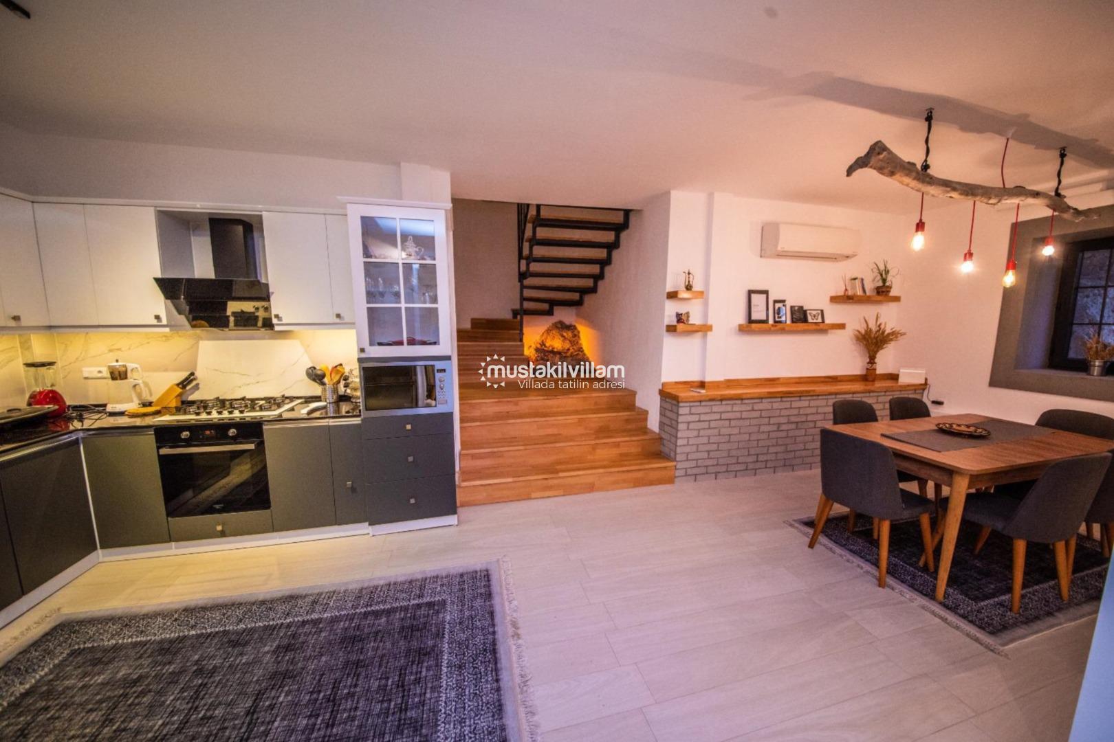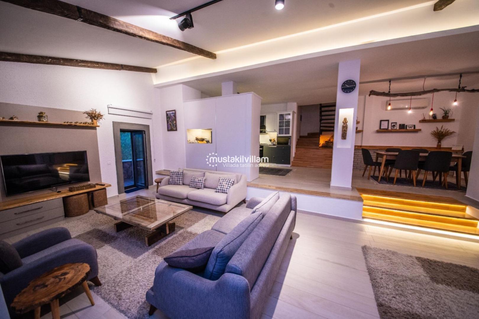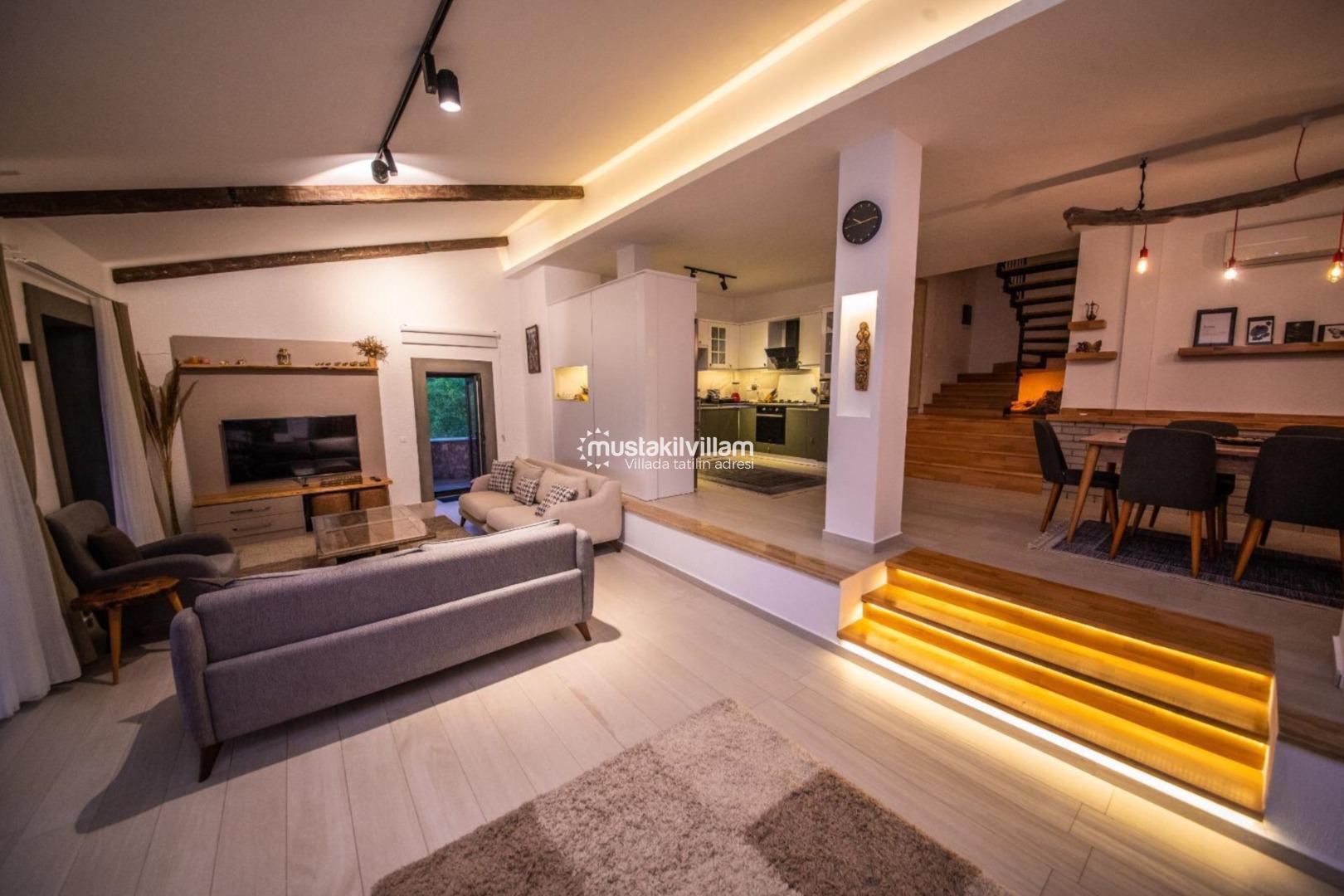 Minimalist ve şık dekorasyon anlayışı ile dizayn edilen villa, hem estetik hem de fonksiyonel bir kullanım sunmaktadır. Her detay, misafirlerin konforu düşünülerek özenle planlanmıştır.