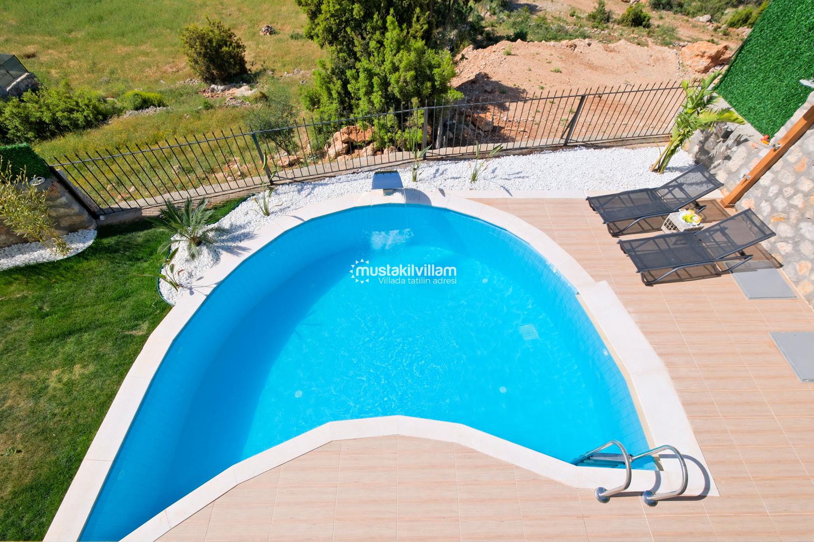 Özel yüzme havuzu: Yaklaşık 7 × 3 m, derinlik ~1,45 m, kısmen korunaklı