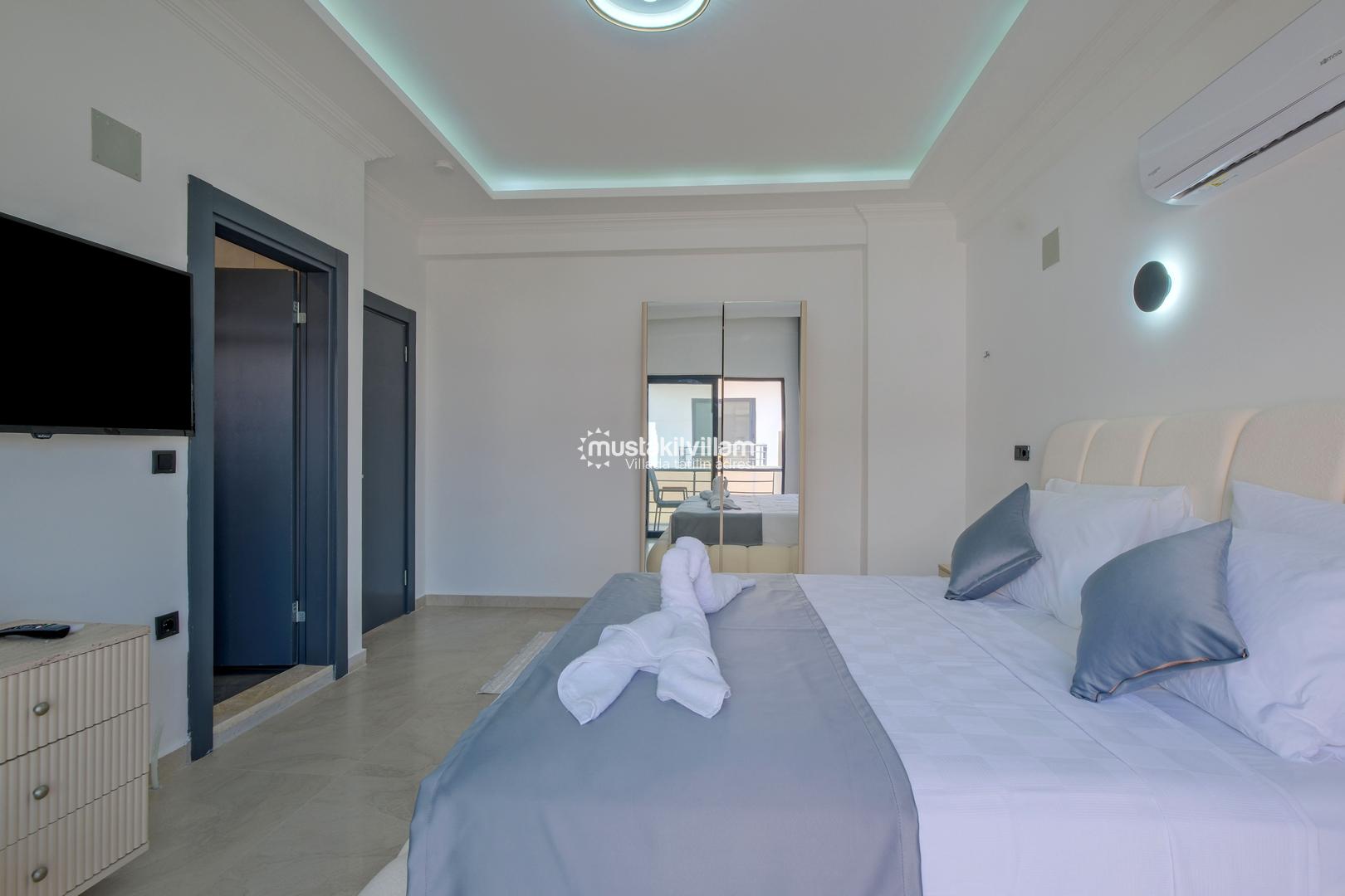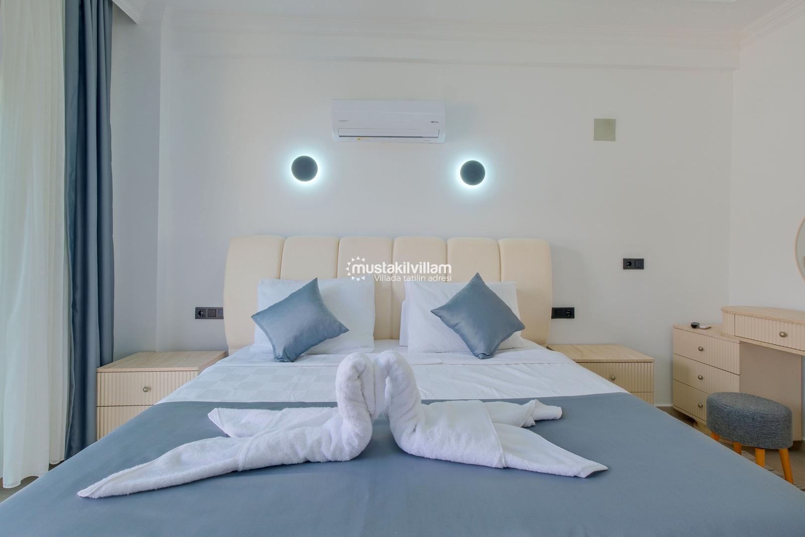 1. Yatak Odası 1 Çift Kişilik Yatak + Komodin + Elbise Dolabı + Makyaj Masası + Banyo Wc