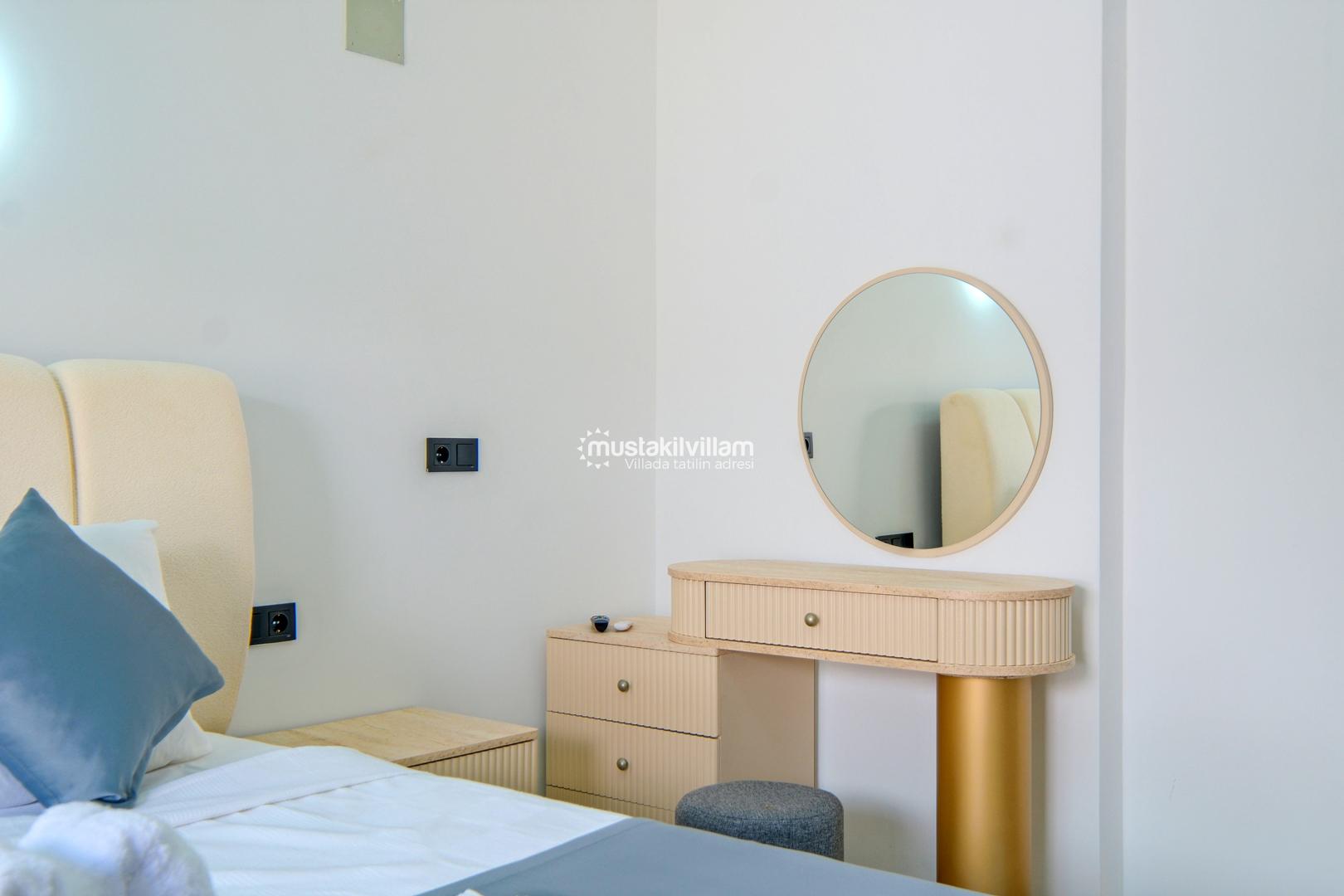 4. Yatak Odası 1 Çift Kişilik Yatak + Komodin + Elbise Dolabı + Makyaj Masası + Ortak BAnyo