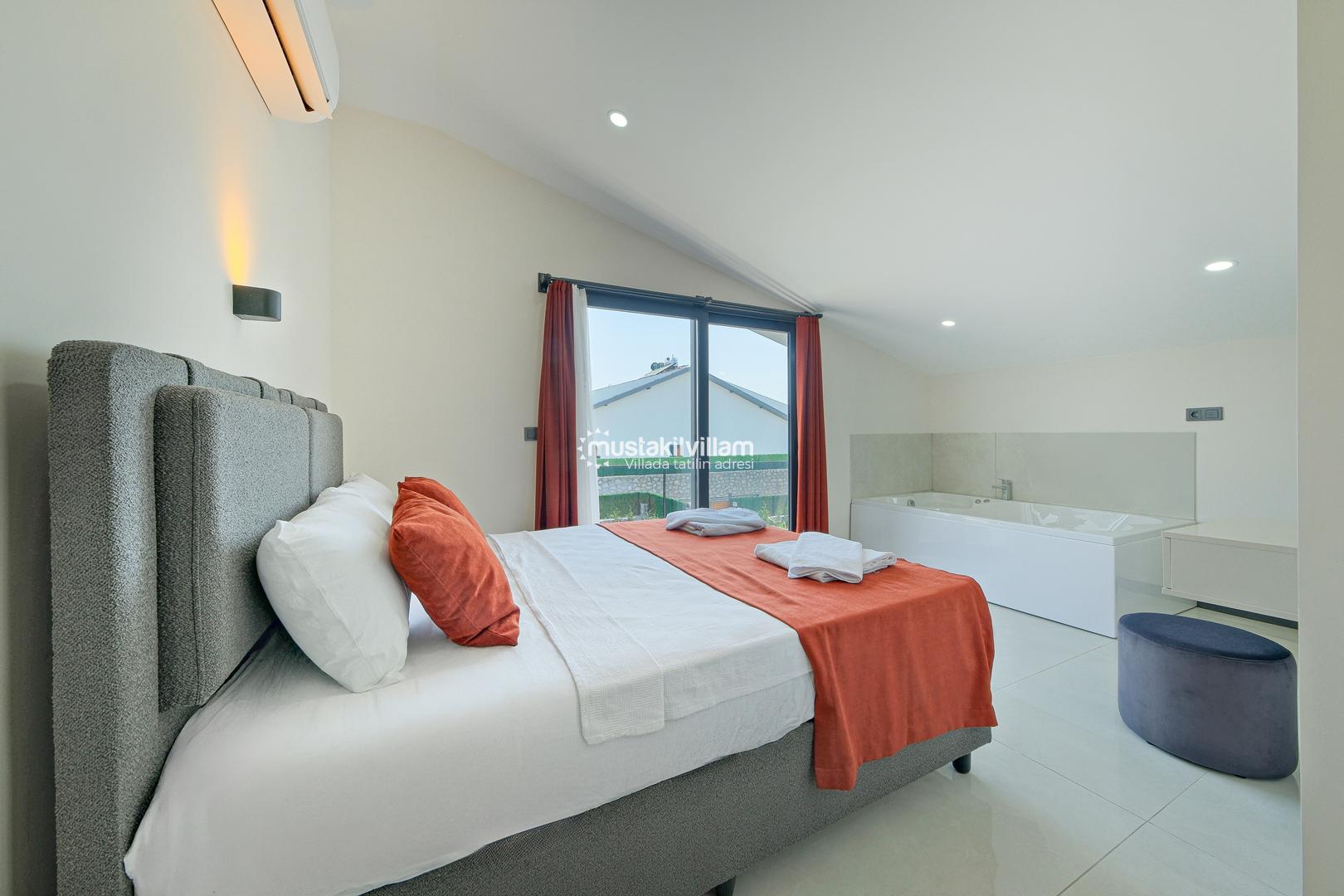 2. Yatak Odası 1 çift kişilik yatak + komodin + elbise dolabı + klima + ebeveyn banyo + Jakuzi
