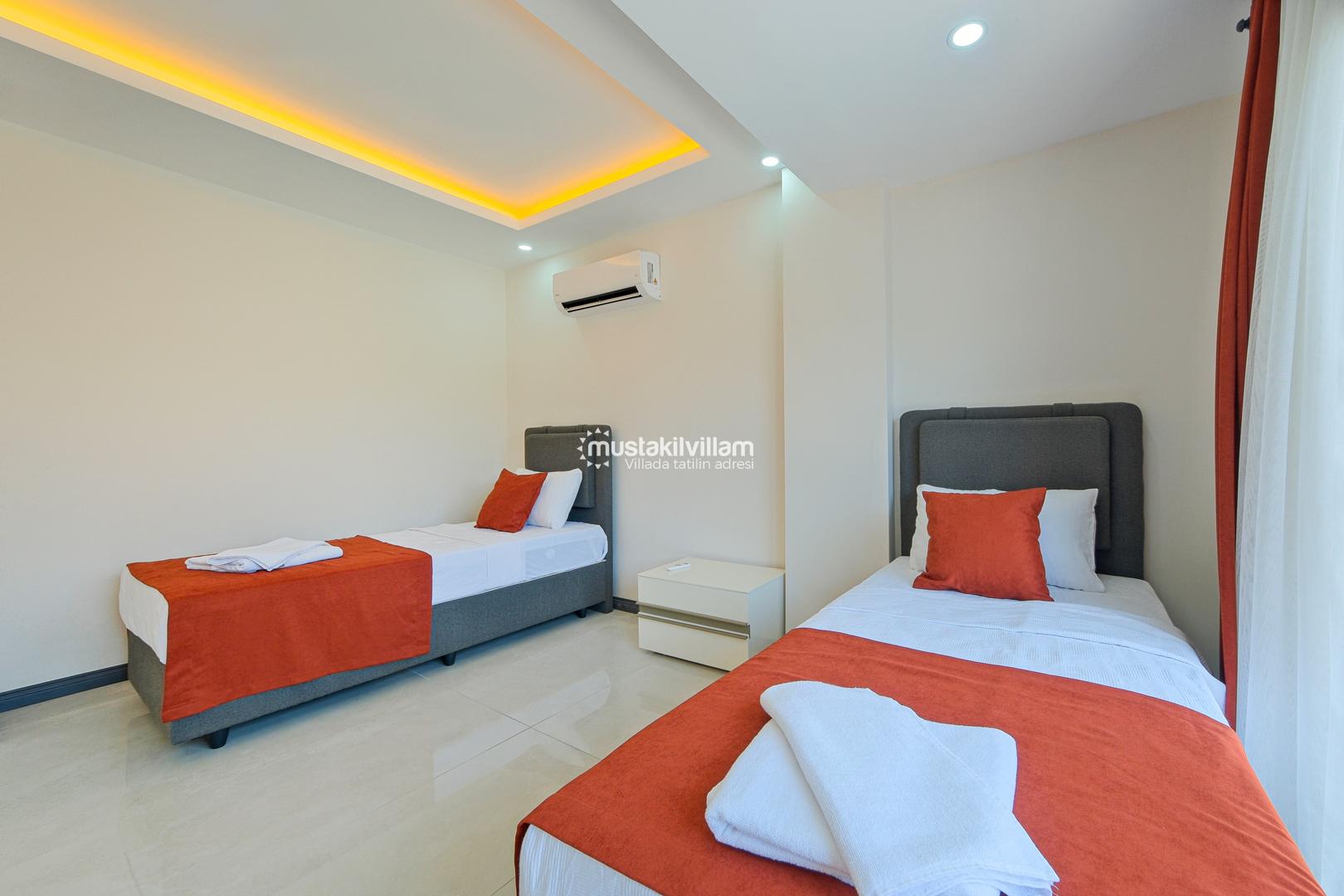 3. Yatak Odası 2 tek kişilik yatak + komodin + elbise dolabı + klima + ebeveyn banyo