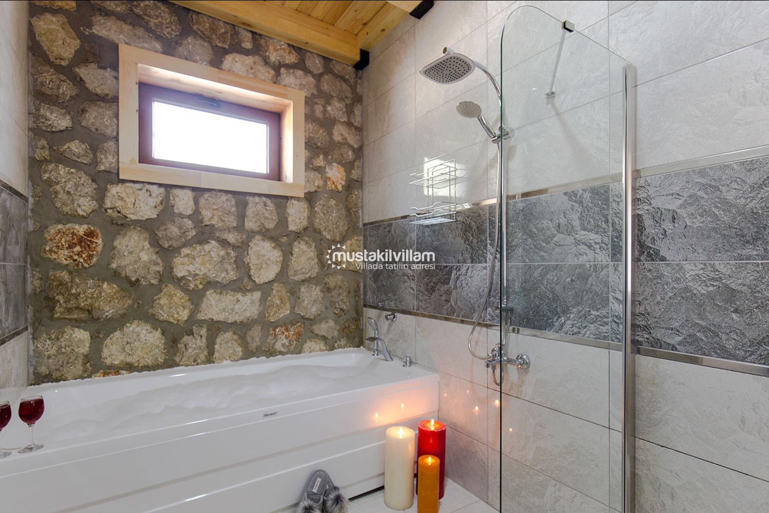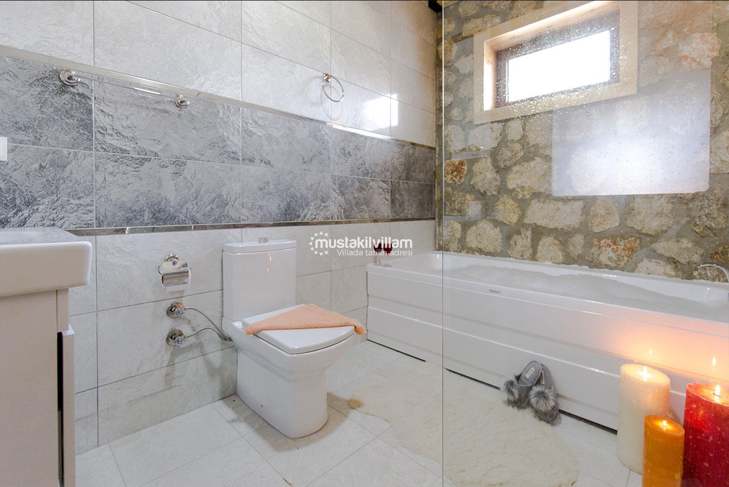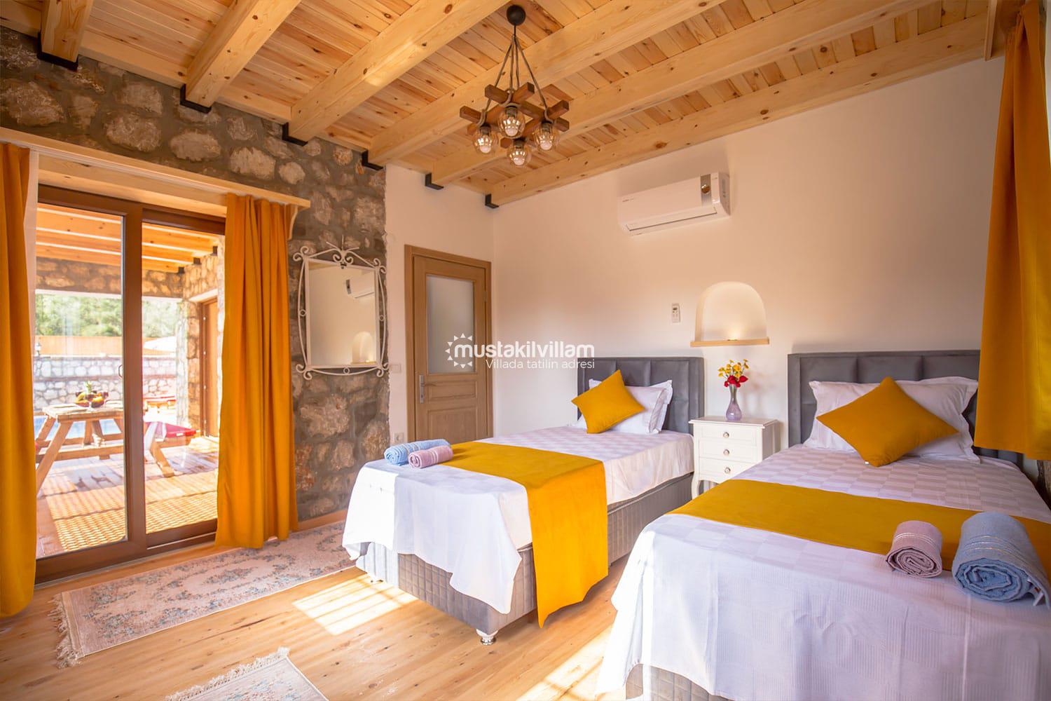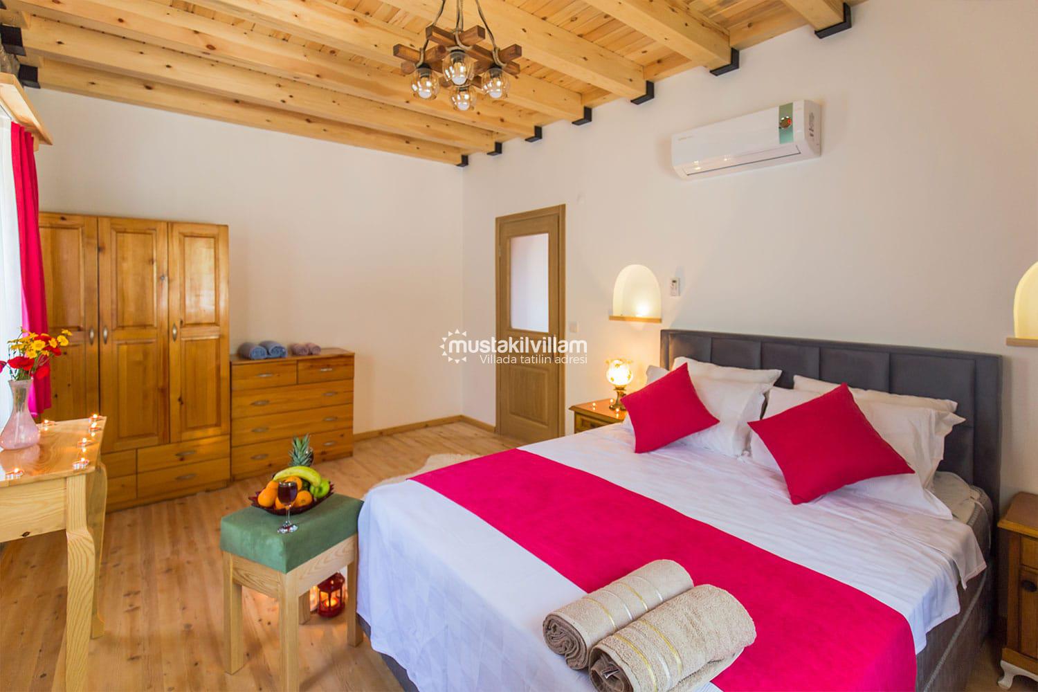 En çok tercih edilen tatil beldelerimizden Fethiye Ovacık mevkiinde konumlu Villa Sultanım 2 yatak odasına sahip 4 kişi konaklama kapasiteli kiralık tatil villasıdır. Taş ve ahşap mimarinin bir arada kullanıldığı konforlu mobilyalarla dizayn edilmiş olan villamızın özel havuzu bulunmaktadır. Bahçe terası tam korunaklı olan villamız dışarıdan görünmemektedir, bu özelliğinden dolayı muhafazakar aile ve balayı çiftlerimiz için uygun tatil villa seçenekleri arasında yer alır. Bahçe terasında bulunan yemek masası ve barbeküde sevdiklerinizle birlikte keyifli sofralar kurabilir havuzda serinlemenin ve güneşlenmenin tadını çıkarabilirsiniz. Villamızda bulunan jakuzi de senenin tüm yorgunluğunu üzerinizden atıp rahatlama olanağına da sahipsiniz. Villamızın hemen yanında aynı tarz ve konseptte yer alan Villa Sevil yer almaktadır. Bu 2 villamız aynı anda kiralama imkanı ile toplamda 8 kişi konaklama kapasitesine sahiptir.