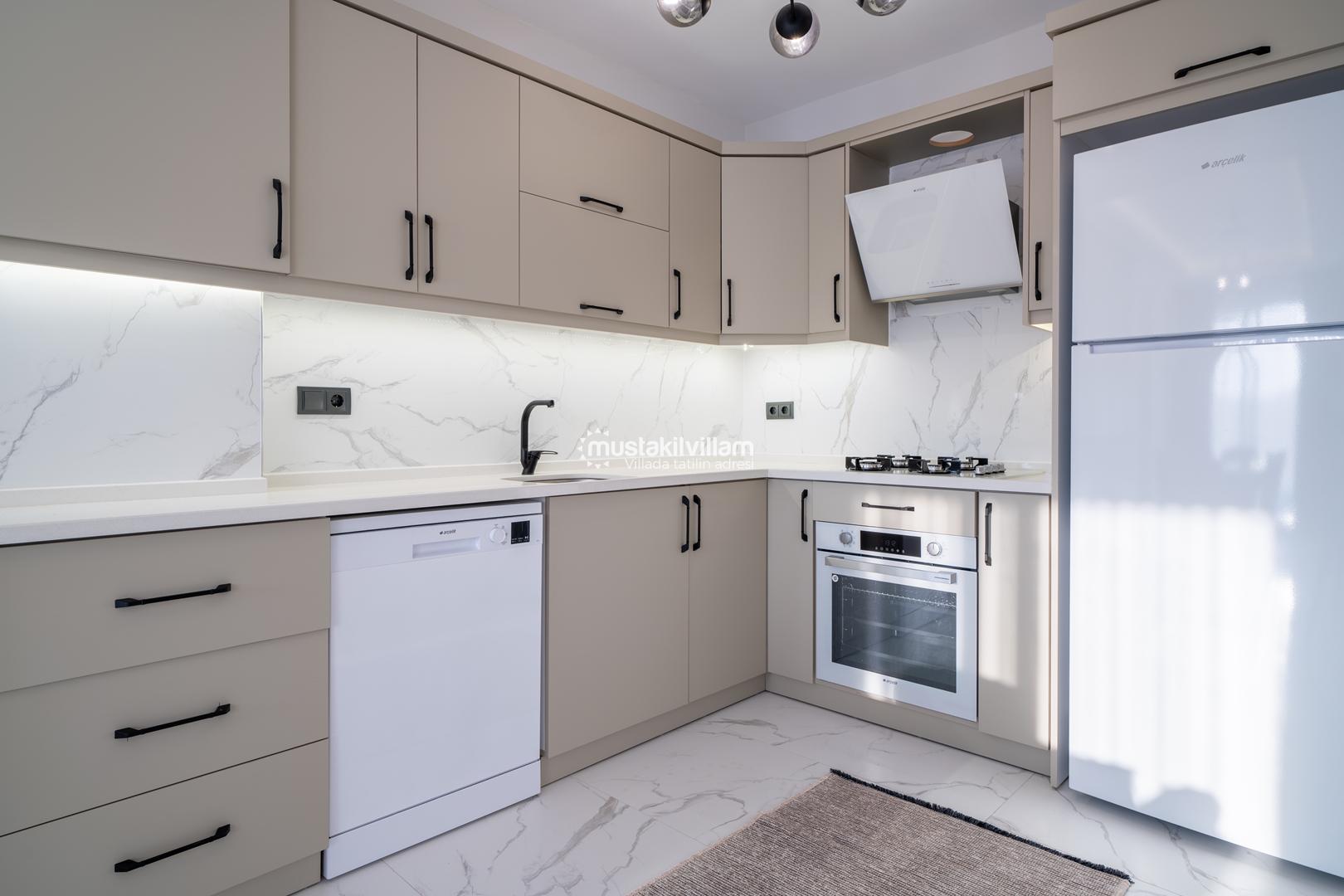 Villa Ariassos 1’in mutfağı, tatil süresince ihtiyaç duyabileceğiniz tüm ekipmanlarla donatılmıştır. Modern ve kullanışlı yapıya sahip mutfakta: