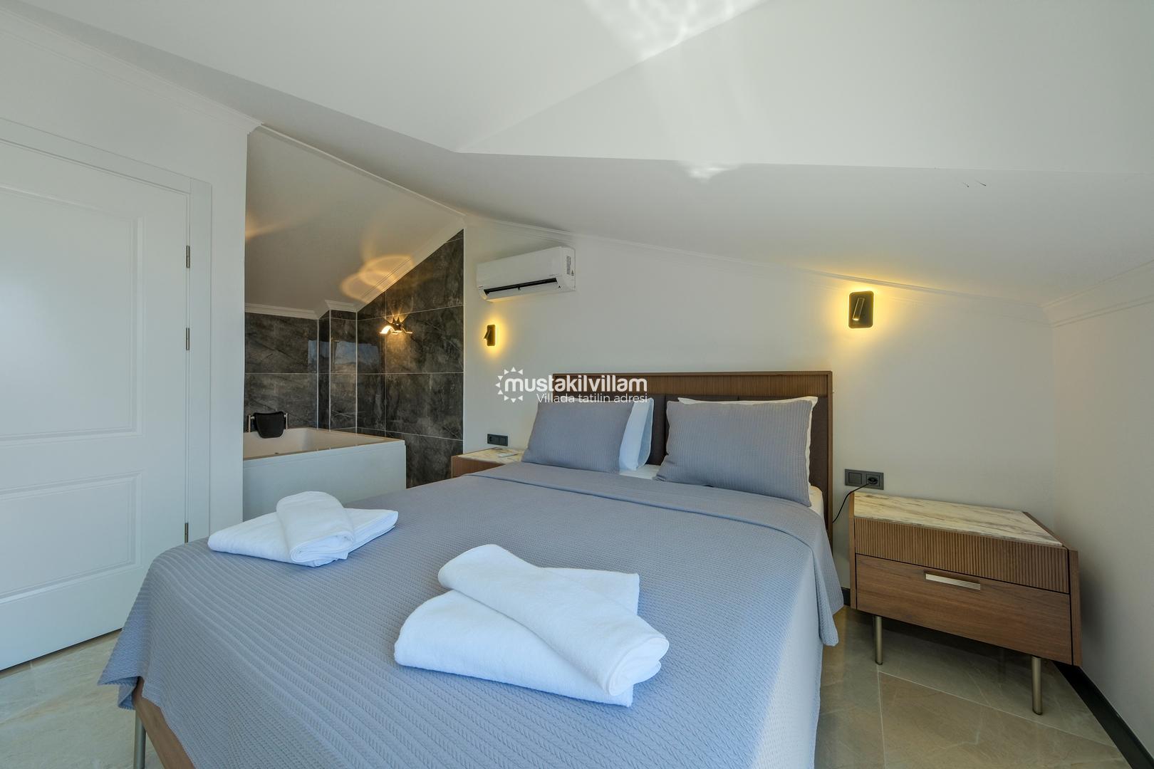 Üçüncü Yatak Odası (Çatı Katı): Çift kişilik yatak, özel banyo/WC ve jakuzi ile donatılmıştır. Bu oda, özellikle romantik bir atmosfer arayan misafirler için öne çıkar.