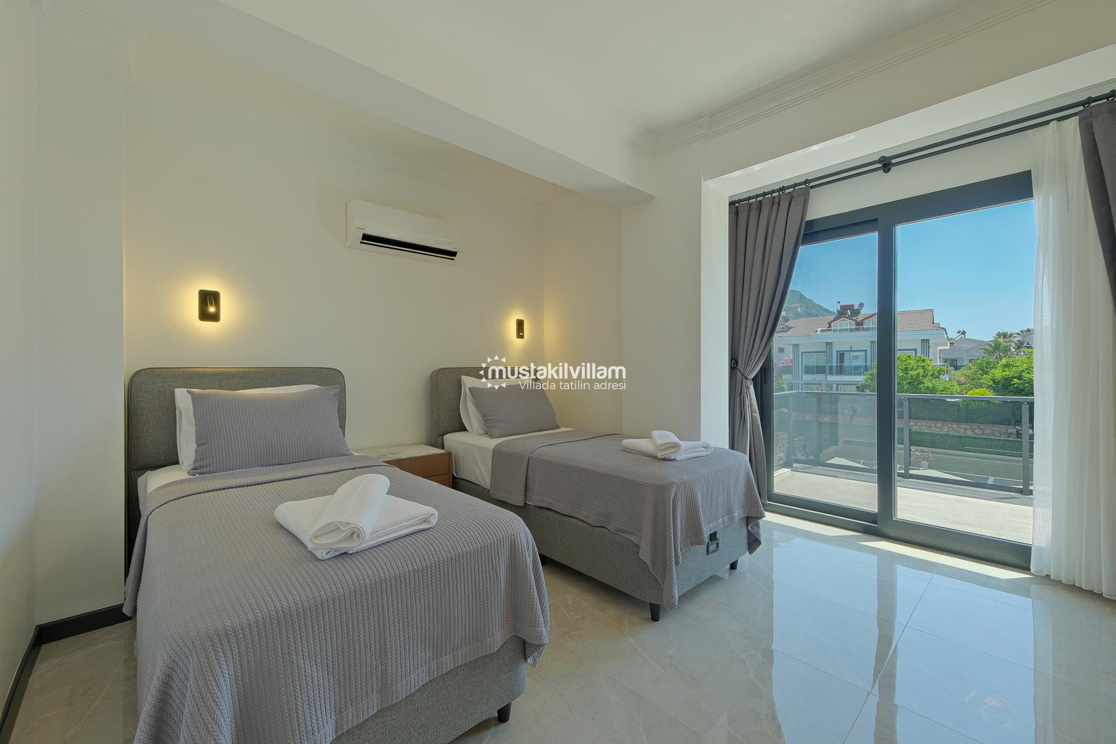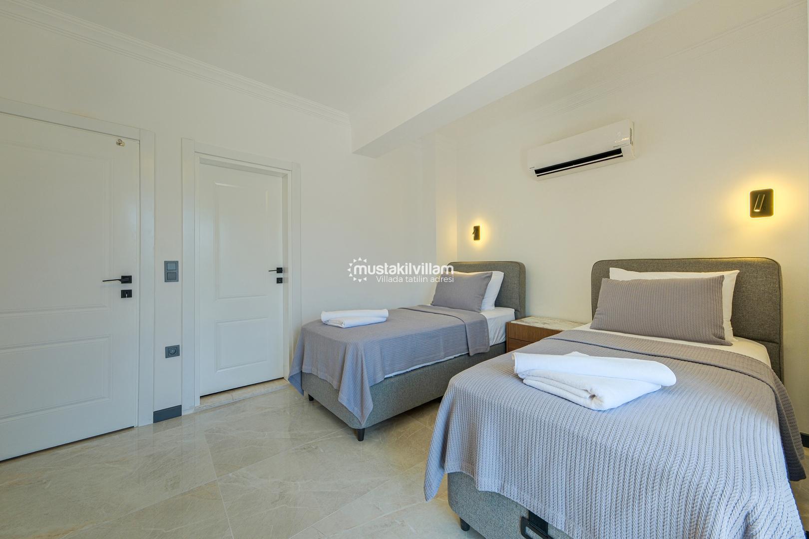 İkinci Yatak Odası: İki adet tek kişilik yatak, klima ve özel banyo/WC içerir. Çocuklu aileler veya arkadaş grupları için idealdir.