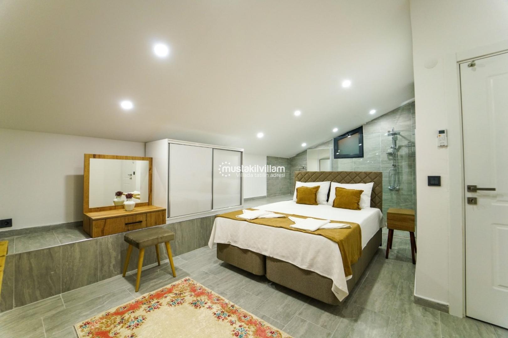 Toplamda 4 yatak odasına sahip olan Villa Legendary 1, 8 kişiye kadar konaklama kapasitesi ile kalabalık aileler veya arkadaş grupları için oldukça ideal bir tatil alternatifidir. Villanın sunduğu geniş iç mekânlar, modern donanımlar ve huzurlu atmosfer sayesinde misafirler şehir hayatının yoğunluğundan uzaklaşarak doğa ile iç içe keyifli bir tatil geçirebilirler.