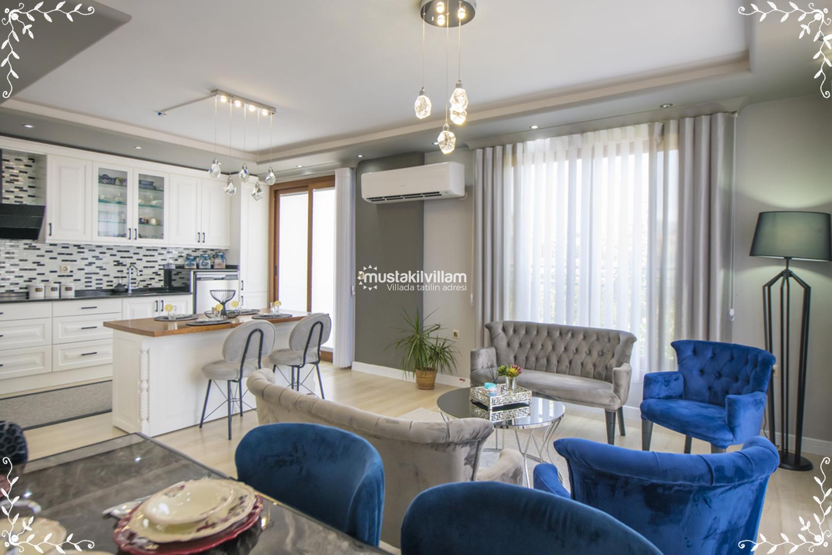 Bu yapı, özellikle aile tatilleri ve arkadaş grupları için konforlu ve kullanışlı bir düzen sunar. Her odanın ayrı banyosu olması, tatil boyunca mahremiyet ve rahatlık sağlar.