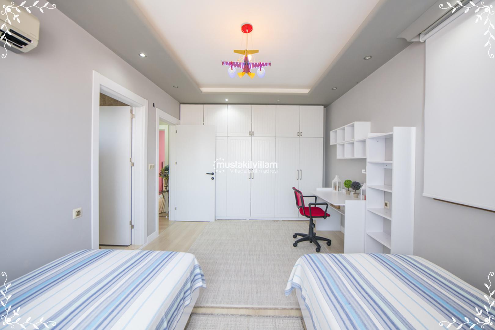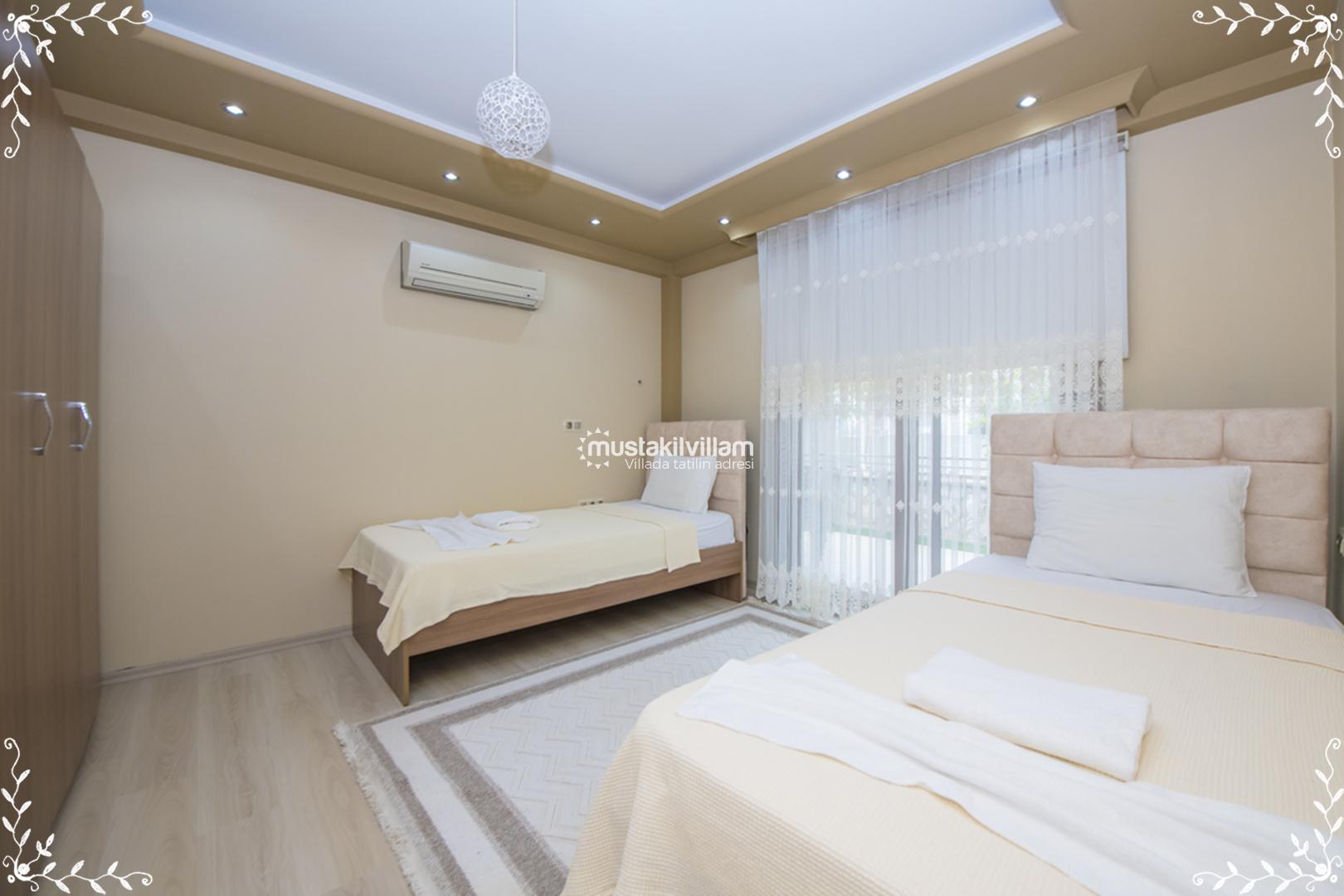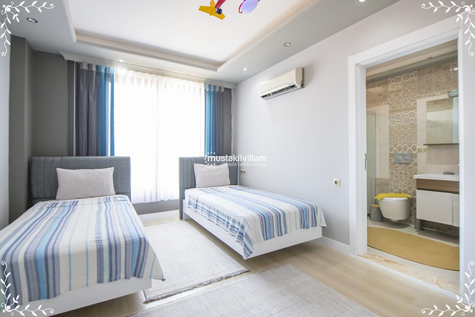 ✔ 4. Yatak Odası: 2 tek kişilik yatak, klima, özel banyo – WC