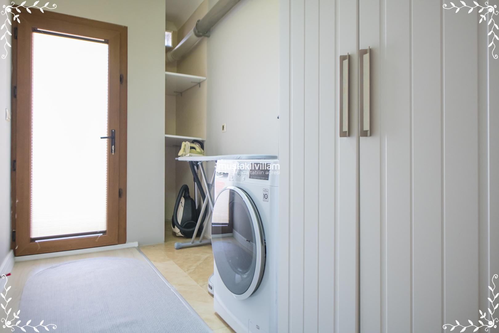Bu mutfak düzeni sayesinde misafirler hem günlük öğünlerini villa içinde keyifle hazırlayabilir hem de açık havuz kenarında barbekü yaparak akşam sofraları kurabilirler.