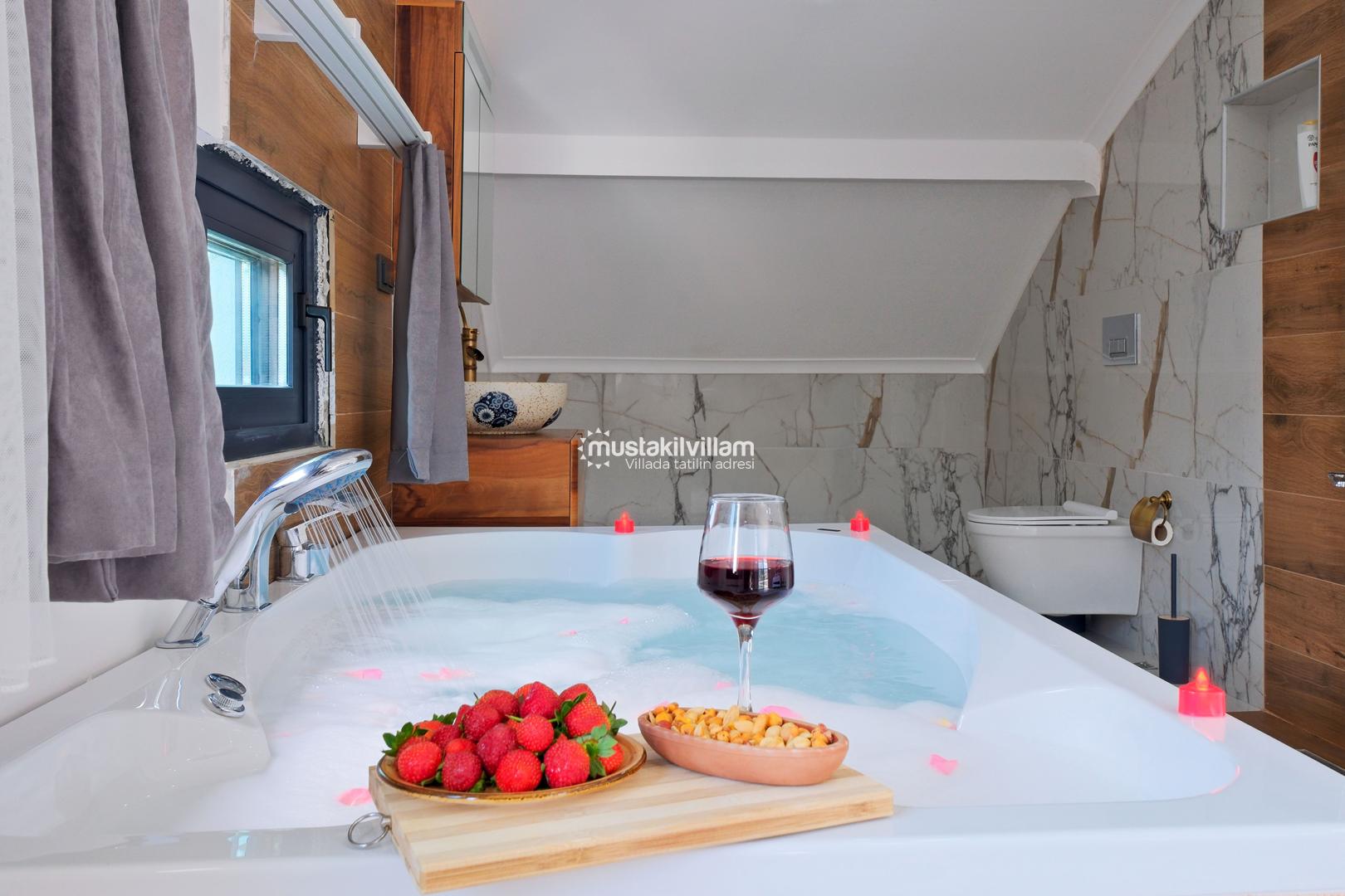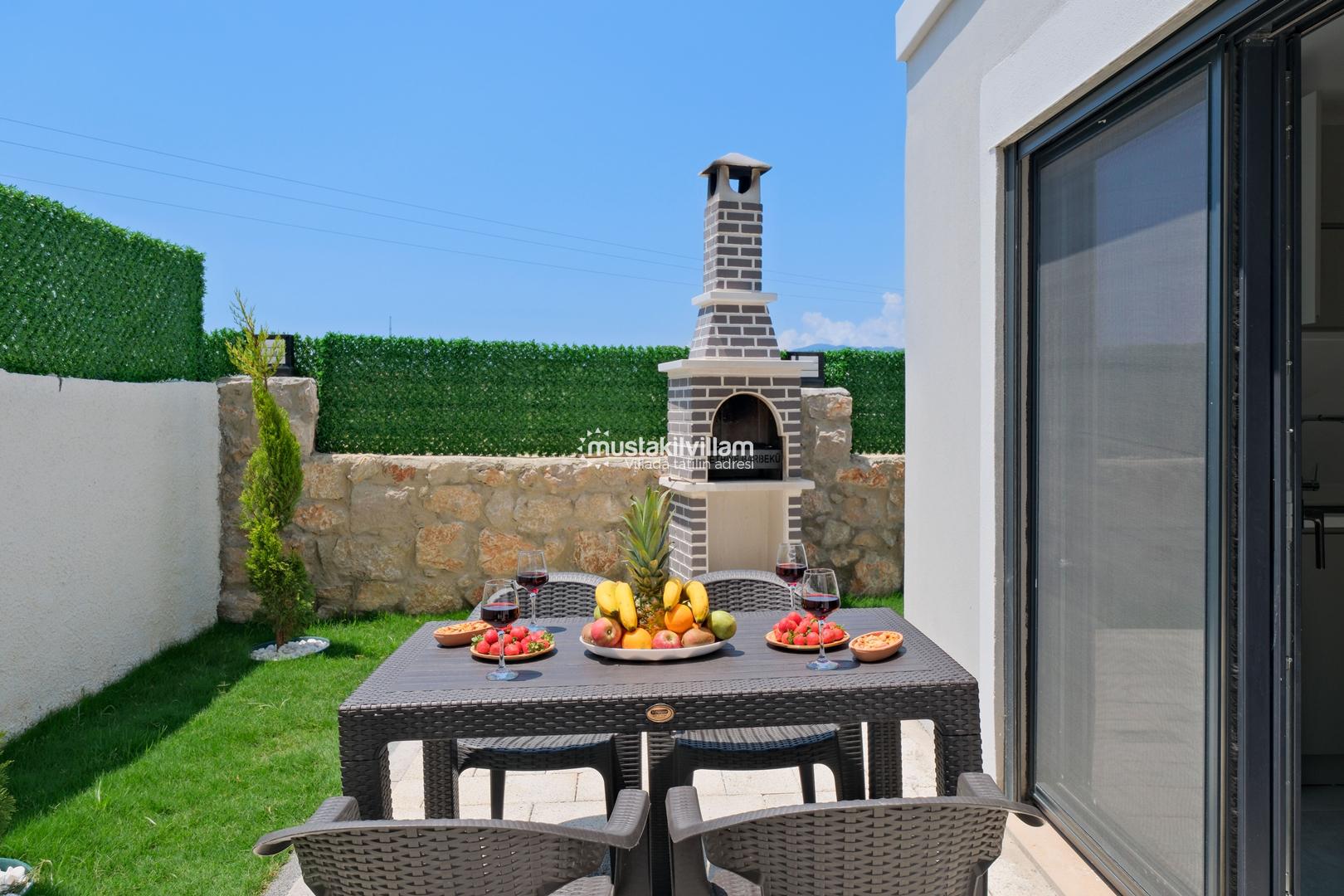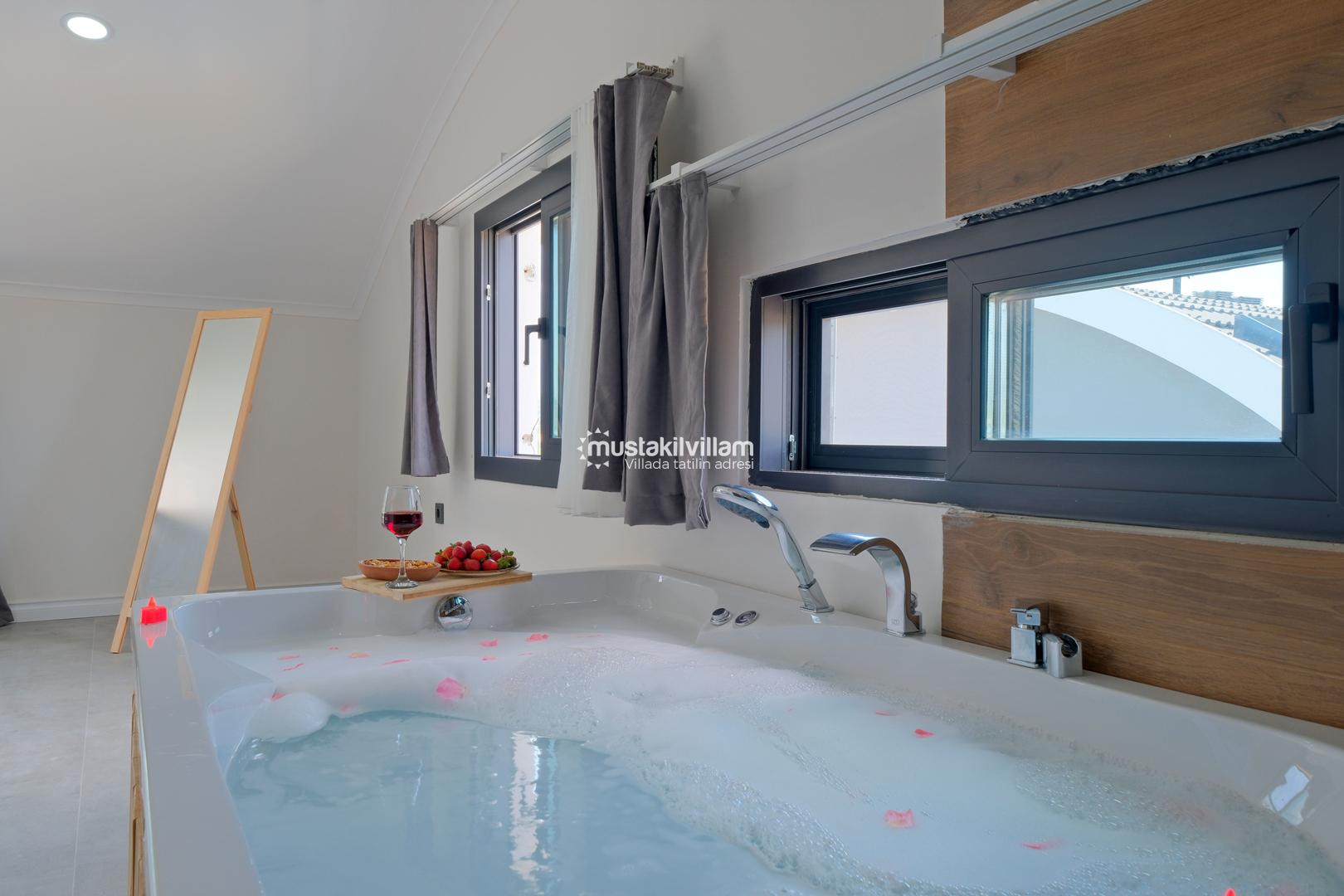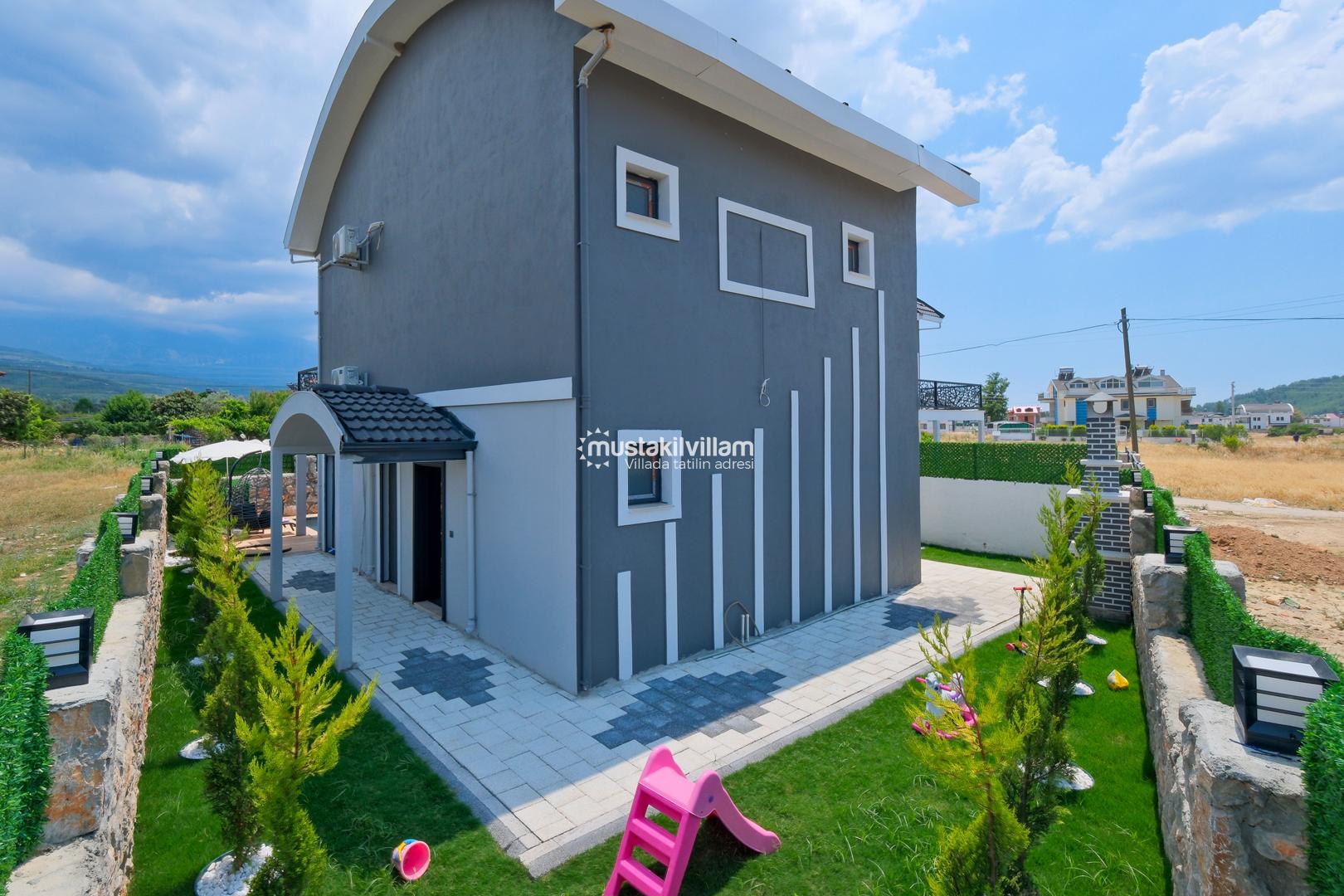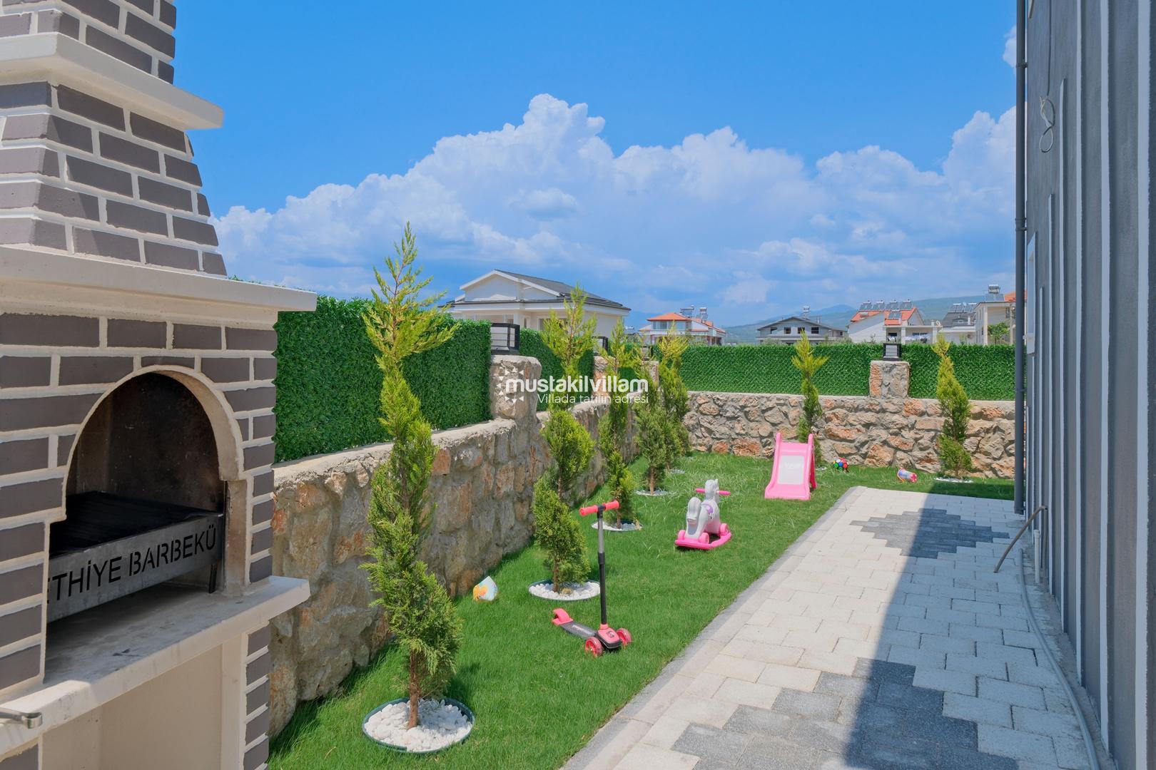 Villamızın dış alanında özel yüzme havuzu ve jakuzi yer almakta olup, havuz çevresinde şezlong alanı mevcuttur. Geniş bahçesi sayesinde hem dinlenebilir hem de sevdiklerinizle keyifli vakit geçirebilirsiniz. Ayrıca çocuklu aileler için bahçe alanında scooter ve kaydırak gibi oyun ekipmanları da bulunmaktadır.