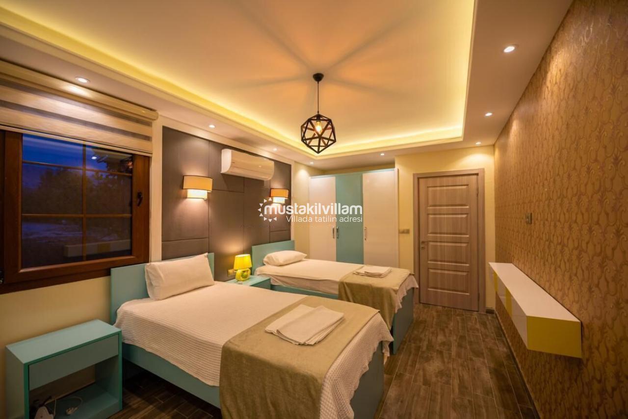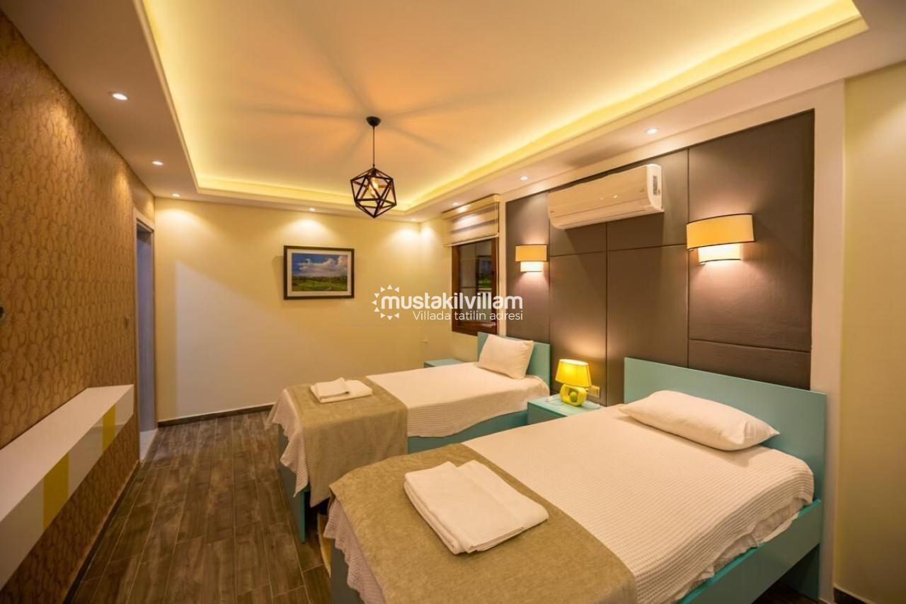 2.Yatak odası 2 tek kişilik yatak + elbise dolabı + komidin + ebeveyn banyo + klima