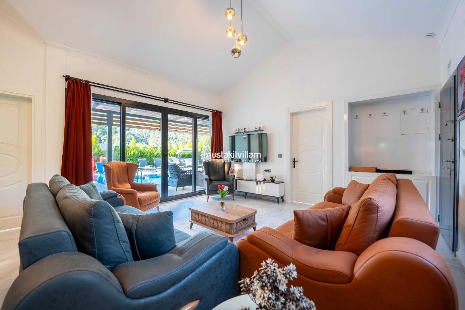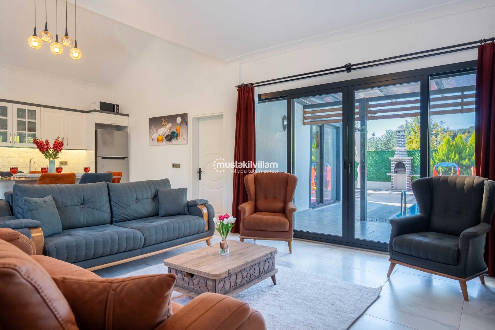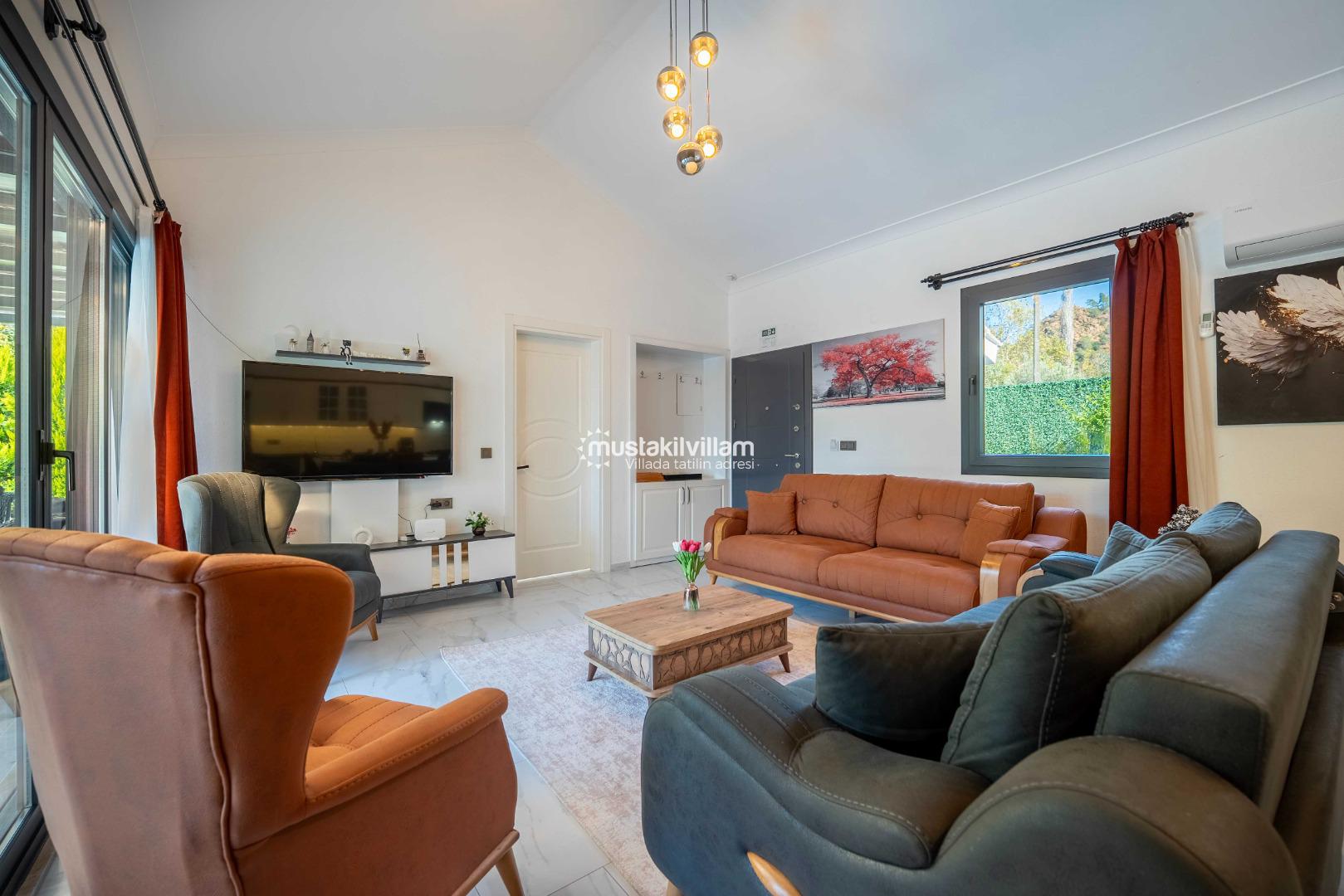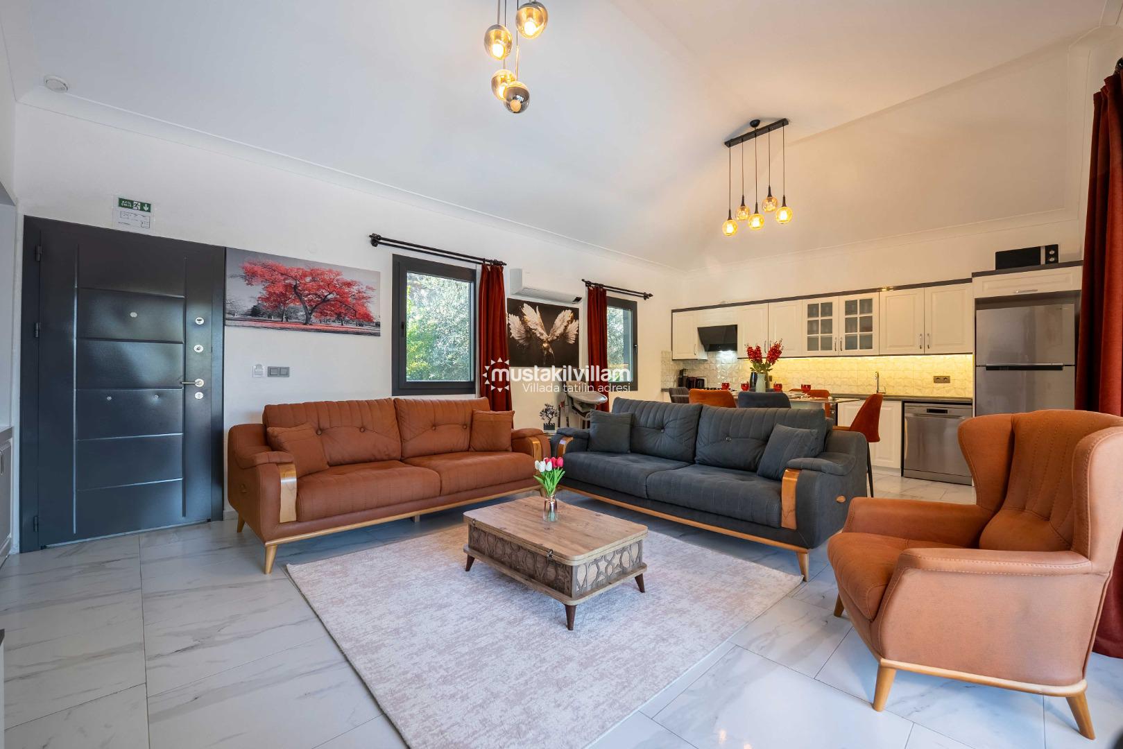 Bunun yanı sıra villa, merkezi noktalara ulaşım açısından da oldukça avantajlıdır. Kısa bir araç yolculuğu ile Çalış Plajı’na ulaşabilir, gün batımı manzarası eşliğinde yürüyüş yapabilirsiniz. Fethiye merkezde yer alan restoranlar, kafeler ve alışveriş alanları da kolay ulaşılabilir mesafededir.