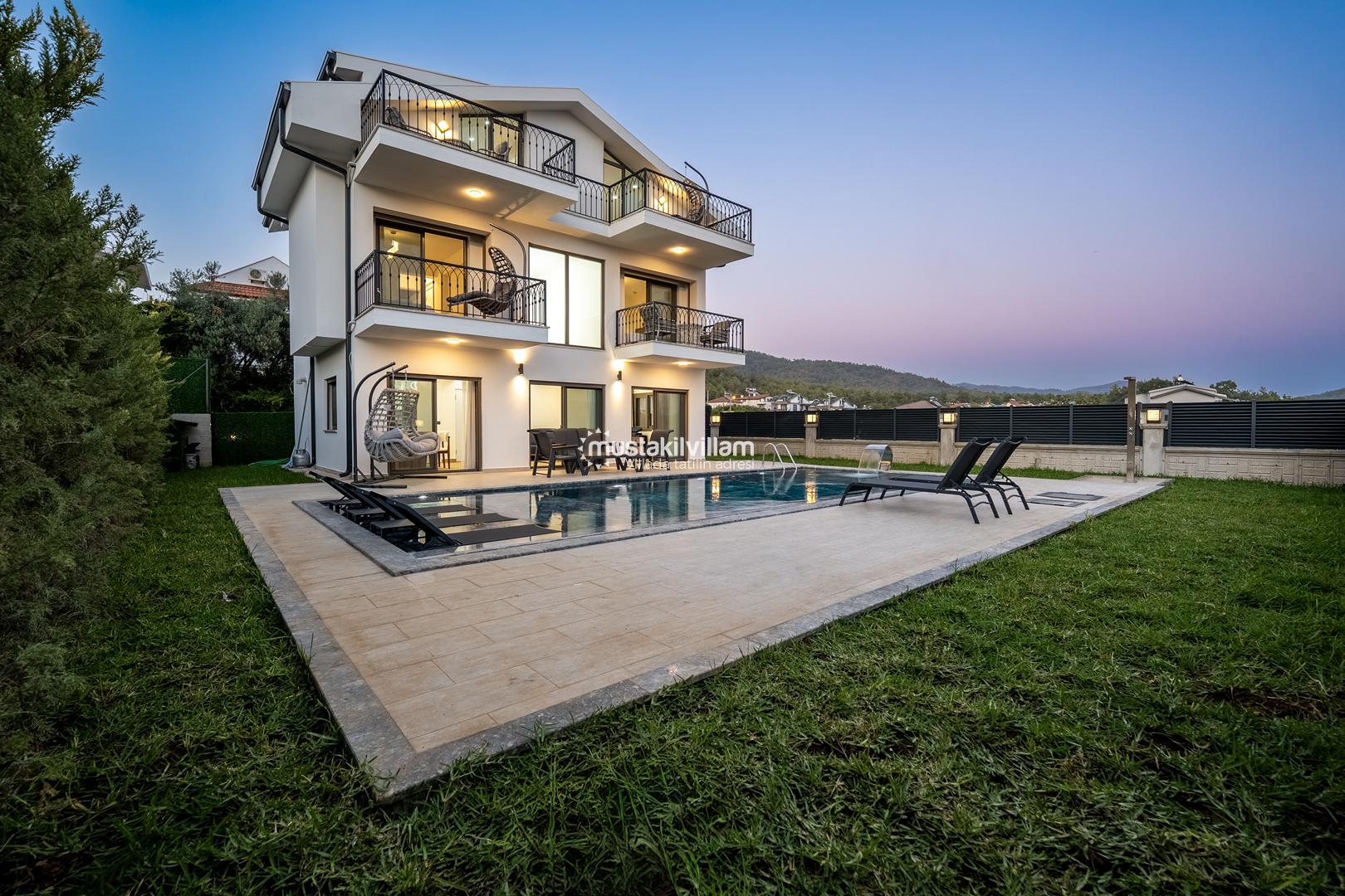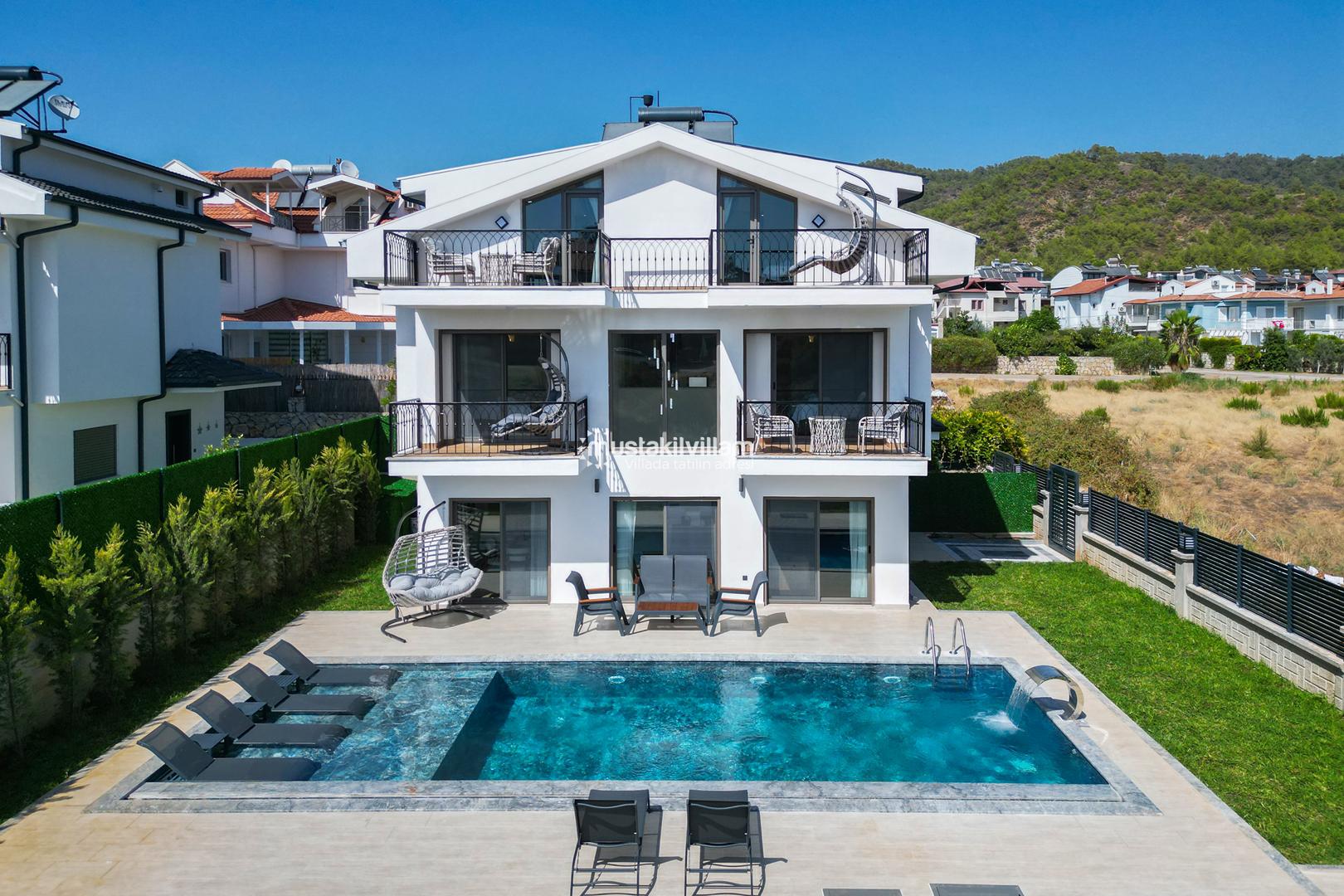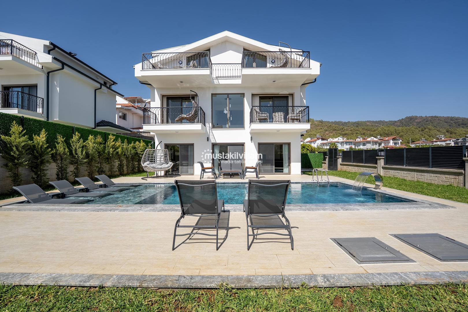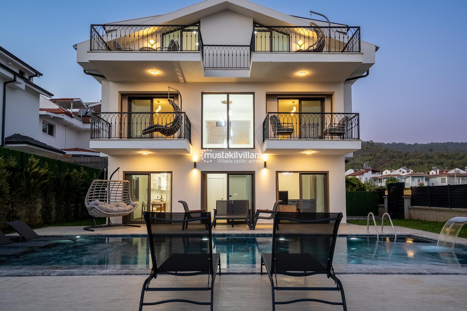 Fethiye Kargı mevkiinde konumlu lüks villamız 4 yatak odalı ve 8kişi konaklama kapasitelidir. Geniş ve ferah yapıya sahip villamız açık plan salon mutfak şeklinde tasarlanmıştır. Geniş Bahçe terasına sahip özel yüzme havuzlu villamız geniş aileler için ideal kiralık lüks tatil villa seçeneğidir.