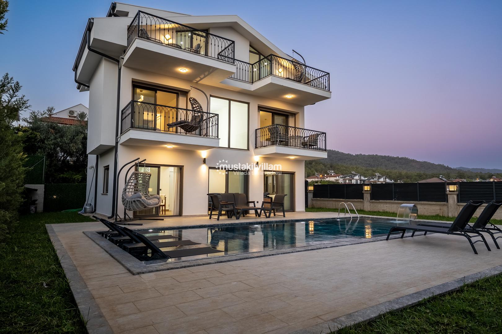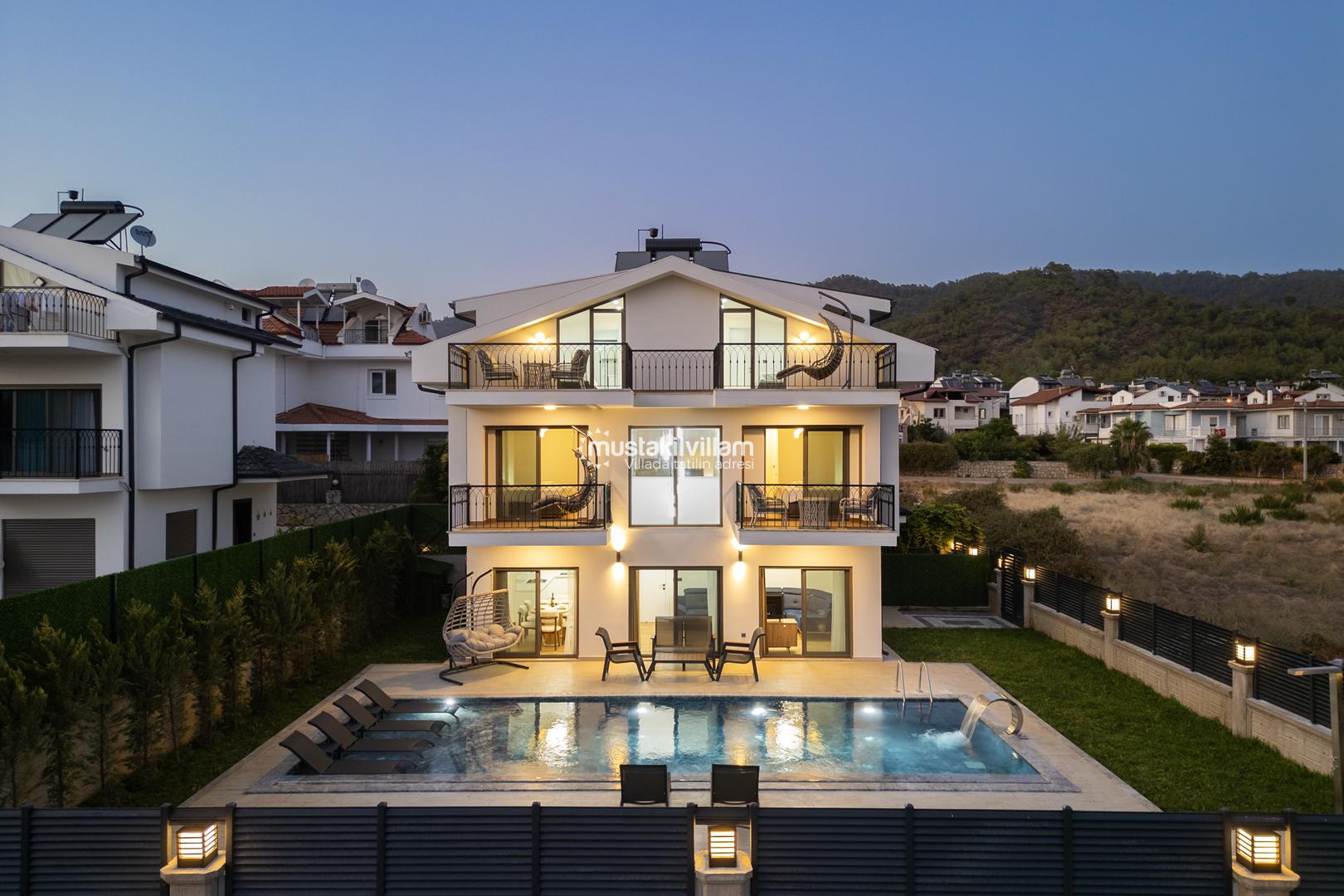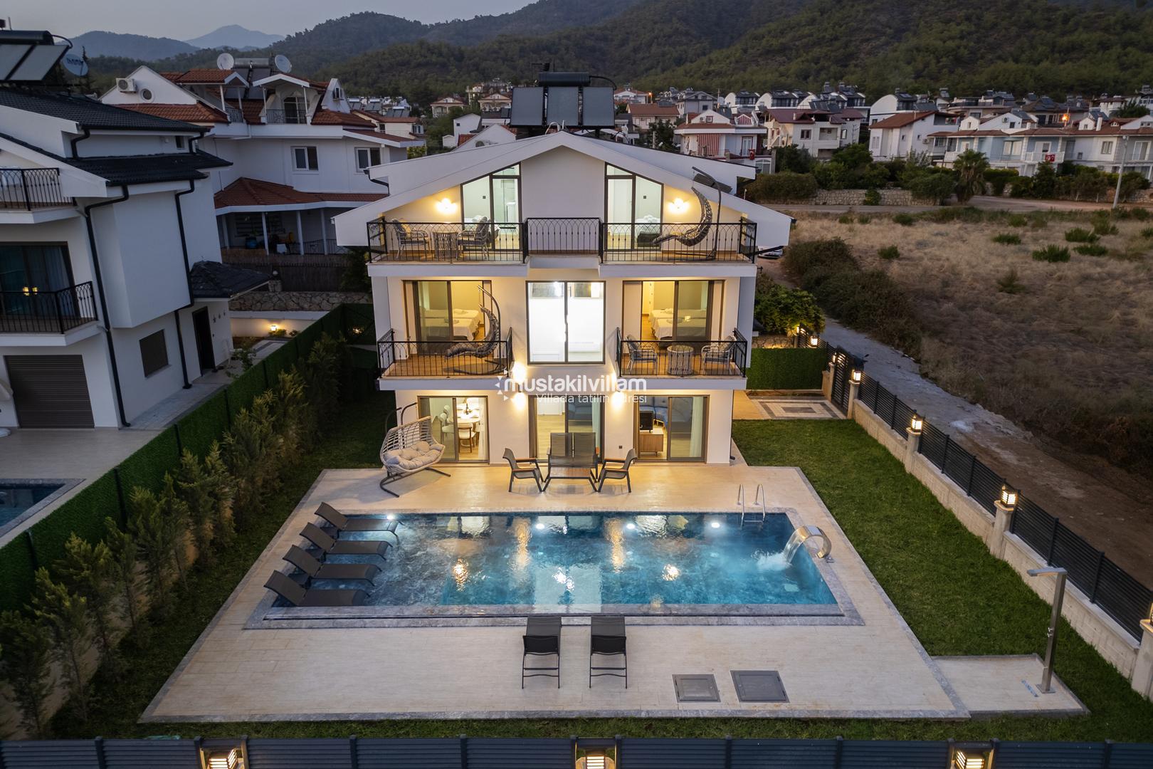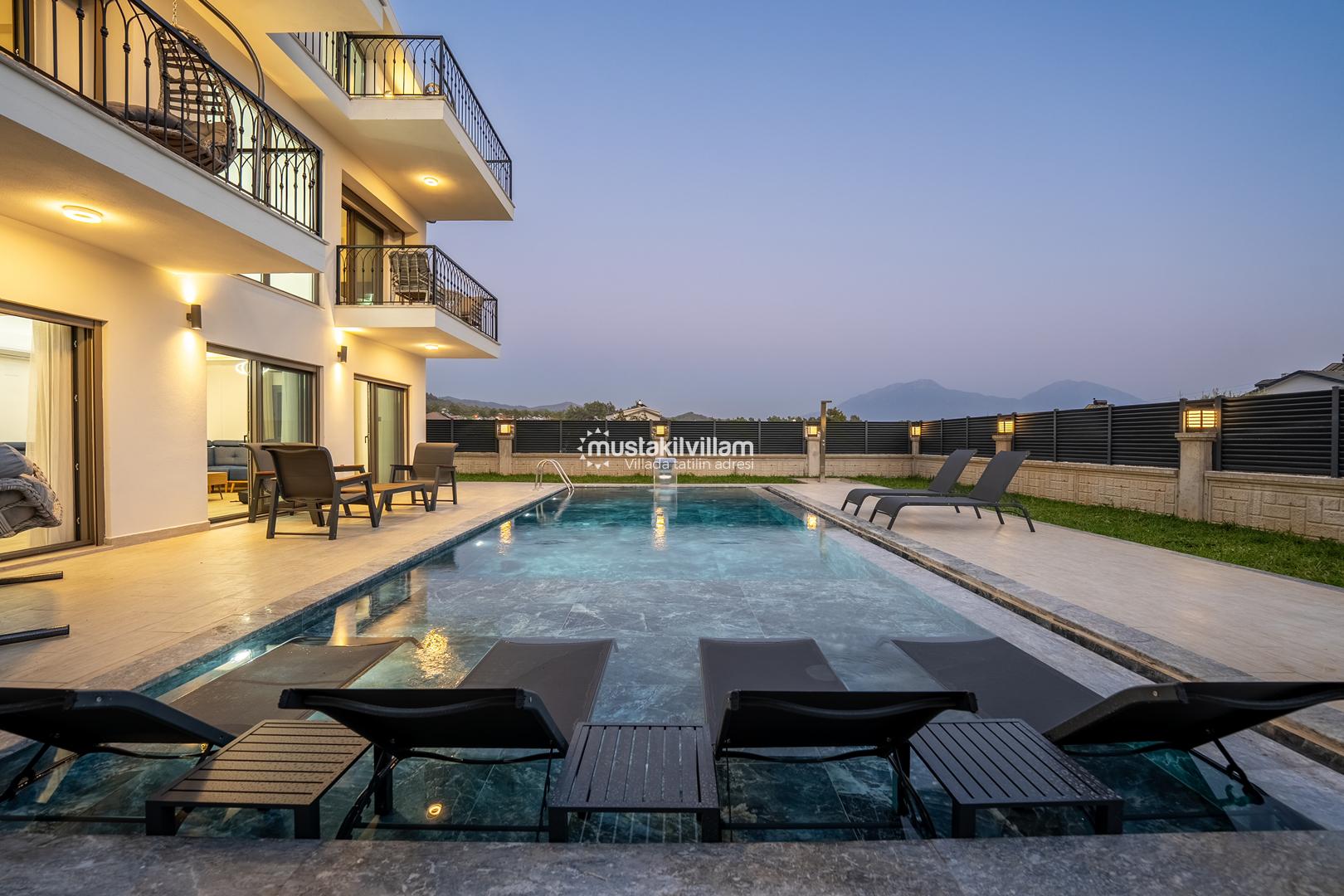 Fethiye Kargı mevkiinde konumlu lüks villamız 4 yatak odalı ve 8kişi konaklama kapasitelidir. Geniş ve ferah yapıya sahip villamız açık plan salon mutfak şeklinde tasarlanmıştır. Geniş Bahçe terasına sahip özel yüzme havuzlu villamız geniş aileler için ideal kiralık lüks tatil villa seçeneğidir.