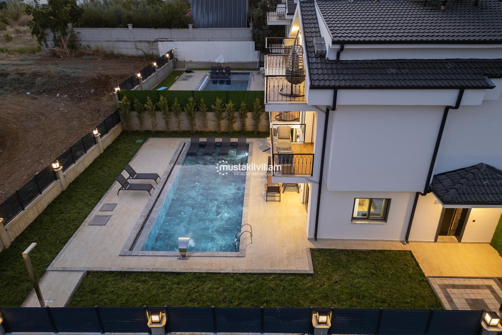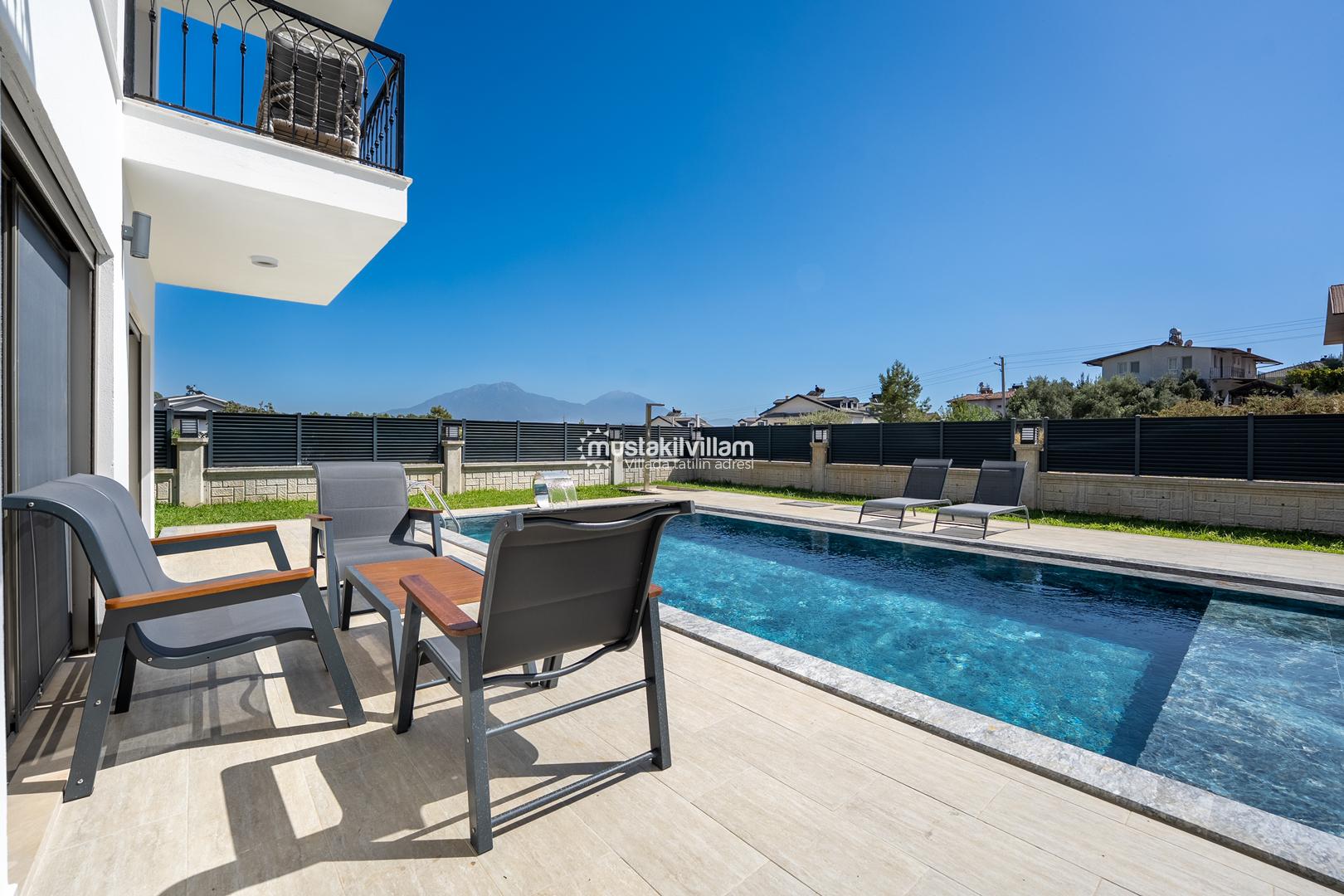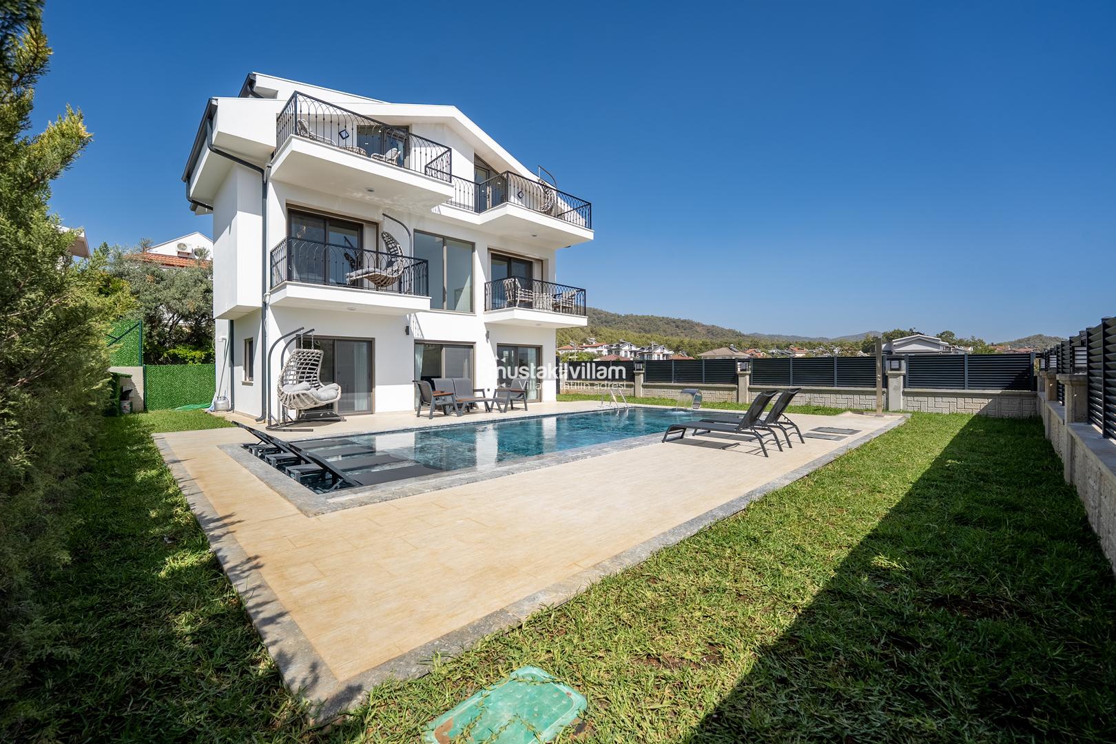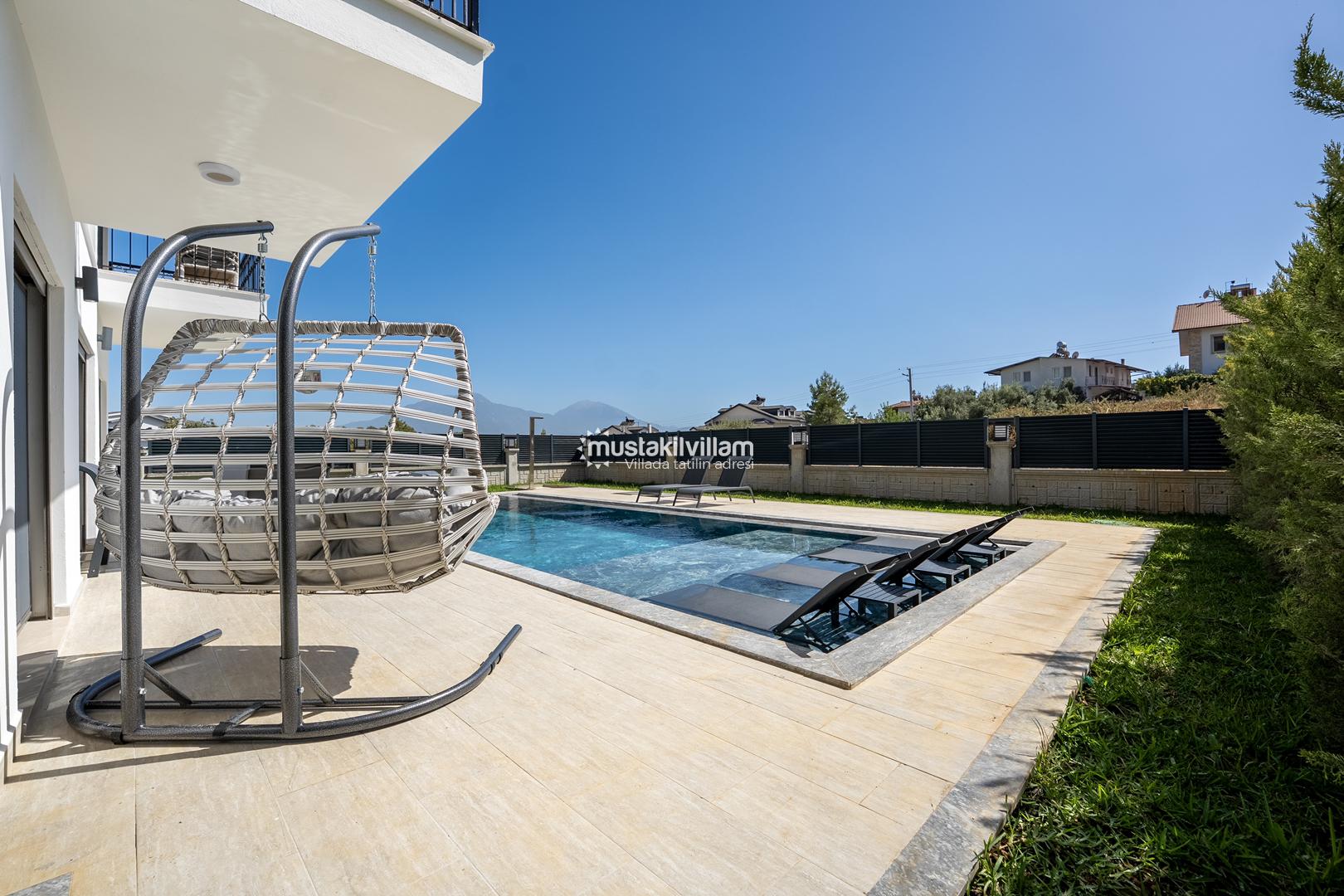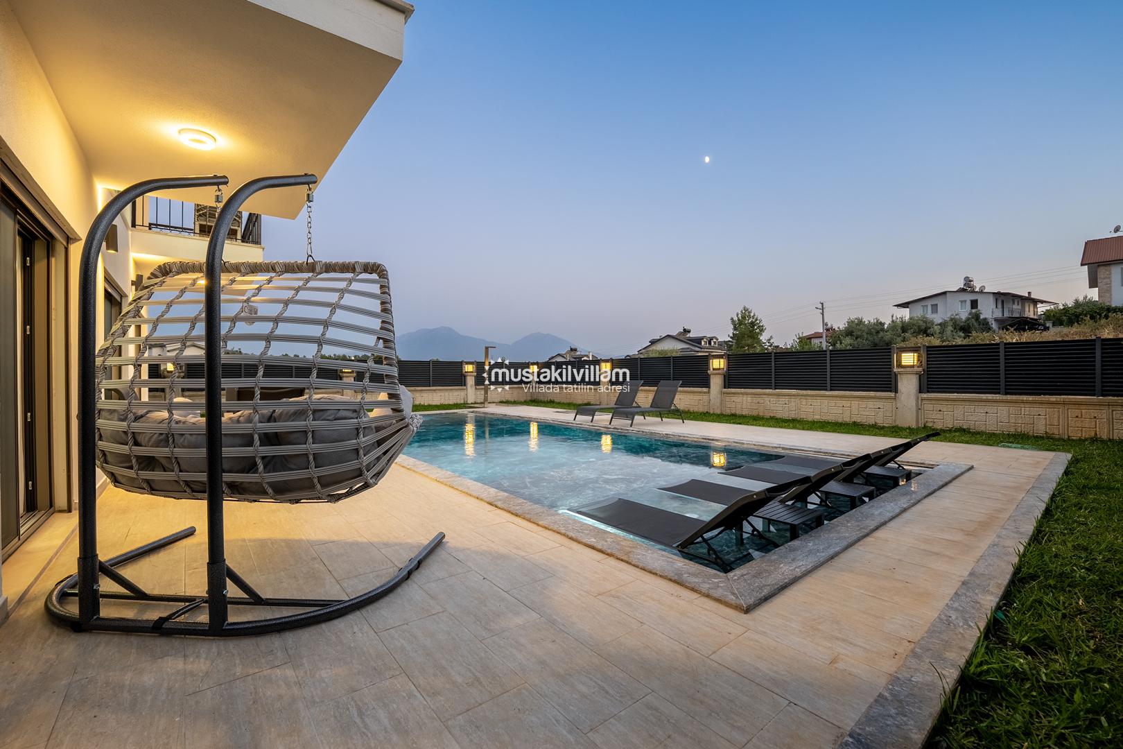 Fethiye Kargı mevkiinde konumlu lüks villamız 4 yatak odalı ve 8kişi konaklama kapasitelidir. Geniş ve ferah yapıya sahip villamız açık plan salon mutfak şeklinde tasarlanmıştır. Geniş Bahçe terasına sahip özel yüzme havuzlu villamız geniş aileler için ideal kiralık lüks tatil villa seçeneğidir.