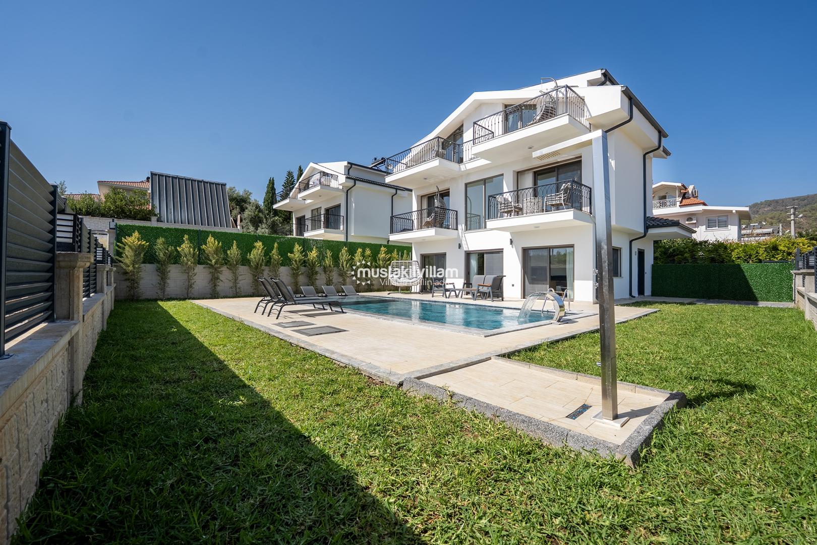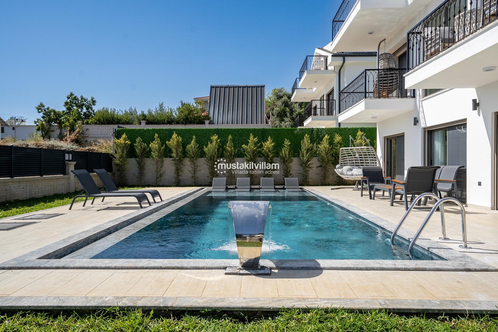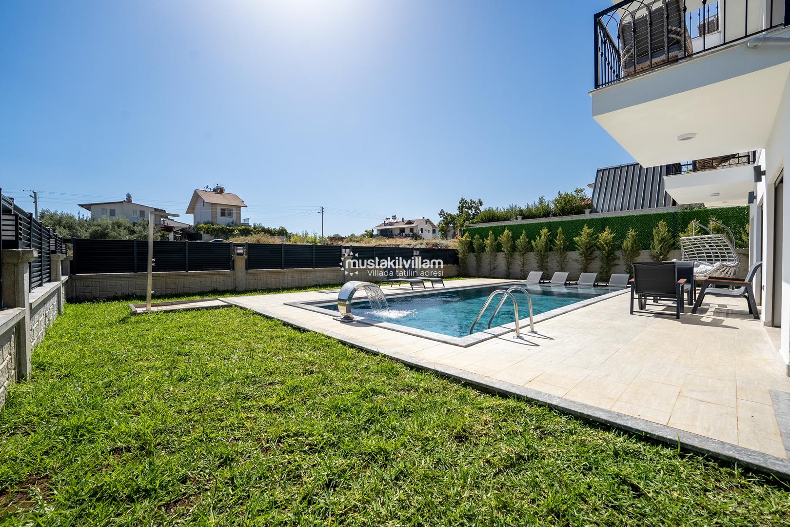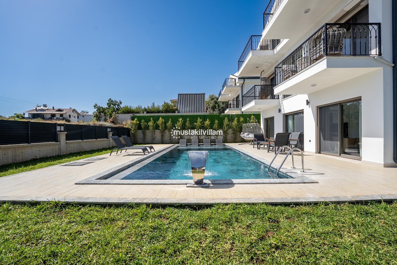 Fethiye Kargı mevkiinde konumlu lüks villamız 4 yatak odalı ve 8kişi konaklama kapasitelidir. Geniş ve ferah yapıya sahip villamız açık plan salon mutfak şeklinde tasarlanmıştır. Geniş Bahçe terasına sahip özel yüzme havuzlu villamız geniş aileler için ideal kiralık lüks tatil villa seçeneğidir.