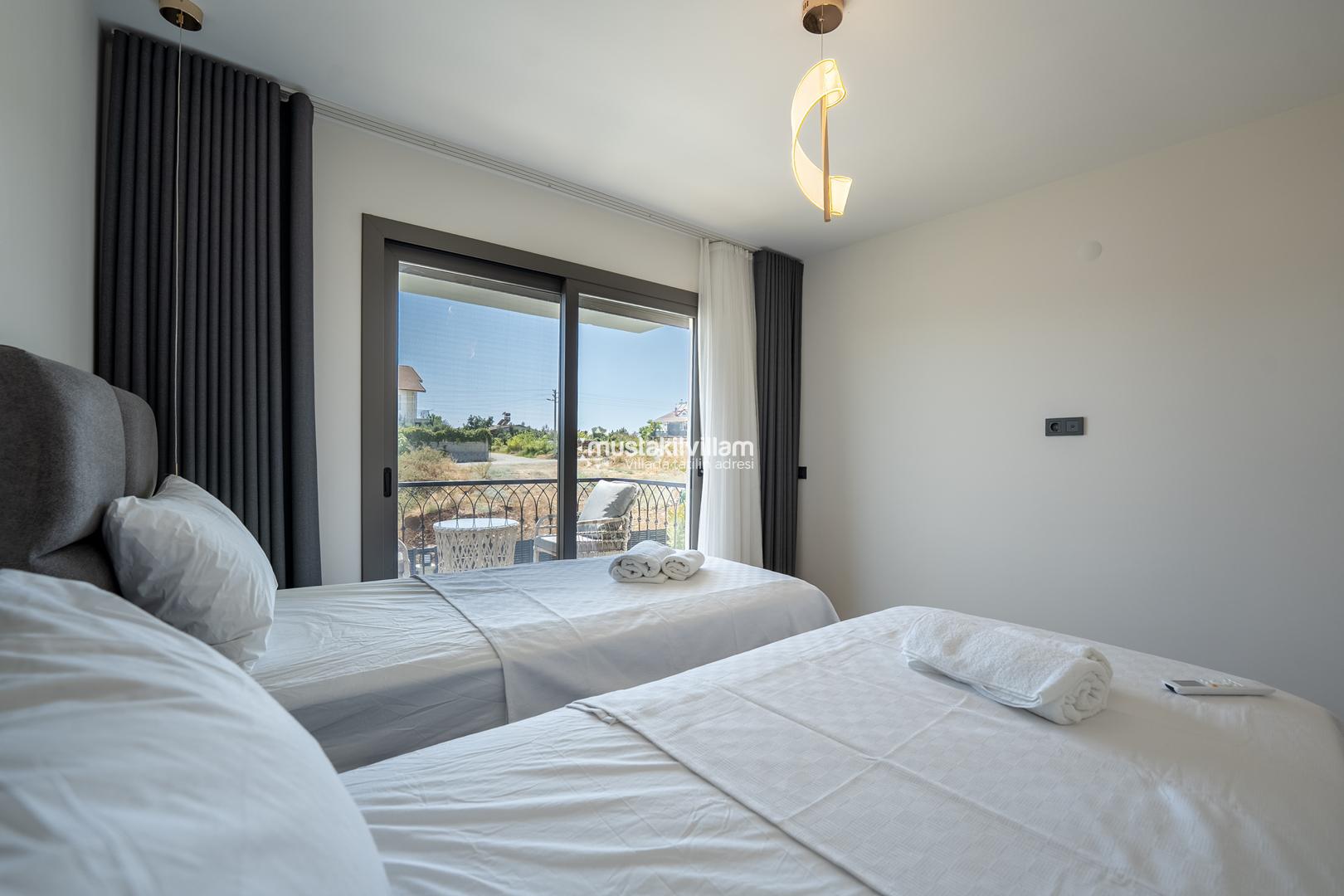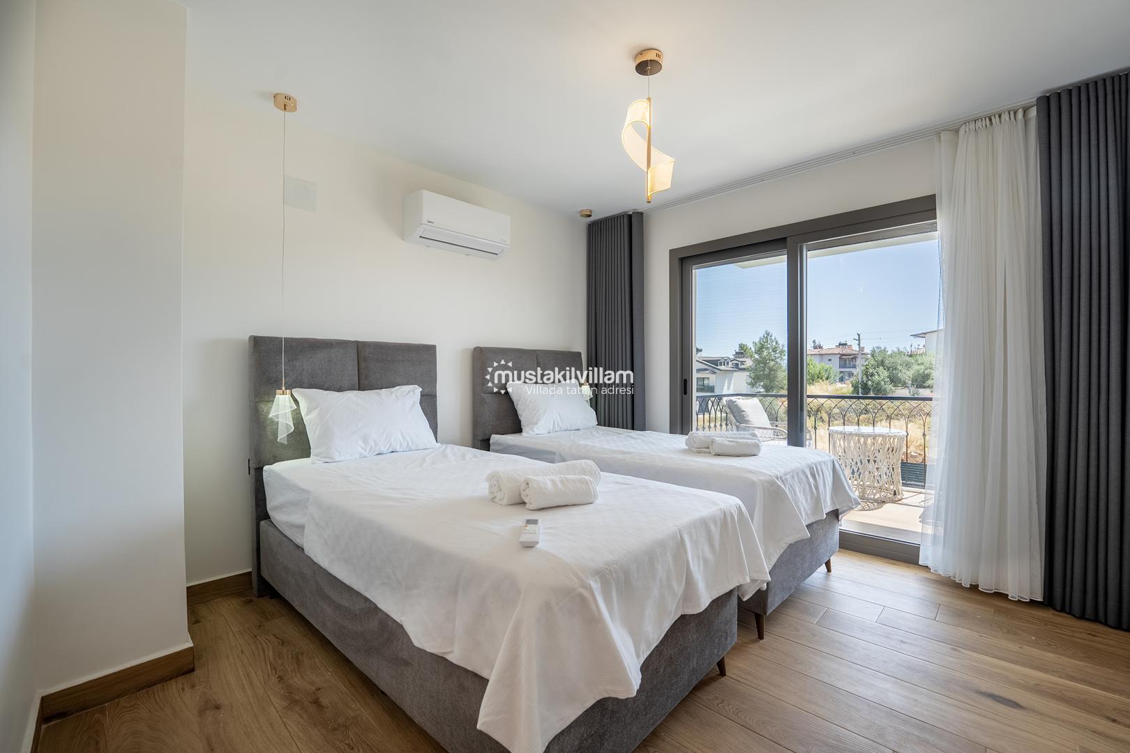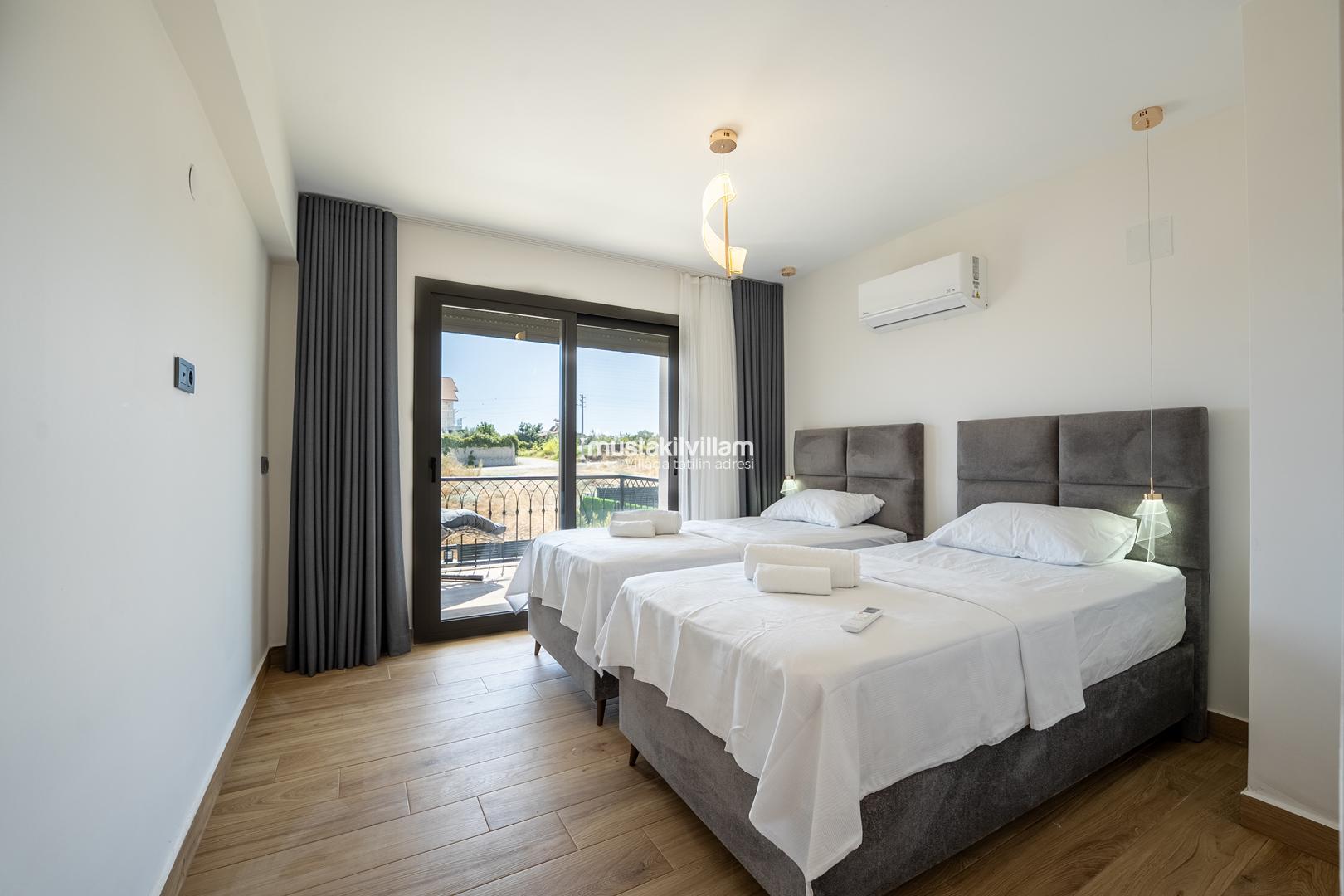 4. Yatak Odası 2 tek kişilik yatak + komodin + elbise dolabı + klima + ebeveyn banyo