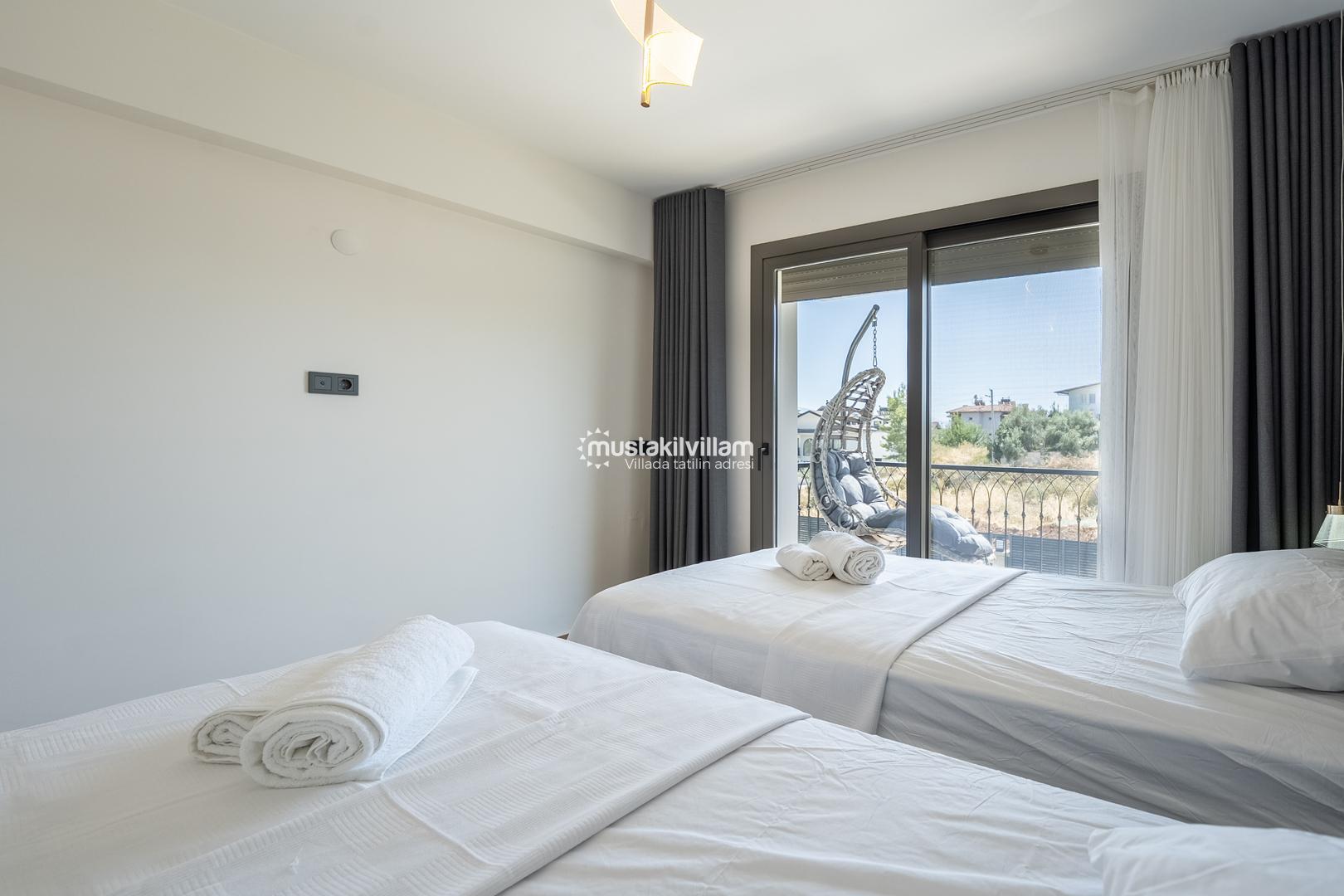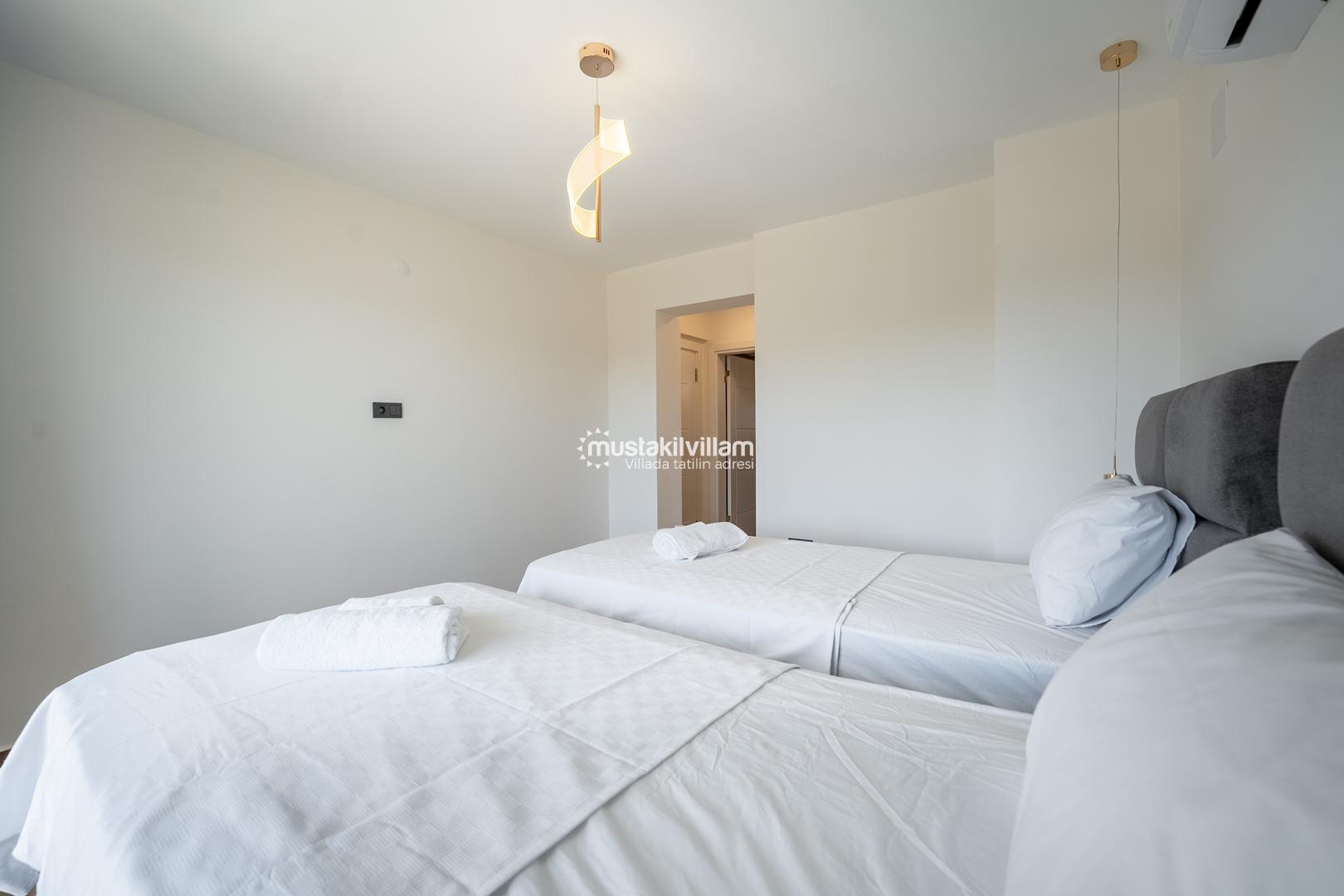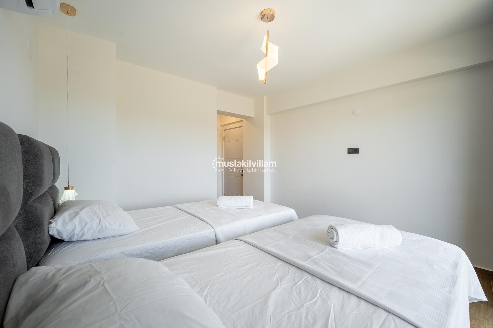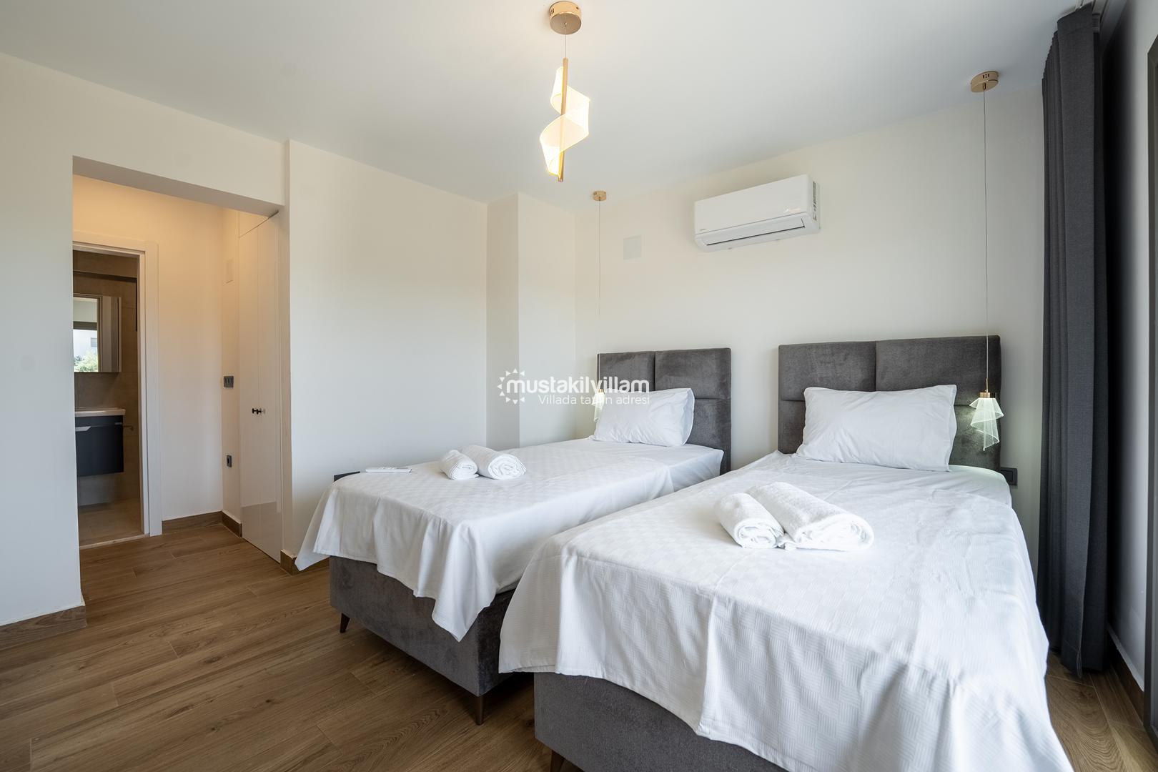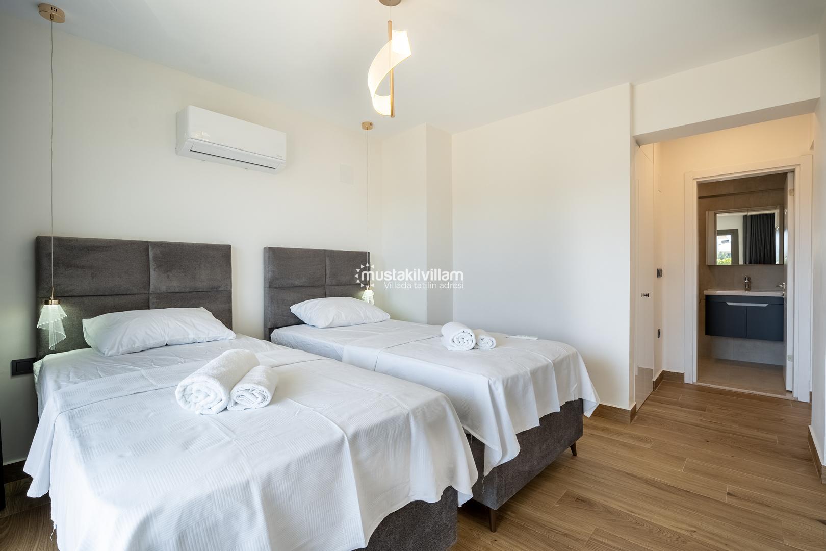 3. Yatak Odası 2 tek kişilik yatak + komodin + elbise dolabı + klima + ebeveyn banyo