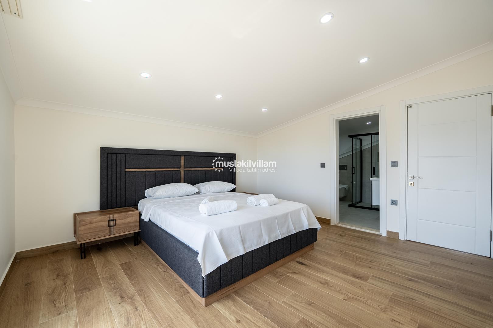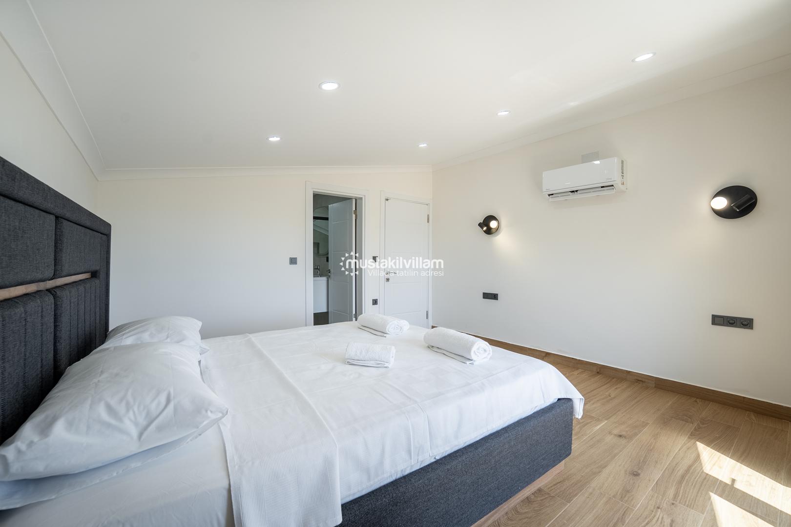 2. Yatak Odası 1 çift kişilik yatak + komodin + elbise dolabı + klima + ebeveyn banyo