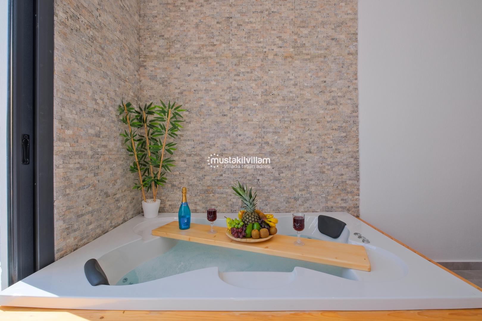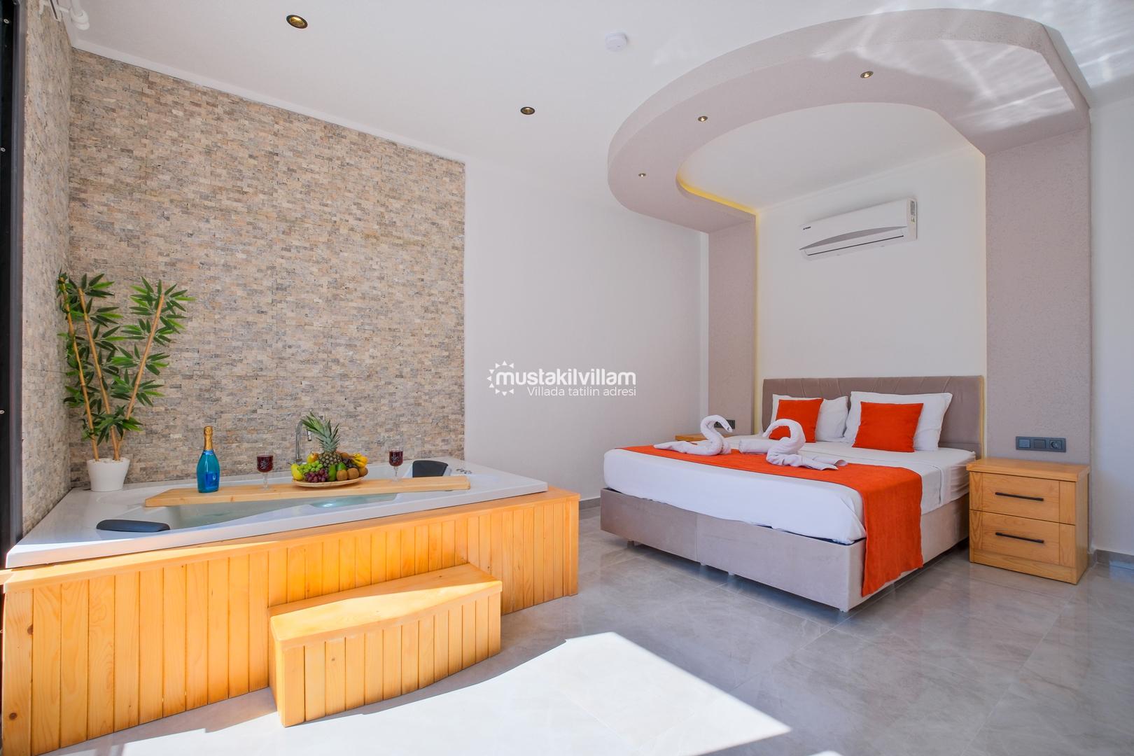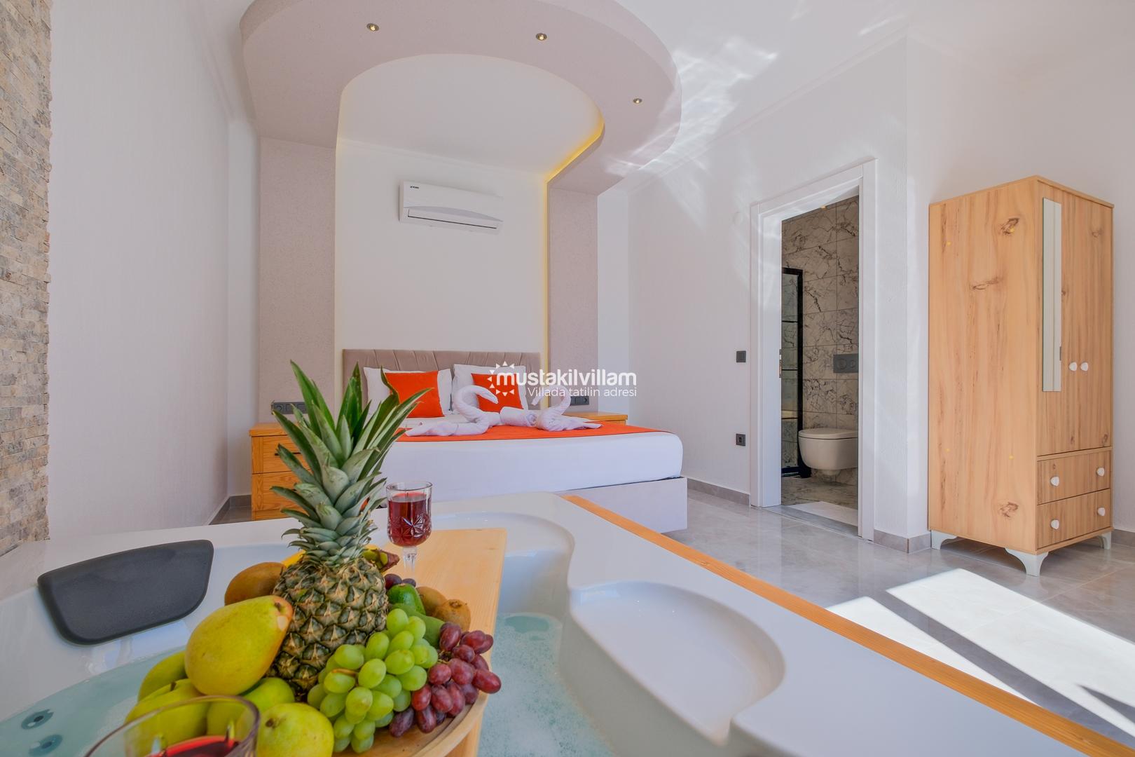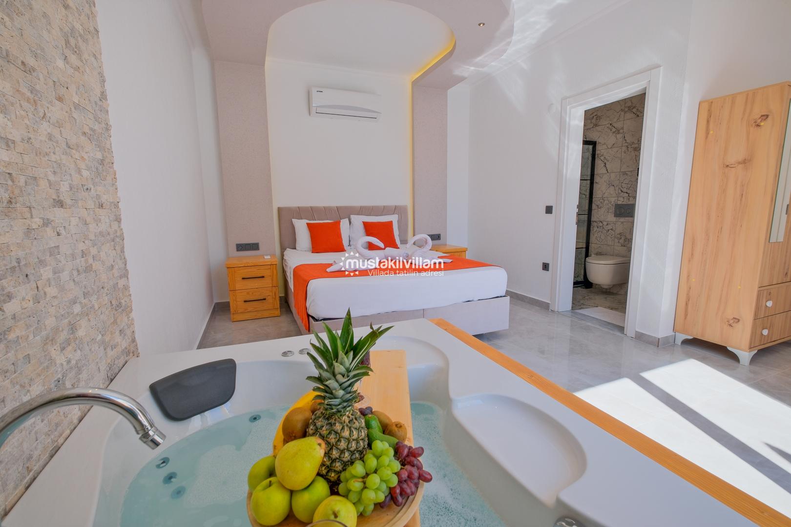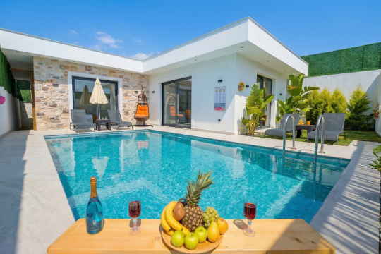 Fethiye Karaçulha mevkiinde konumlu 2 yatak odası bulunan 4 kişi konaklama kapasitesine sahip villamız jakuzili ve özel havuzludur. Balayı misafirleri ve çekirdek ailelerin konaklamasına uygundur. Villamızın havuz terası kısmen korunaklı olup görünme payı mevcuttur. Villamızda bulunan yatak odaları ebeveyn banyoludur. Doğa içerisinde konumlu bu şirin villamızda aileniz ve sevdiklerinizle birlikte keyifli bir tatil geçirebilirsiniz.