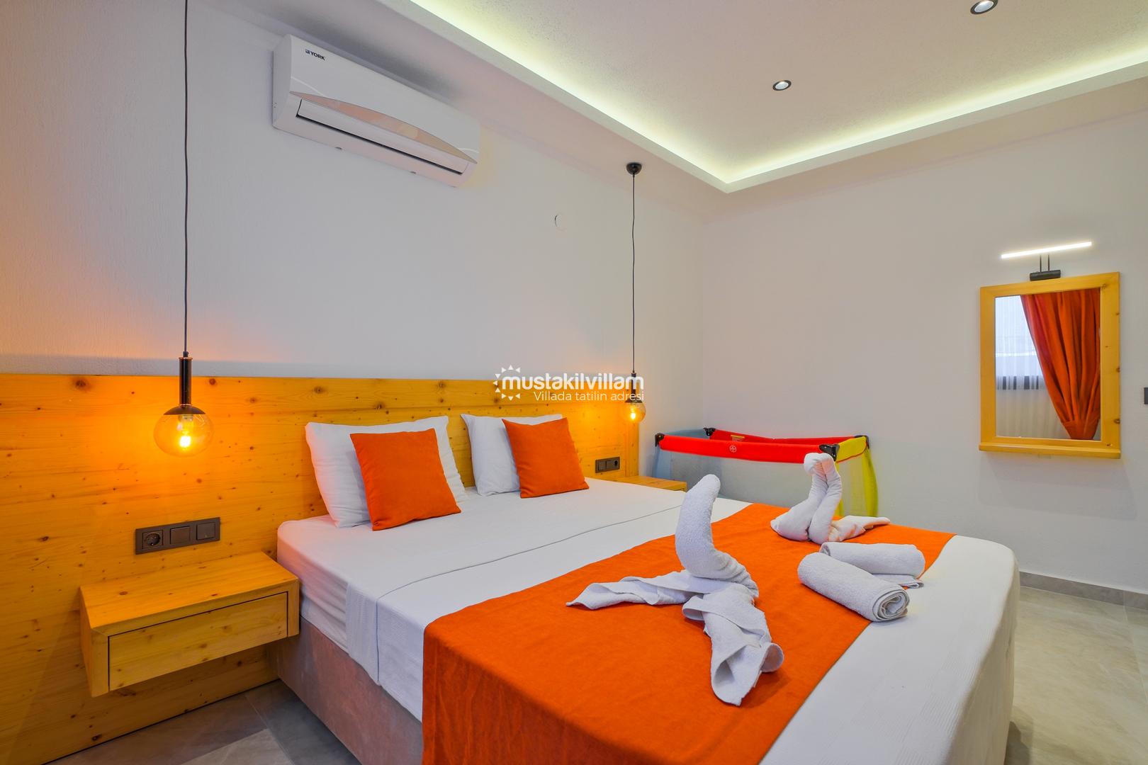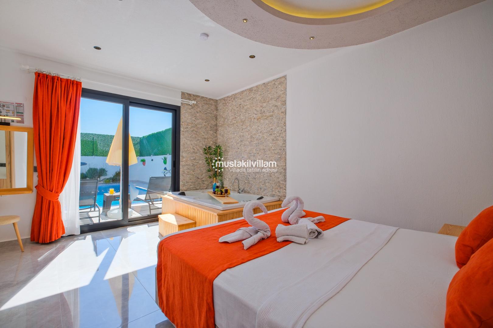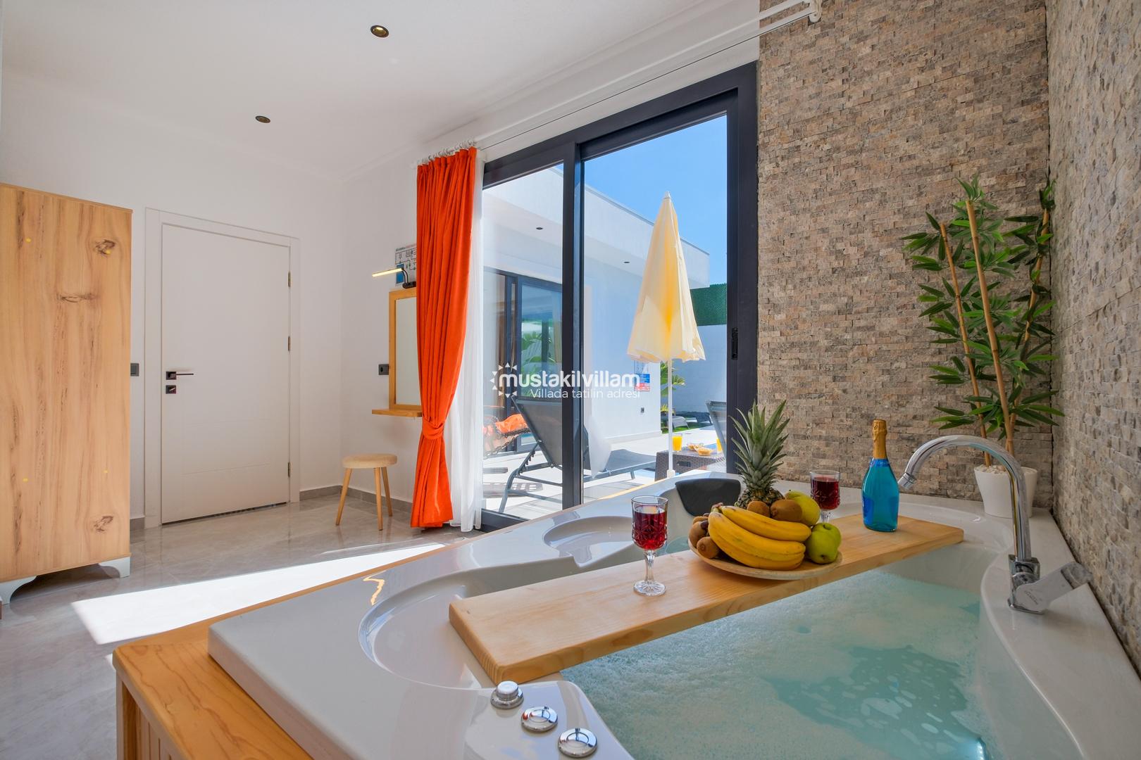 Fethiye Karaçulha mevkiinde konumlu 2 yatak odası bulunan 4 kişi konaklama kapasitesine sahip villamız jakuzili ve özel havuzludur. Balayı misafirleri ve çekirdek ailelerin konaklamasına uygundur. Villamızın havuz terası kısmen korunaklı olup görünme payı mevcuttur. Villamızda bulunan yatak odaları ebeveyn banyoludur. Doğa içerisinde konumlu bu şirin villamızda aileniz ve sevdiklerinizle birlikte keyifli bir tatil geçirebilirsiniz.