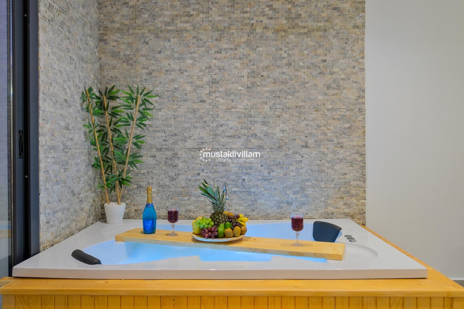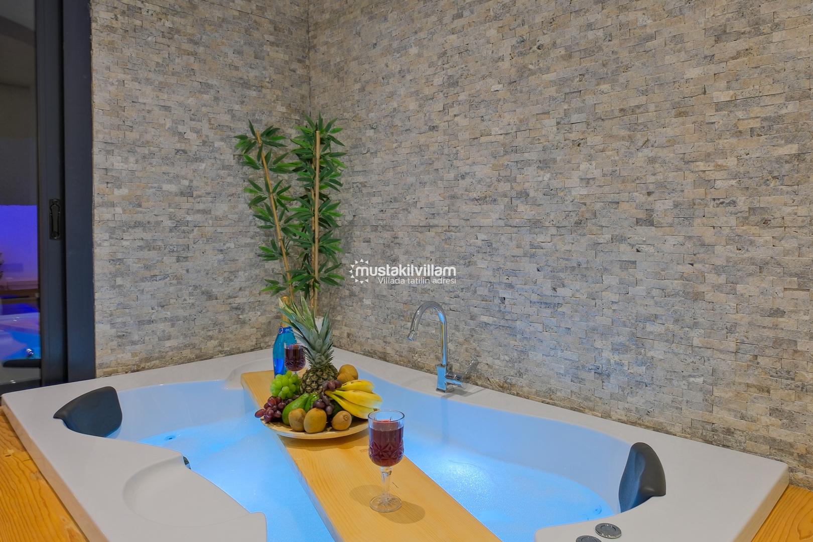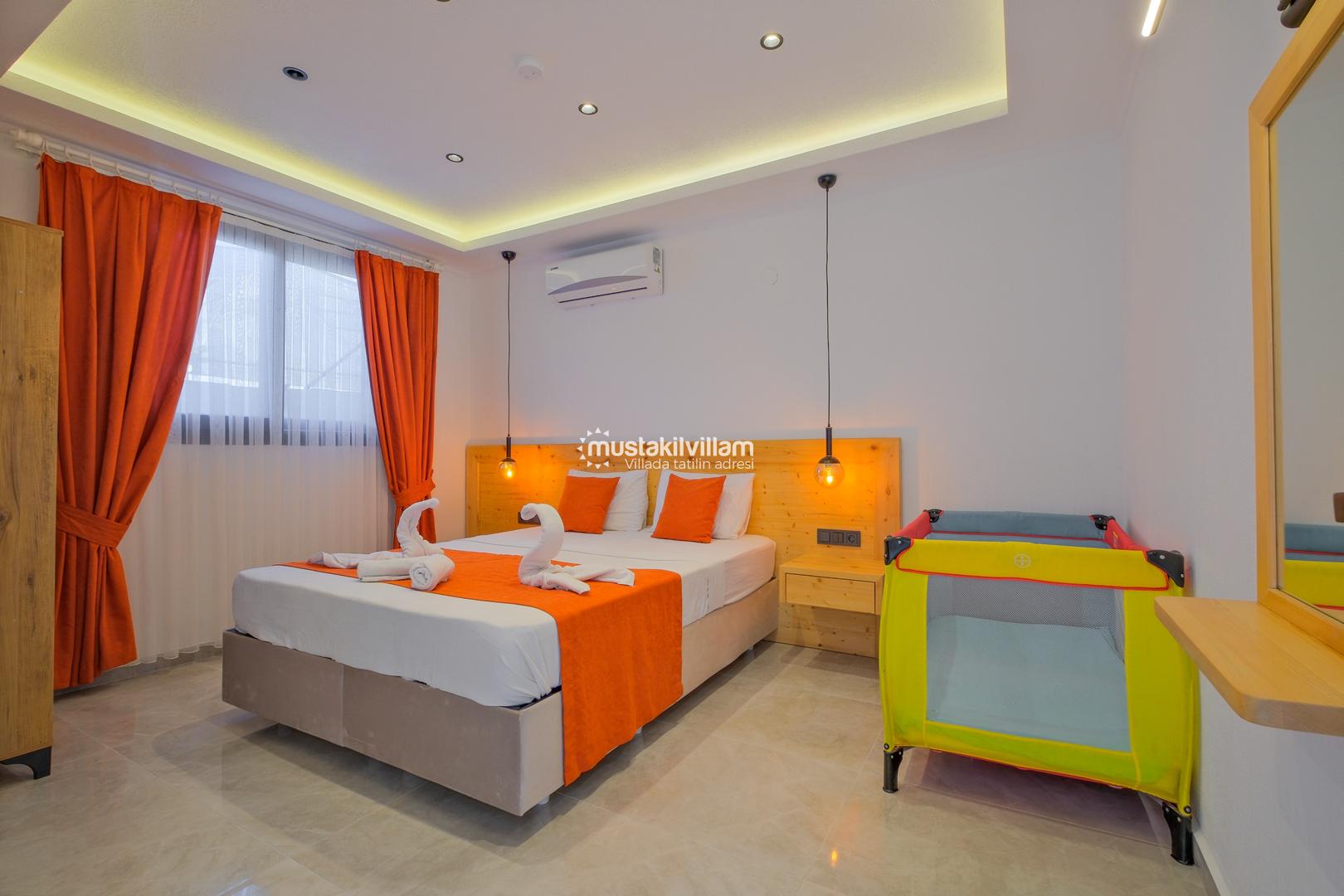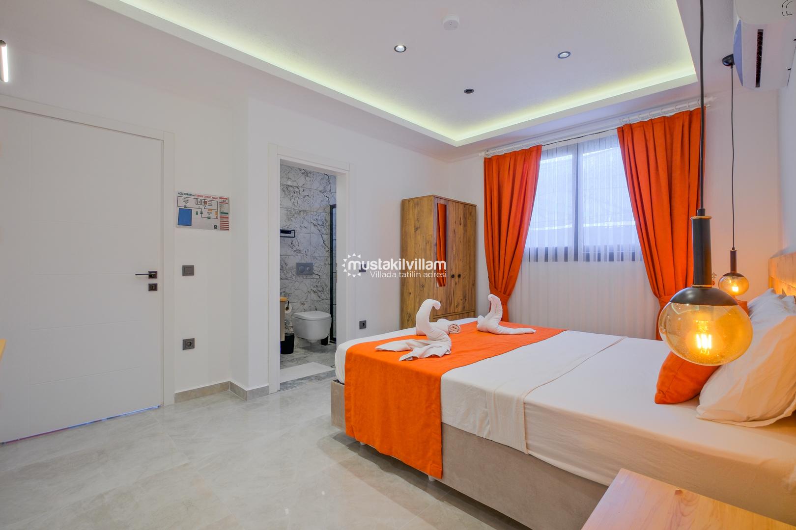 Fethiye Karaçulha mevkiinde konumlu 2 yatak odası bulunan 4 kişi konaklama kapasitesine sahip villamız jakuzili ve özel havuzludur. Balayı misafirleri ve çekirdek ailelerin konaklamasına uygundur. Villamızın havuz terası kısmen korunaklı olup görünme payı mevcuttur. Villamızda bulunan yatak odaları ebeveyn banyoludur. Doğa içerisinde konumlu bu şirin villamızda aileniz ve sevdiklerinizle birlikte keyifli bir tatil geçirebilirsiniz.