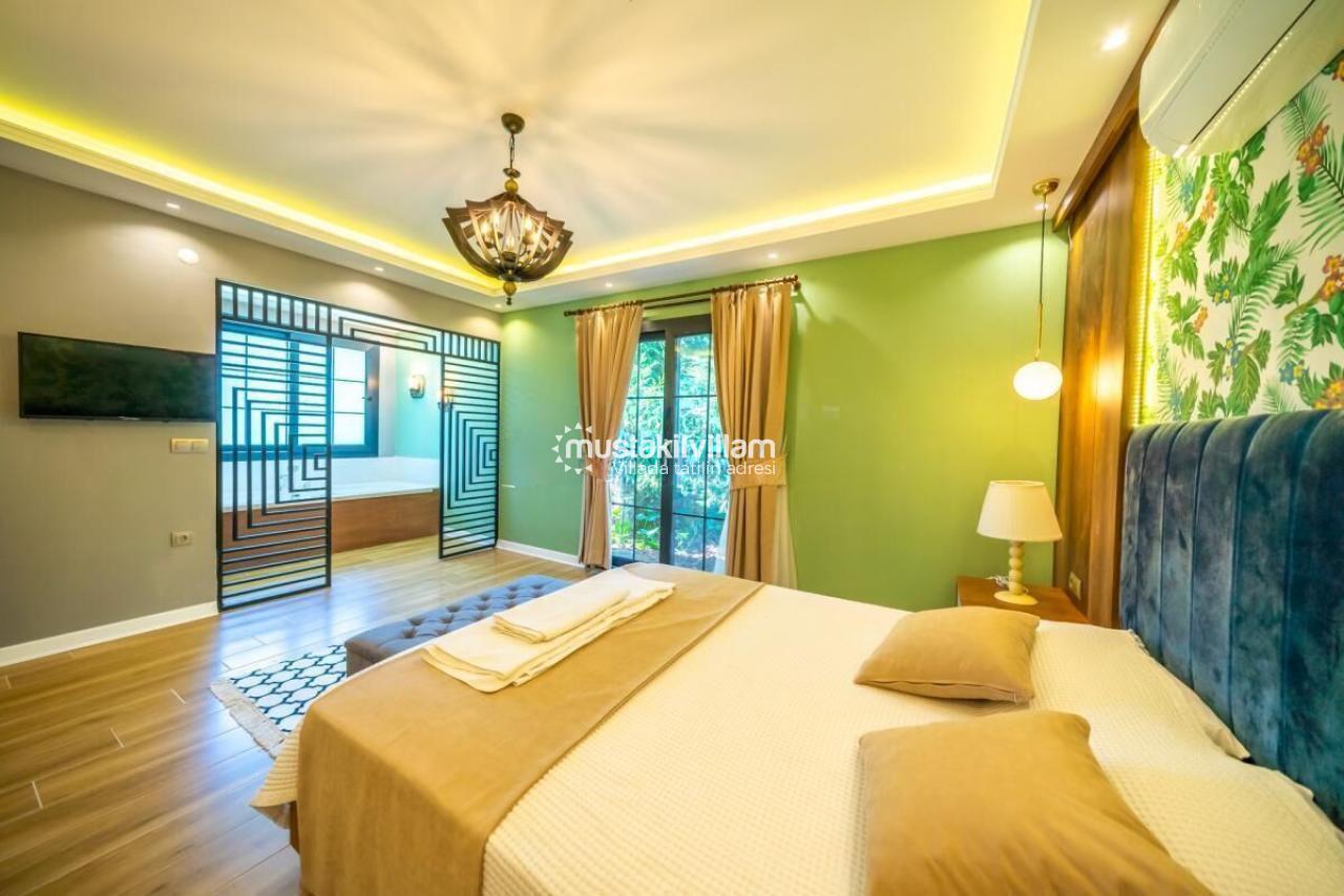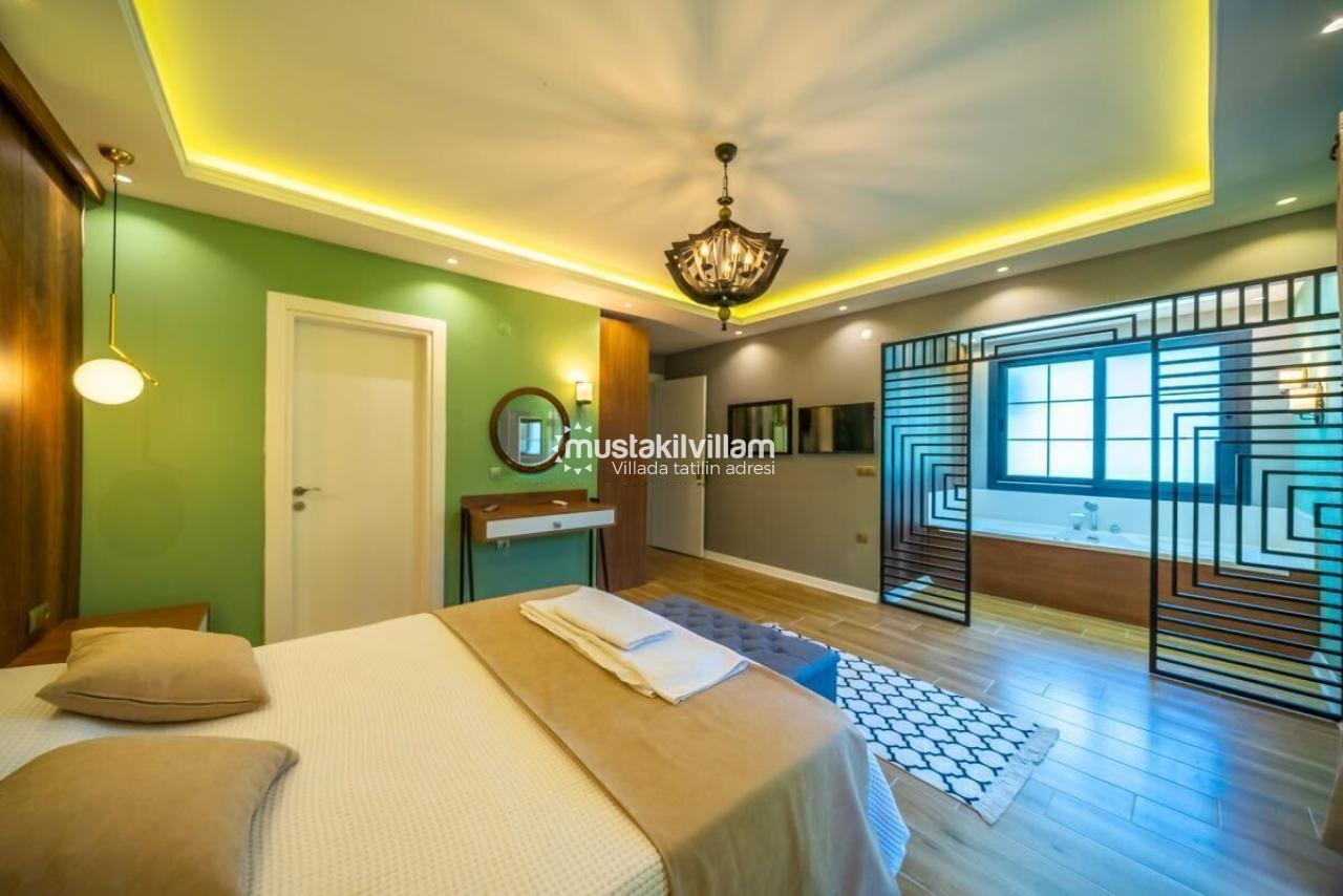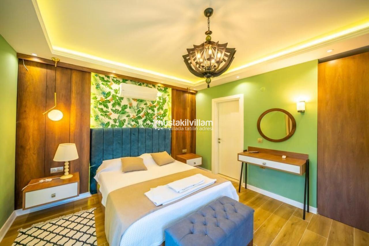 1.Yatak odası 1 çift kişilik yatak + elbise dolabı + komidin + makyaj masası + ebeveyn banyo + jakuzi + klima
