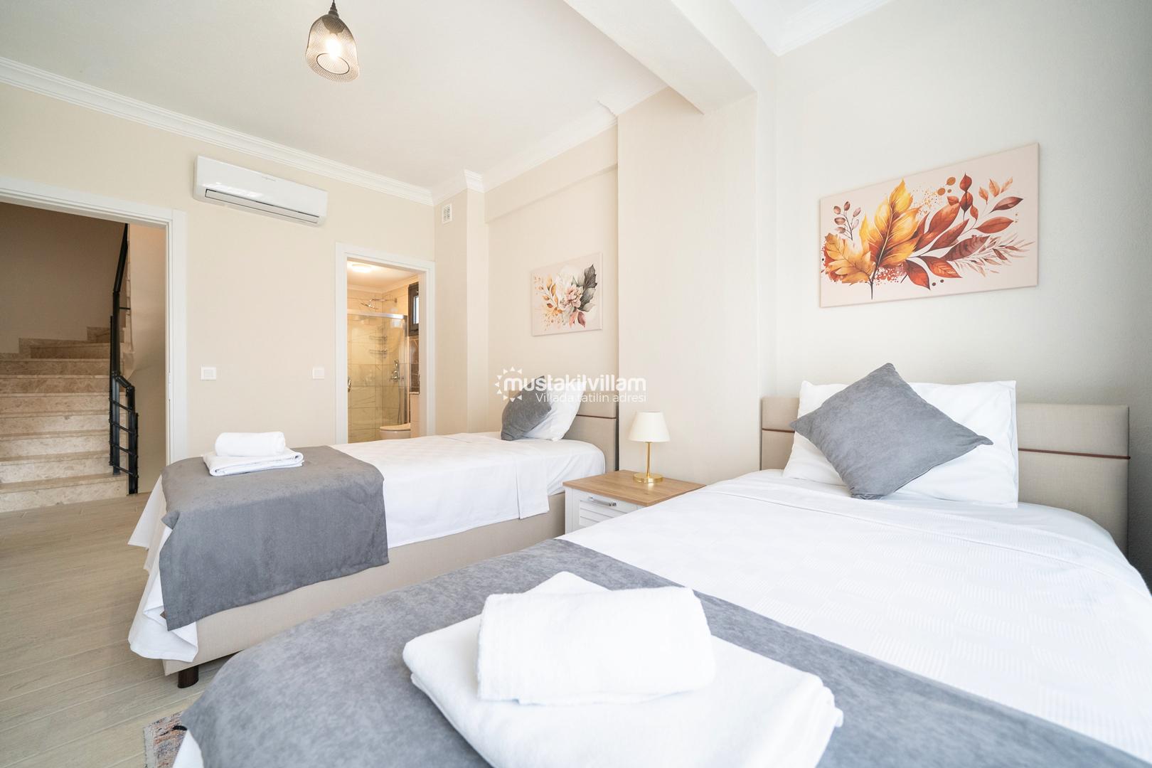 Villa Kekik’te her biri ebeveyn banyolu üç yatak odası bulunmaktadır. Odalar konfor ön planda tutularak tasarlanmıştır.
