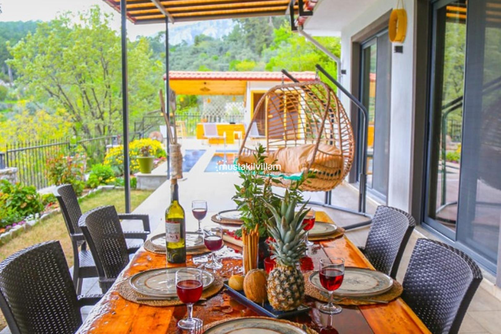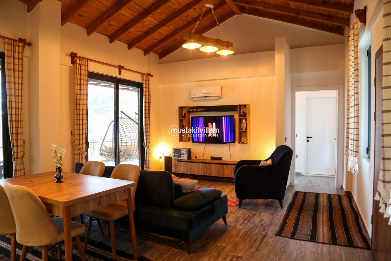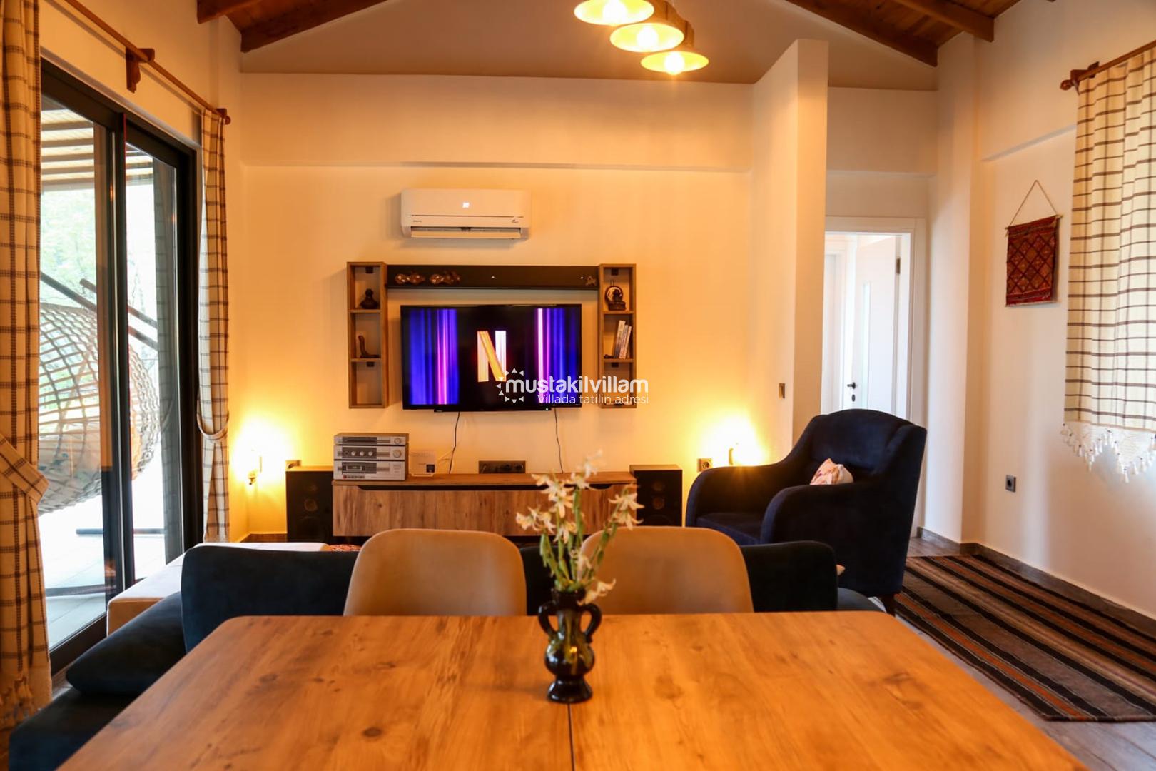 Geniş ve yeşil bahçesiyle doğanın huzurlu atmosferini yaşatan villa, çevresindeki doğal manzara sayesinde misafirlerine şehir hayatının stresinden uzak bir tatil ortamı sağlar. İç mekân tasarımında modern ve fonksiyonel detaylar ön planda tutulmuştur.