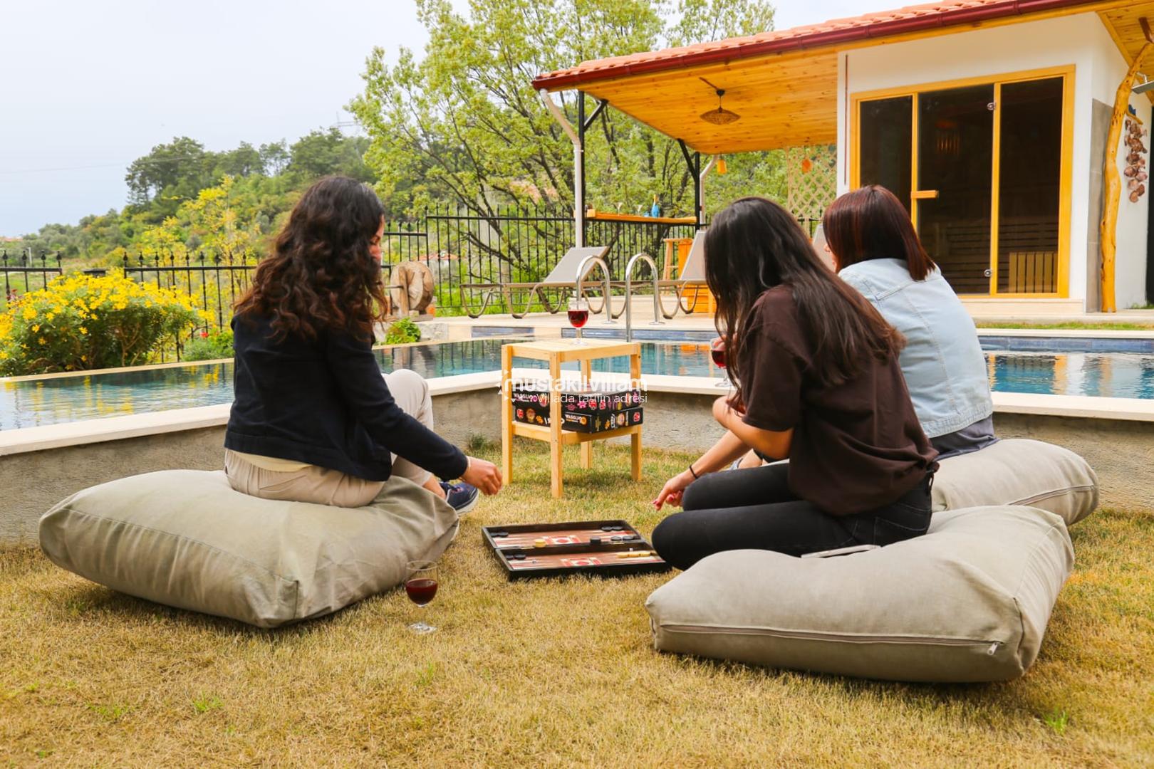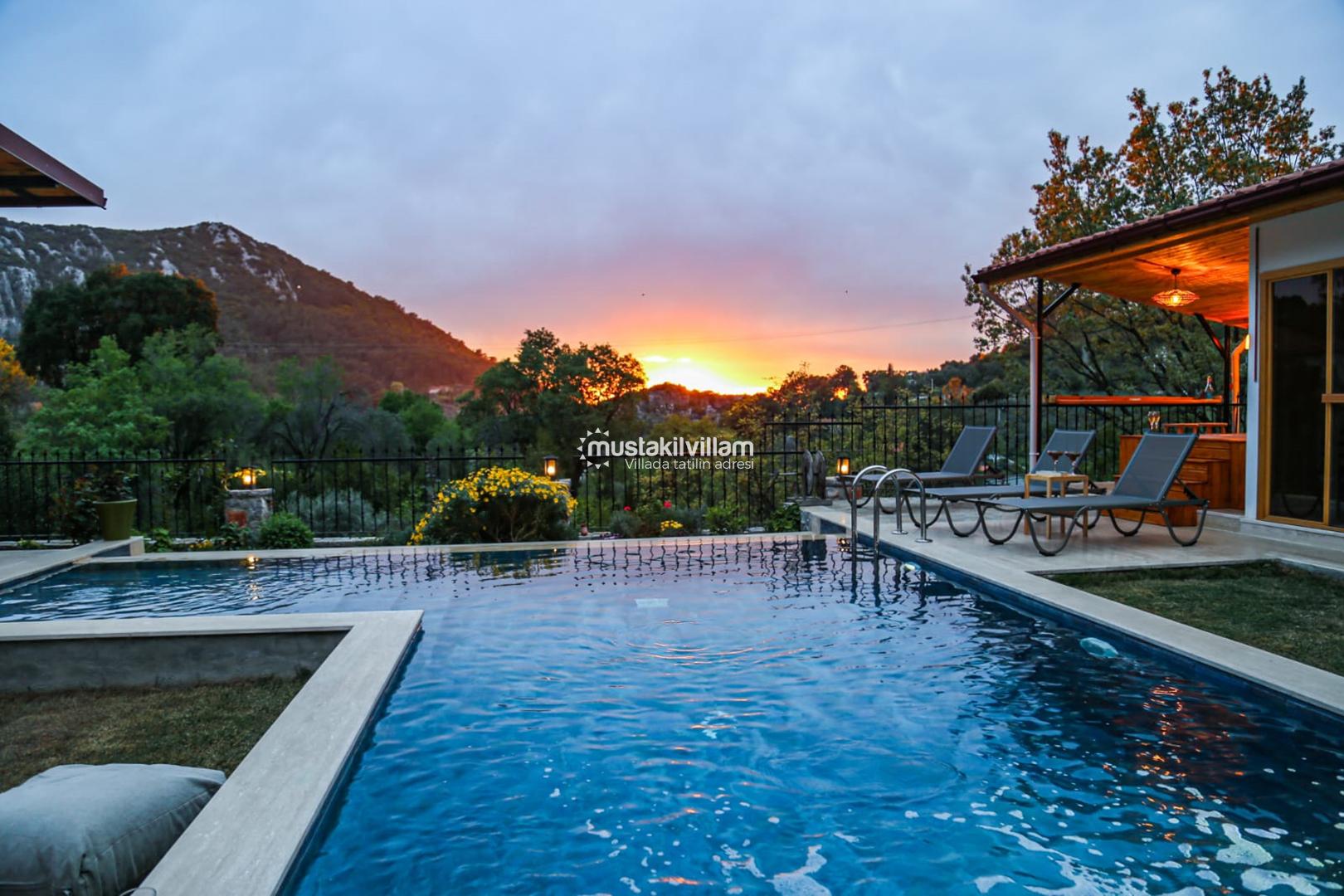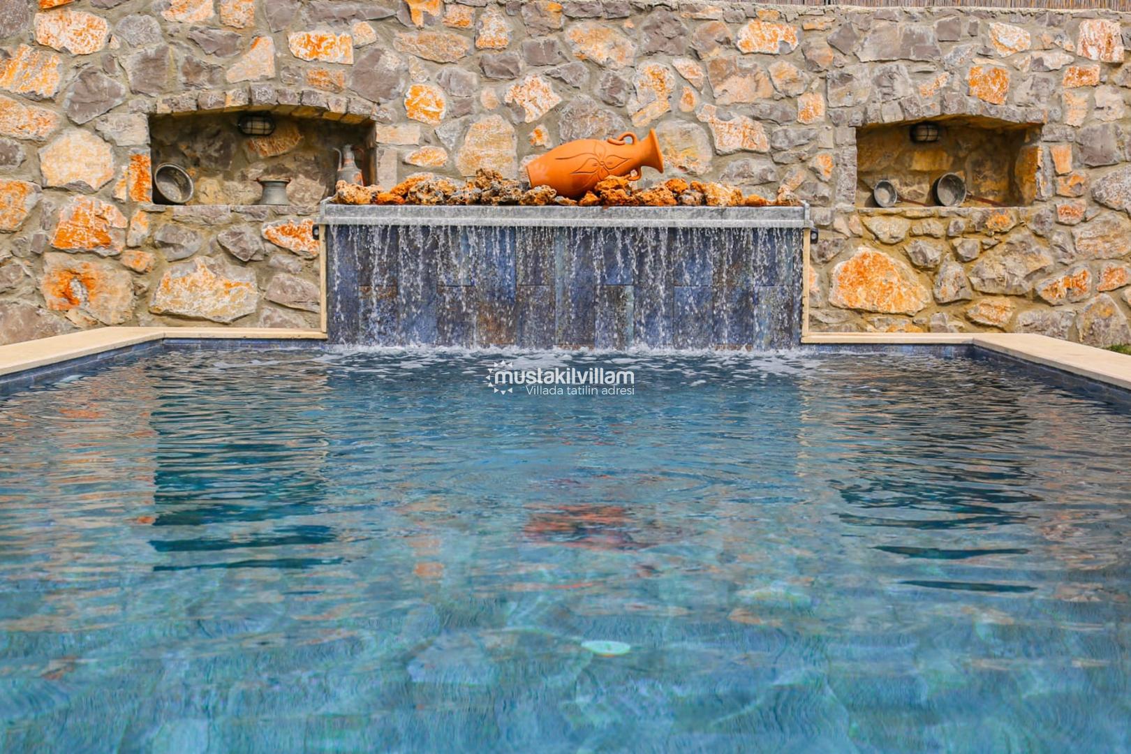 Havuz ve bahçe alanı mahremiyet odaklı tasarlanmış olup dışarıdan görünmeyecek şekilde korunaklıdır. Bu sayede misafirler rahat ve özel bir tatil deneyimi yaşayabilir.