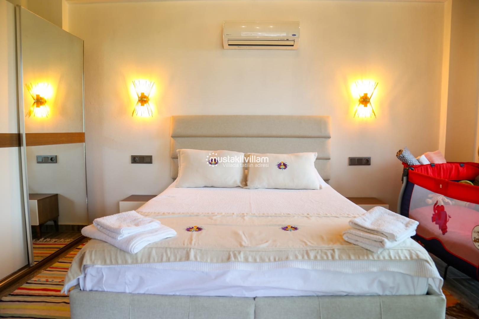 Toplam 2 yatak odası ve 2 banyosu bulunan Villa Eylül FG, 4 kişiye kadar konaklama kapasitesine sahiptir. Villada ayrıca misafirlerin tatil boyunca rahatlayıp dinlenebileceği sauna bulunmakta olup, bahçe ve havuz alanında yer alan açık hava jakuzisi tatilinize ekstra konfor katmaktadır.