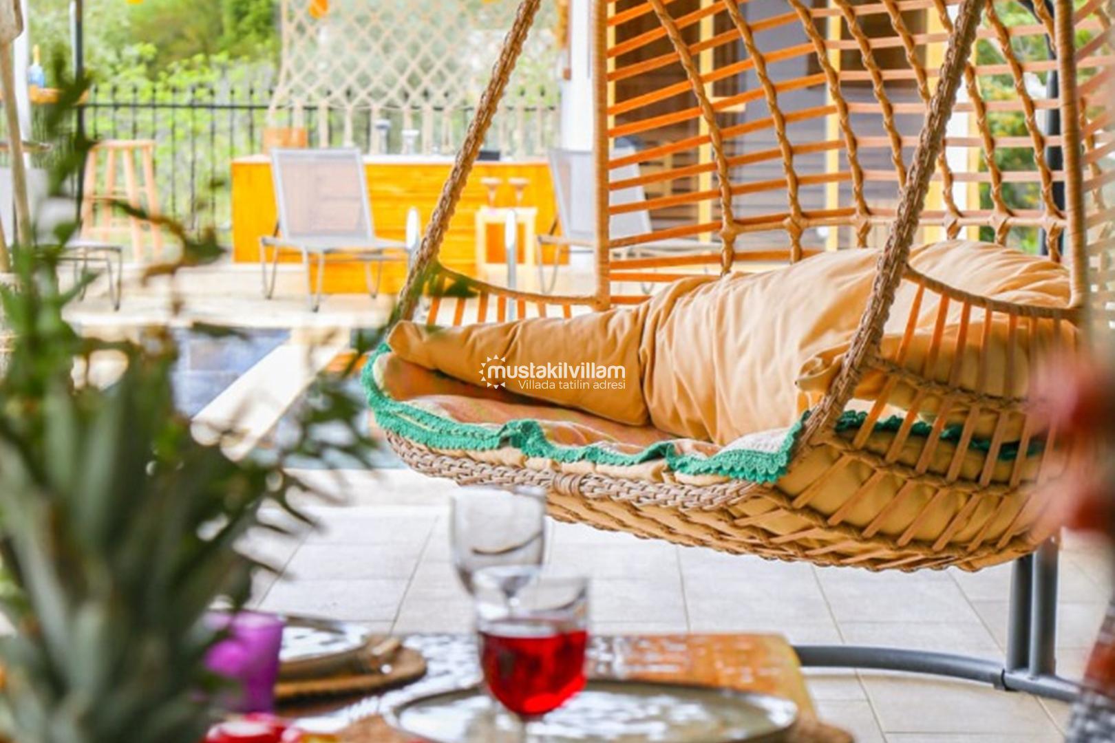 Villa Eylül FG’nin dış mekânı misafirlerin gün boyu keyifli vakit geçirebileceği şekilde tasarlanmıştır.