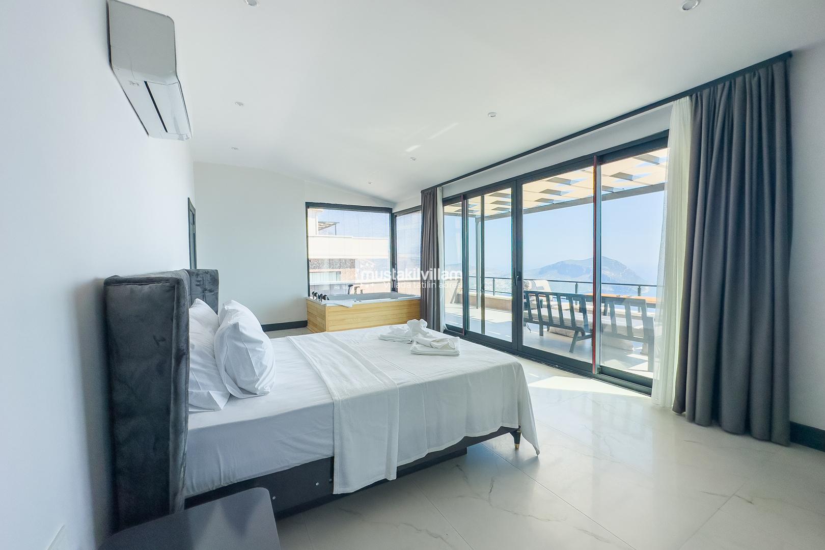 Bazı yatak odaları panoramik deniz manzaralı balkonlara açılır
