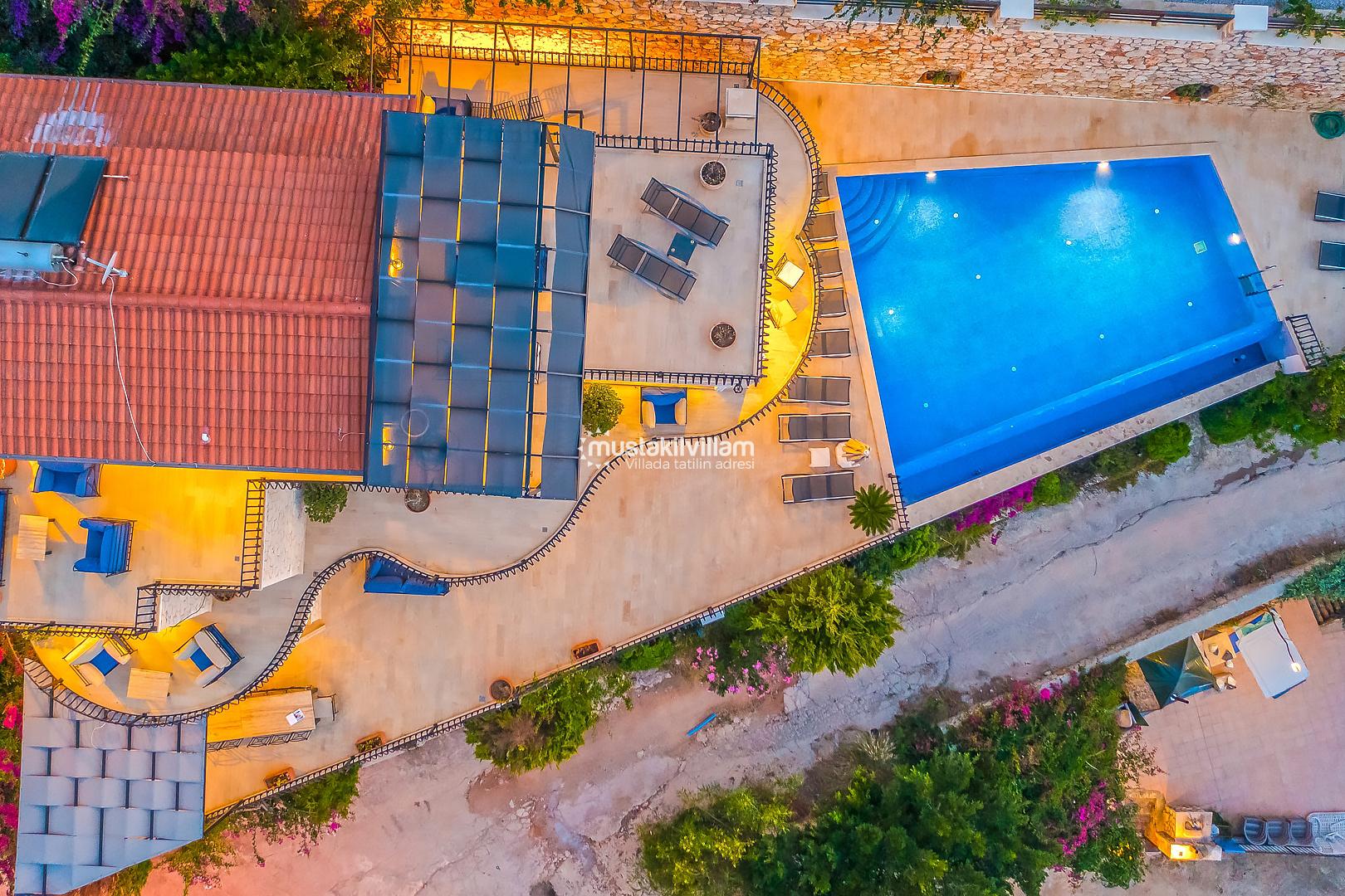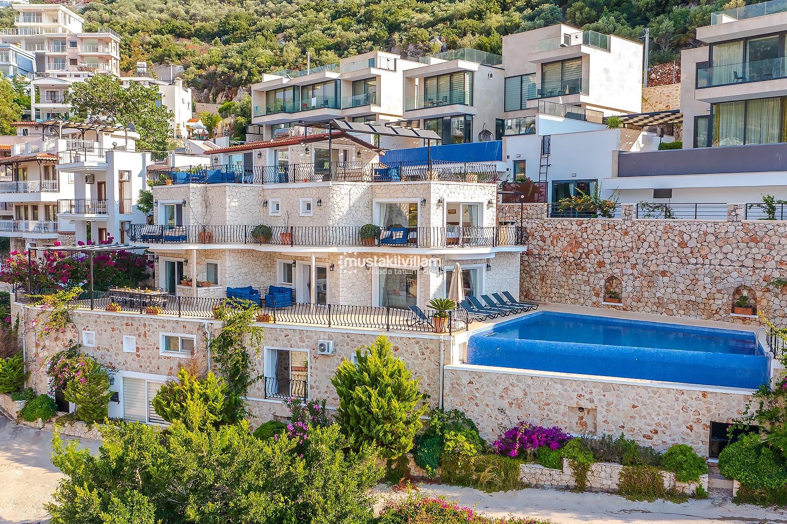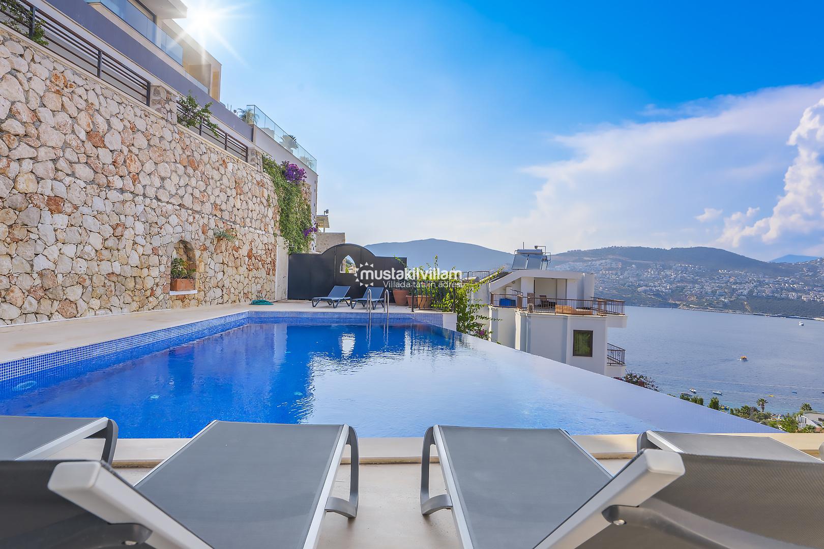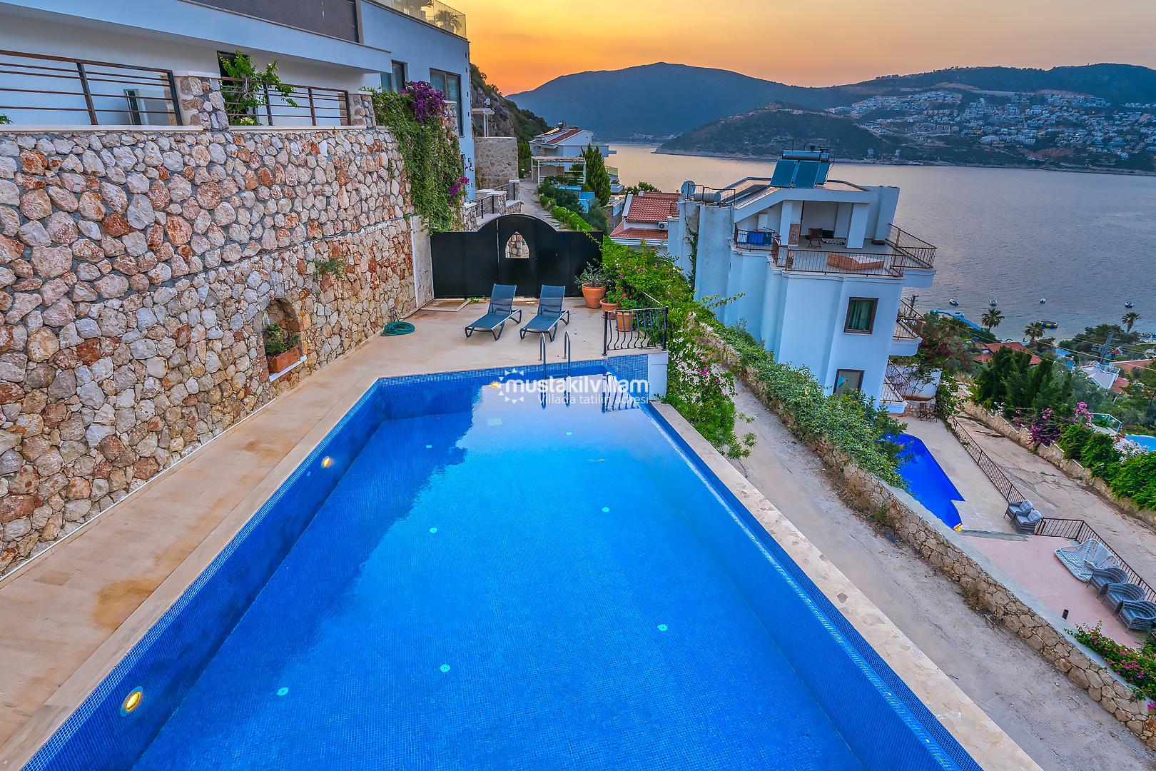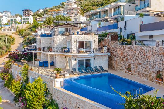 Villa Mavna Özlem, Kalkan’ın seçkin Kışla Bölgesi'nde yer alan, lüks ve konforu bir arada sunan özel bir tatil villasıdır. Modern mimarisi, şık dekorasyonu ve Akdeniz'e hakim konumuyla dikkat çeken villa, Kalkan Körfezi'nin etkileyici gün batımı manzarasına ev sahipliği yapar. Zeytin ağaçlarıyla çevrili özel bahçesi, geniş sonsuzluk havuzu, oyun odası ve konforlu yaşam alanlarıyla Villa Mavna, kalabalık aileler ve arkadaş grupları için ideal bir seçenektir. Toplam 5 yatak odası ve 5 banyosu bulunan villada, 10 kişiye kadar konaklama imkânı sunulmaktadır. Tüm odalarda klima, yüksek hızlı internet, tam donanımlı mutfak, özel otopark ve her detayda kalite ön planda tutulmuştur. Villa Mavna, doğayla iç içe ama modern yaşamın tüm ayrıcalıklarını sunan seçkin bir tatil deneyimi vadeder.